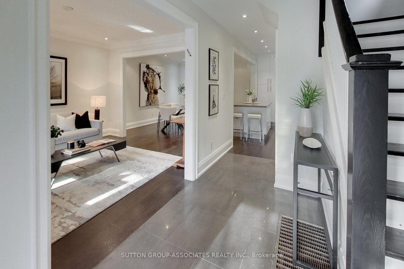• Living Room: Tile Floor, Pot Lights, Open Concept