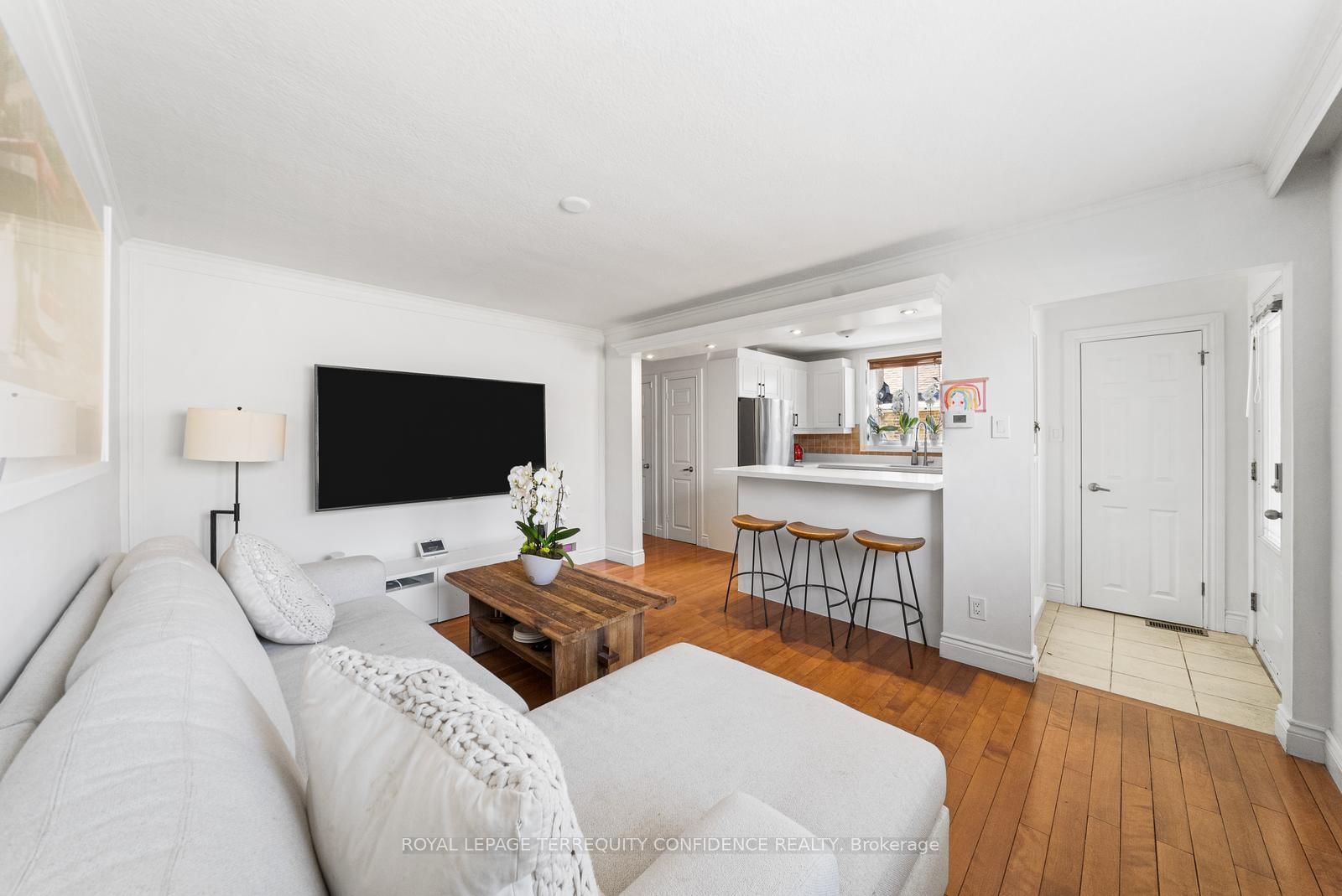 • Living Room: hardwood floor, O/Looks Frontyard, Large Window