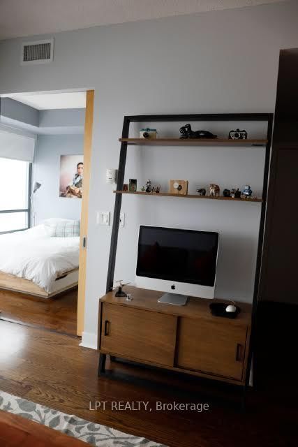 Furnished Rental @ The Hudson 438 King St West. The Apartment on 1706-438 King Street W has 1 bedrooms, 1 bathrooms, and is located in the community of Waterfront Communities C1 . Bright. Stylish. Ready to go. This furnished one-bedroom at The Hudson puts you right inthe heart of King West with one of the best west-facing views in the city. Great Gulf-built, this is a proper condo well-managed, quiet, and loaded with quality. Inside, you've got a smart layout with full-sized stainless steel appliances, granite counters, and plenty of storage. The living space is warm and personal, with custom art, a cozy setup, and natural light pouring in from wall-to-wall windows. The bedroom has a queen bed and a desk. Bonus: the balcony is wide, usable, and perfect for sunsets over the skyline.Steps to the TTC, groceries downstairs, and some of the city's best food, drink, and culture all around you. This one is turnkey and well cared for.