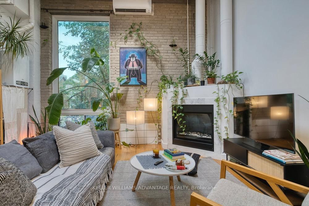 Magnificent, big and bright, two-level loft available in brick and beam factory-loft conversion. The Loft on 206-264 Seaton Street has 1 bedrooms, 1 bathrooms, and is located in the community of Moss Park . Conveniently located in the heart of Toronto on a tree-lined street of Victorian brick homes in Cabbagetown South. Open-concept sky-lit living and dining areas with gas fireplace, hardwood flooring, large window, and soaring 15 foot high ceilings. Spacious kitchen with stainless steel appliances, top of the line WOLF gas stove, abundant counter space, and centre island. Bedroom with hardwood flooring on second floor overlooks the gorgeous main-floor living space. Freshly renovated custom four-piece bathroom. Relaxation awaits on your totally private roof-top terrace. This wonderfully-kept building - formerly the Toronto EveningTelegram - has been converted into just 10 striking residential lofts in this pedestrian-friendly downtown-east community. Loft is zoned as work/live. Mere steps from multiple transit routes, and an easy stroll to the parks, shops and services of Parliament Street. The best of the city awaits! Brand new on-demand boiler installed in 2026. Parking spot available at $100/month.