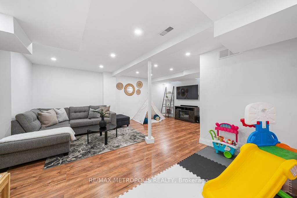 Welcome to this stunning family home, offering over 2,500 square feet of thoughtfully designed living space in the heart of South Ajax. The 2-Storey on 886 Audley Road S has 3 bedrooms, 4 bathrooms, and is located on a 107 x 26 ft lot in the community of South East . Perfectly positioned within walking distance of the lake, beach, and waterfront trails, this end-unit townhouse delivers the coastal lifestyle your family has been dreaming of.Inside, you're greeted by a bright, open-concept layout tailored for both effortless daily living and elegant entertaining. The kitchen features quartz countertops, a matching backsplash, ample cabinetry, and branded stainless steel appliances. Sophisticated upgrades, including stylish light fixtures and gleaming hardwood flooring, run throughout the main level.The upper floor features three generous bedrooms and two full bathrooms, ensuring comfort and convenience for the whole family. The versatility continues in the fully finished basement, which boasts a large recreation area with pot lights, an additional full bathroom, and plenty of storage-making it the ideal spot for movie nights, a playroom, or a home office.The outdoor space is equally impressive, featuring a large deck with sleek glass railings and a beautiful interlocked patio. A standout feature of this home is the rear-entry double-car garage. By moving the garage to the back, the main floor opens up significantly, allowing natural light to pour through the entire home.Meticulously maintained and move-in ready, this home offers a rare combination of space, style, and location.