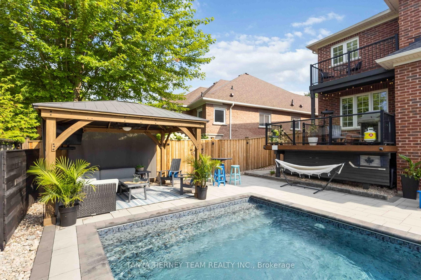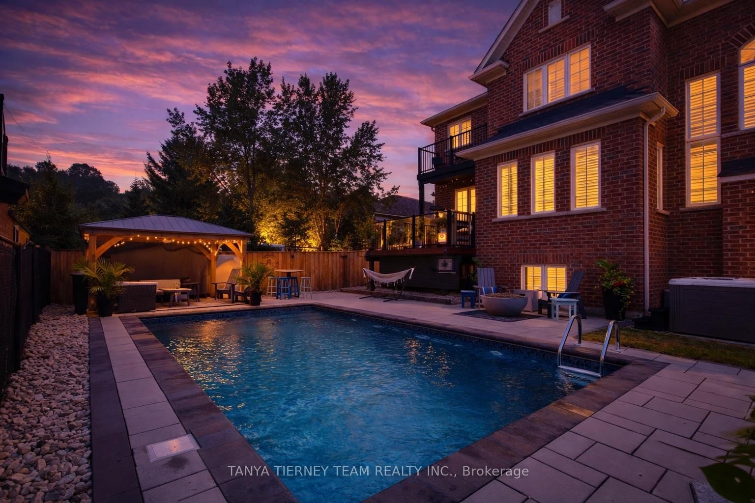 Tranquil ravine setting with inground pool, hot tub & a private backyard oasis! Beautifully upgraded Fernbrook built, 3+1 bedroom, 4 bath home offering exceptional curb appeal with professionally landscaped front & back gardens. The 2-Storey on 12 Branthaven Court has 3 bedrooms, 4 bathrooms, and is located on a 102.13 x 47.26 ft loton < .50 acres in the community of Brooklin . The backyard is designed for entertaining featuring a timber gazebo, large deck, interlocking patio, inground saltwater pool, hot tub & scenic treed ravine views providing ultimate privacy. The inviting foyer welcomes you to a sun filled open concept main floor with extensive crown moulding, wainscoting & california shutters throughout. Convenient main floor office ideal for working from home or study space. Main floor laundry room with direct garage access. Gourmet kitchen showcases Silestone quartz countertops, Raywal cabinetry, ceramic backsplash, stainless steel appliances, pantry with custom pull out shelves & centre island with breakfast bar. Spacious breakfast area offers a garden door walkout to the entertainer's deck with panoramic ravine views. The impressive great room features soaring cathedral ceilings, gas fireplace with custom mantle & elegant detailing - perfect for family gatherings.Upstairs offers 3 generous bedrooms. The primary retreat features a huge walk-in closet & private balcony overlooking the ravine - perfect for morning coffee. Spa inspired 5 piece ensuite includes soaker tub, large glass shower & granite vanity. Additional bedrooms are spacious & bright with well appointed ensuite baths. Partially finished basement includes a 4th bedroom with barn door entry & a bright rec room with oversized windows offering additional living space for growing families. Situated in a highly desirable community just steps to parks, schools, trails & downtown Brooklin shops. A rare opportunity combining luxury finishes, functional family layout & resort style outdoor living in a premium ravine location!