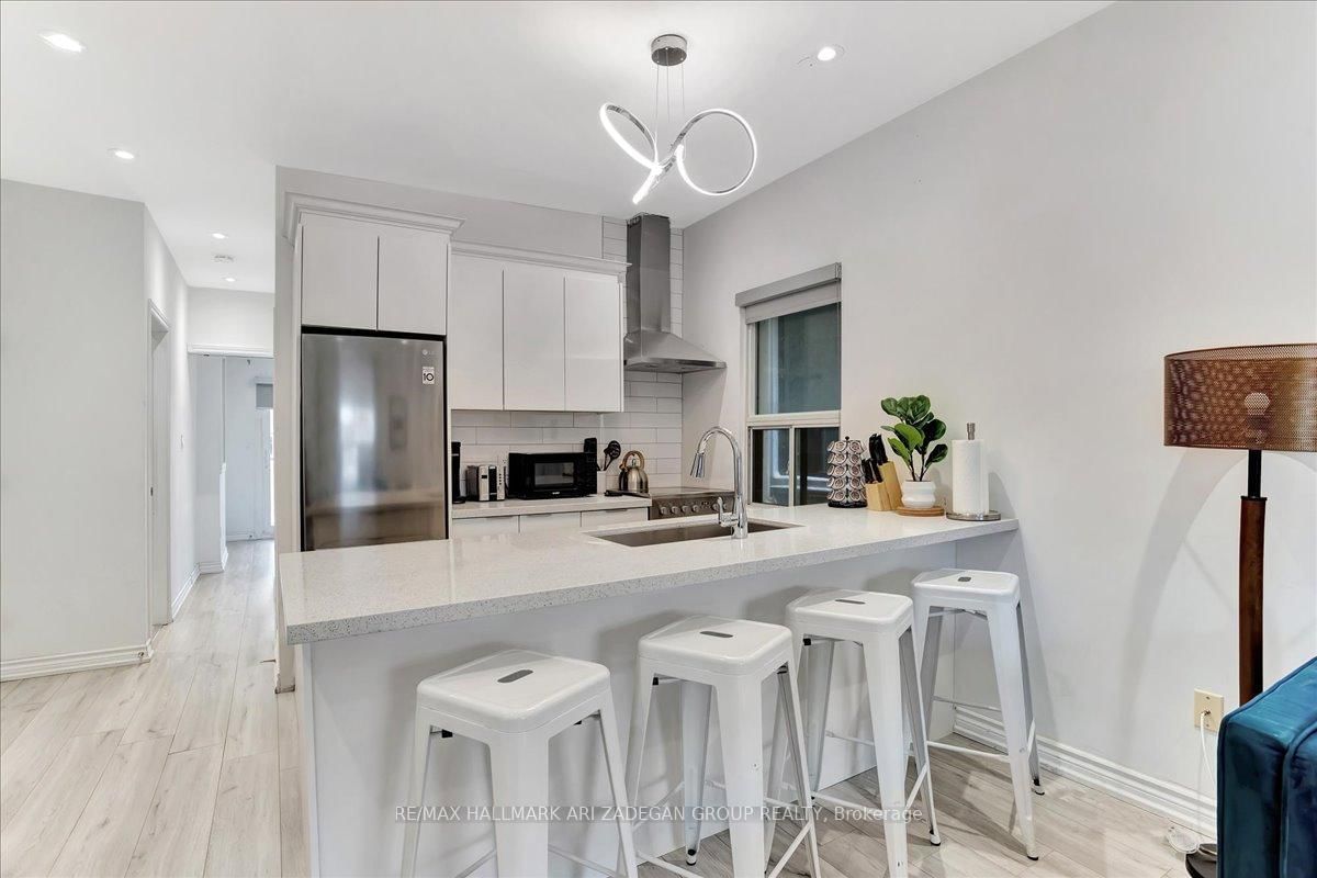 Welcome to 138 Booth! Experience modern living in this professionally renovated and fully furnished 2-bedroom, 2-bathroom home. The 2 1/2 Storey on Main Fl-138 Booth Avenue has 2 bedrooms, 2 bathrooms, and is located on a 90 x 17.75 ft lot in the community of South Riverdale . Featuring hardwood flooring throughout, a stylish kitchen with stainless steel appliances and quartz countertops, and ensuite laundry for added convenience, this home offers both comfort and functionality. Enjoy the outdoors with a charming front patio and a private porch off the master bedroom, creating the perfect spaces to relax and unwind. Designed with care and attention to detail, this home is move-in ready and ideal for professionals or those seeking a temporary, upscale living experience. This property is conveniently located and fully equipped to meet your needs. Dont miss the opportunity to live in this beautifully finished home!