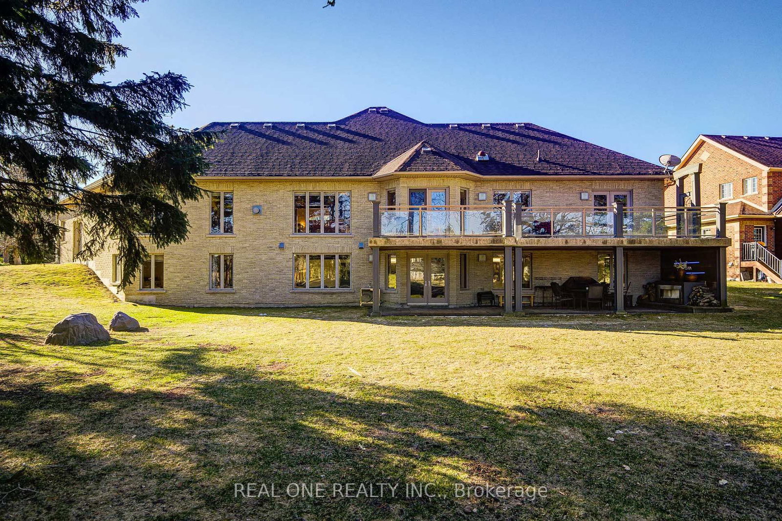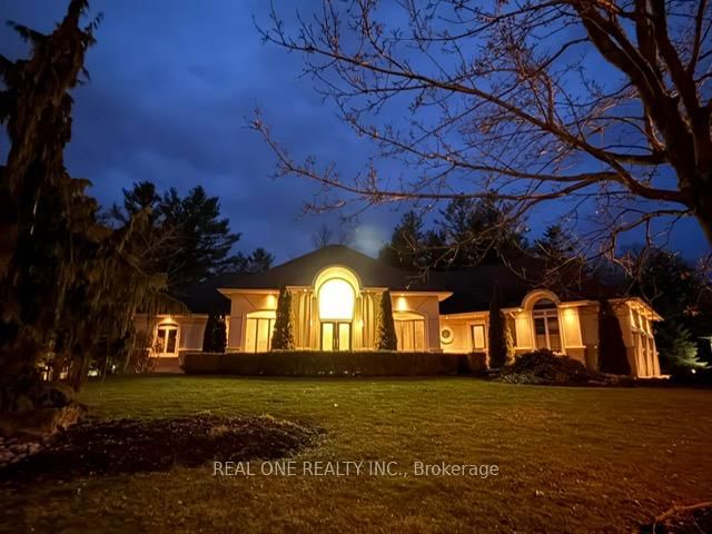 Rare find ! Exceptional, High-quality Steel-Structure 5 Bdrm Solid Bungalow W/ 3-Car Garage, Quietly Situated on The Aappro 1-Ac Lot *This Exquisite Home Offers a Perfect Blend of Sophistication & Tranquility. The Bungalow on 24 Maplehyrn Avenue has 3 bedrooms, 4 bathrooms, and is located on a 295.28 x 129.92 ft lot in the community of Sharon . Featuring a 15' Ceiling High for Grand Foyer ,11' Ceiling High for the Family & Primary Rm & 9' Ceiling High throughout the Main Level, Provides a Bright & Airy Living Space, Rarely/Smart Home System & B/I Speakers In This Sought After Neighborhood, Ideal For Both Entertaining & Everyday Living* The Grand Foyer Opens To a Spacious, Open-concept Family Rm*The Gourmet Kitchen is a Chef's Dream, Complete With High-End Appliances, Renovated Neff Cabinetry W/ Ergonomically Designed Handles Plus Ample Counter Space* The Primary Bdrm Offers a Peaceful Retreat W/ a Fireplace, a Luxurious Ensuite Bathroom & Walk-in Closet* Two Additional Bdrms Are Thoughtfully Located On the Opposite Side of the Home, Providing Privacy & Comfort*Separate 2nd Front Entrance To The Mud Room Provides The Convenience*Partially Finished Walkout Basement Offers Endless Possibilities For Customization-Home Theatre, Fitness Centre, Office or Additional Family Space* Rough-In Wine Cellar in The Basement With Solid Wood Glass Dr*RareSmart Home System