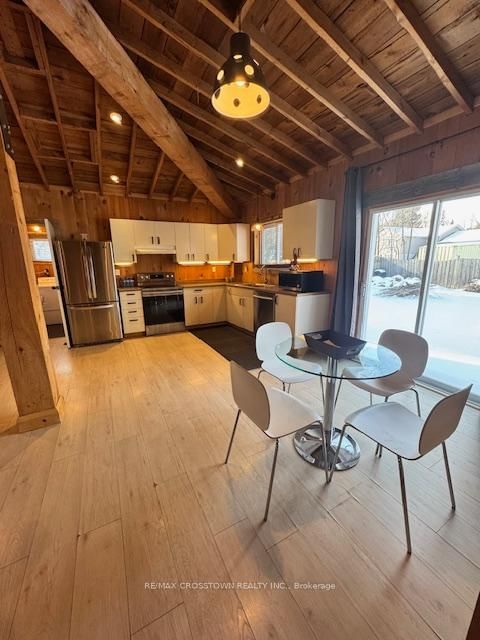 Discover the perfect blend of lakeside charm and investment potential in Lefroy, Innisfil! Just steps from the lake and a private beach, this inviting wood-beamed bungalow offers rustic elegance with modern comforts. The Bungalow on 1056 Elm Road has 3 bedrooms, 2 bathrooms, and is located on a 140 x 100 ft loton < .50 acres in the community of Rural Innisfil . Boasting generous frontage ideal for subdividing into two lots, this property is as much an opportunity as it is a home.Enjoy summer mornings on the spacious screened-in front porch or host friends in the open-concept living and dining areas drenched in natural light. The updated kitchen features stainless steel appliances, perfect for culinary enthusiasts, while three bedrooms-including a primary suite with ensuite-ensure comfort for family and guests.Step outside to a beautifully treed yard with a 550sqft poured concrete patio, ideal for relaxing or entertaining, and a huge circular driveway for effortless parking. A separate laundry room adds convenience to everyday living.Whether you're soaking in serene lake views, enjoying the private backyard, or exploring the potential of subdividing, this home combines lakeside lifestyle with smart long-term value. Don't miss your chance to own a piece of Lefroy's charm-a true retreat ready to welcome you home!