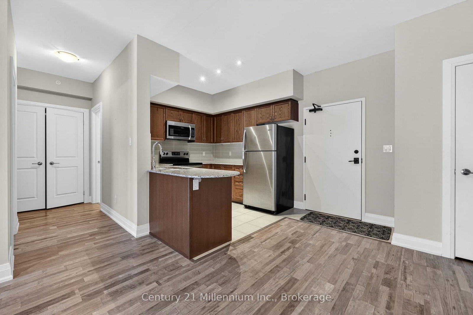 Main floor executive condo in the heart of Alliston. The 1 Storey/Apt on 109-157 Wellington Street E has 1 bedrooms, 1 bathrooms, and is located in the community of Alliston . Walking distance to shops, restaurants, school, and the recreation center. This beautiful one-bedroom, one-bathroom open concept living and dining room comes with granite kitchen counter, and stainless steel appliances. A stunning 3-piece bathroom with custom tile and a walk-in glass shower. A large primary bedroom with closet. The unit comes with LG stacked full size washer and dryer, one underground parking space and lots of visitor parking. Close to highway 400, 27, and 50.