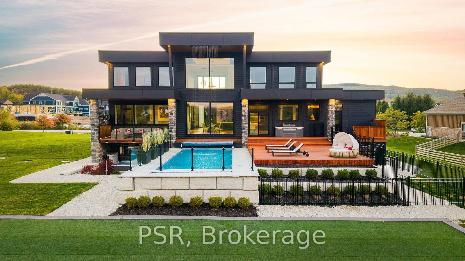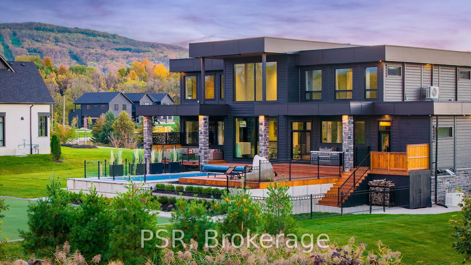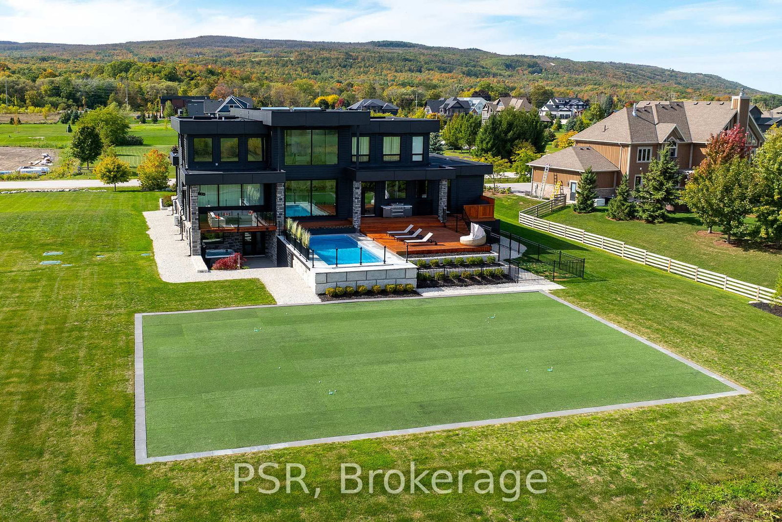 Welcome to the extraordinary turn key living experience offered by 4 Raintree Court, nestled in the heart of Ontario's ski country. The 2-Storey on 4 Raintree Court has 4 bedrooms, 7 bathrooms, and is located on a 266 x 182 ft loton .50-1.99 acres in the community of Rural Clearview . This luxurious home in the exclusive Windrose Estates combines elegance and sophistication with functional amenities for today's modern families. This custom-built home offers five spacious bedrooms, seven bathrooms, a home theatre, fully equipped gym, sauna, hot tub and heated pool over 8,600 square feet of interior space on a one-acre lot. High ceilings, custom lighting design, multiple skylights and walls of windows work with the wood accent walls to create a contemporary space that is flooded with light. In-floor radiant heating keeps the space cozy and warm throughout ski season as you sit by the fireplace watching the snow fall. The grand kitchen and dining area serve as the heart of this home, with soaring 23ft ceilings and the 10ft high by 16 ft wide sliding doors overlooking the backyard and 10-acre parkland beyond. Equipped with top-of-the-line appliances and designer counters and finishes, the kitchen is a perfect space for those who love to cook and entertain. The outdoor entertainment area includes a new outdoor kitchen, conversation area featuring patio heaters, heated pool and a waterfall that cascades from the upper roof into the pool. The property offers stunning mountain views of Osler Bluffs and Blue Mountain which can be enjoyed from throughout the home. Both resorts are less than ten minutes from the estate, as is downtown Collingwood. Simcoe County is known for its vibrant community atmosphere and natural beauty. From hiking trails to farmers' markets and local festivals-there's always something to see or do here. Notably, Clearview Township allows you to snowmobile or side by side directly out of your own property to the trails located right in the neighbourhood. 4 Raintree Court is more than just a house-it's a lifestyle destination that combines stylish luxury living within your own personal sanctuary.