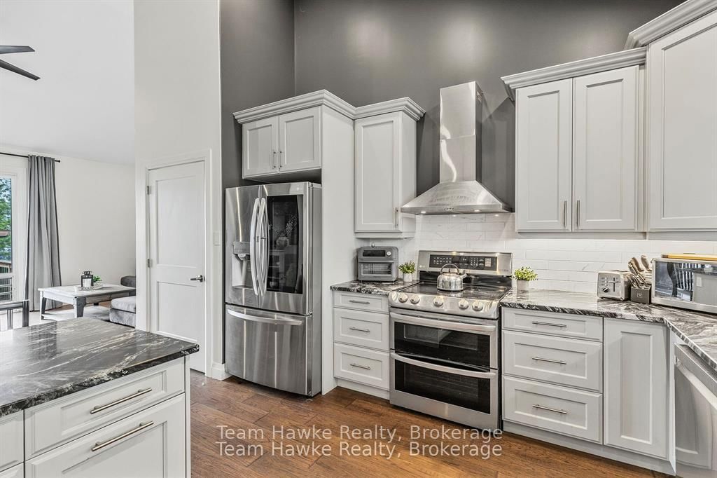 Built in 2021, this home offers a stylish, functional layout with quality finishes throughout, ideal for modern living! Step inside to find hardwood floors and a spacious open-concept design with soaring cathedral ceilings that give the main living areas an airy, welcoming feel. The Bungalow on 969 WILLIAM Street has 2 bedrooms, 3 bathrooms, and is located on a 123 x 100 ft loton < .50 acres in the community of Midland . The kitchen is well-equipped with stainless steel appliances, a large granite island and plenty of cupboard space, giving you the ultimate prep space, and made for entertaining. The main floor includes two comfortable bedrooms, including a primary with its own private 3-piece ensuite and wall to wall closet. The second bathroom on this level stands out, featuring a deep soaker tub and elegant tile with creamy tones and rich, rust-coloured veining, paired with quartz counters, these features all bring a spa-like touch to the space. You'll also find the convenience of main floor laundry tucked neatly into the layout. Off the living room, walk out to your back deck and enjoy a fully fenced backyard that feels private and peaceful, filled with mature trees and only one direct residential neighbour. The finished basement expands your living space with a generous rec room, a third bedroom, and a full four-piece bathroom. There's also a kitchen area ready for appliances, ideal for extended family, guests, or in-law potential. If you're looking for a move-in-ready home with flexible space, thoughtful design, and privacy, this one is well worth a look!