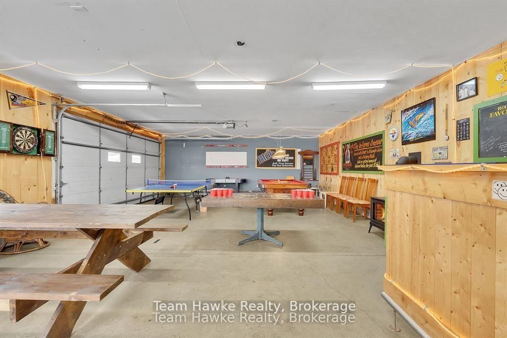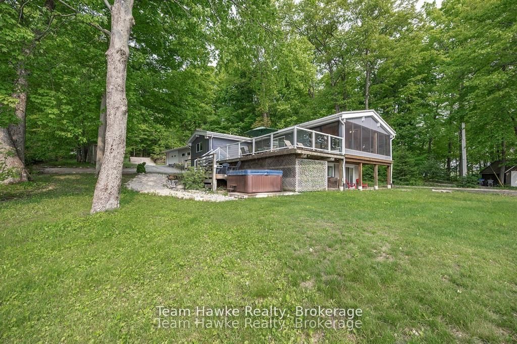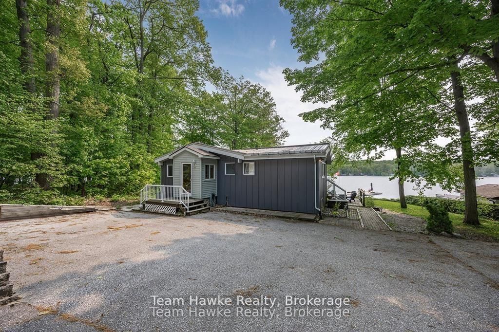 Escape the city and embrace lakeside living! Located 15 minutes from Penetanguishene and under 2 hours from the GTA, this exceptional four-season lakefront home is nestled on a beautifully landscaped 3/4 acre lot with hundreds of feet of private shoreline. The Bungalow on 23 Timcourt Drive has 2 bedrooms, 3 bathrooms, and is located on a 210.9 x 82.66 ft loton .50-1.99 acres in the community of Rural Tiny . The calm, swimmable waters and shallow sandy entry create warmer temperatures that are ideal for families and swimming; a highly sought-after feature compared to larger, busier lakes. Offering just under 2,400 square feet of finished living space, this spacious and thoughtfully designed home features 3 bedrooms and 3 bathrooms, perfectly suited for full-time living or a luxury recreational retreat. The main-floor primary suite includes a private ensuite and custom built-in wardrobes, while the open-concept living and dining areas flow seamlessly into an enclosed, lake-facing sunroom with southeastern exposure - the perfect place to enjoy morning light and lake breezes. Sunroom windows can be removed for summer use, with screens remaining in place for convenience. The kitchen offers generous counter space, ample cabinetry, and a built-in dishwasher, making it ideal for entertaining family and guests. The walkout basement features an additional bedroom and two versatile bonus rooms, perfect for guests, a home gym, office, or hobby area. Outdoor living here is equally impressive. Relax in the hot tub, gather around the fire pit, or enjoy games on the bocce ball court, or horseshoe pits located on the point. The fully insulated and heated detached double garage (approximately 800 sq ft) is an entertainer's dream, complete with a bar, table games and lounge, making it the ultimate year-round hangout space. Additional highlights include a private dock, large paved driveway, forced-air gas heating, and central air conditioning for year-round comfort. Best of all, this turnkey waterfront property is being sold fully furnished, simply bring your swimsuit and start enjoying lake life from day one.