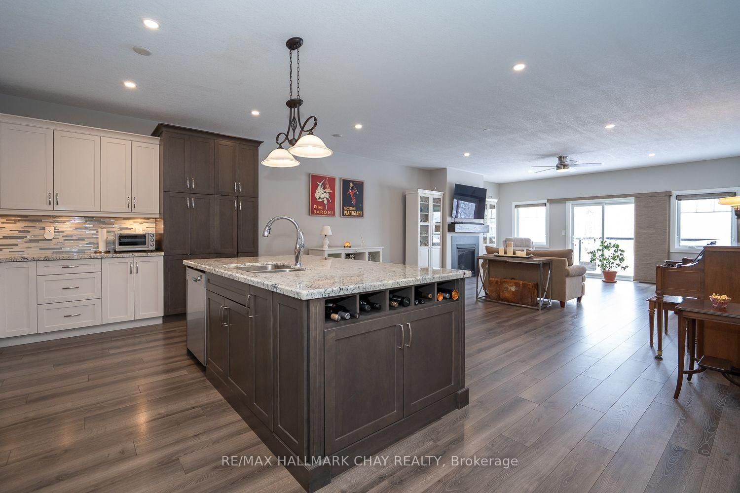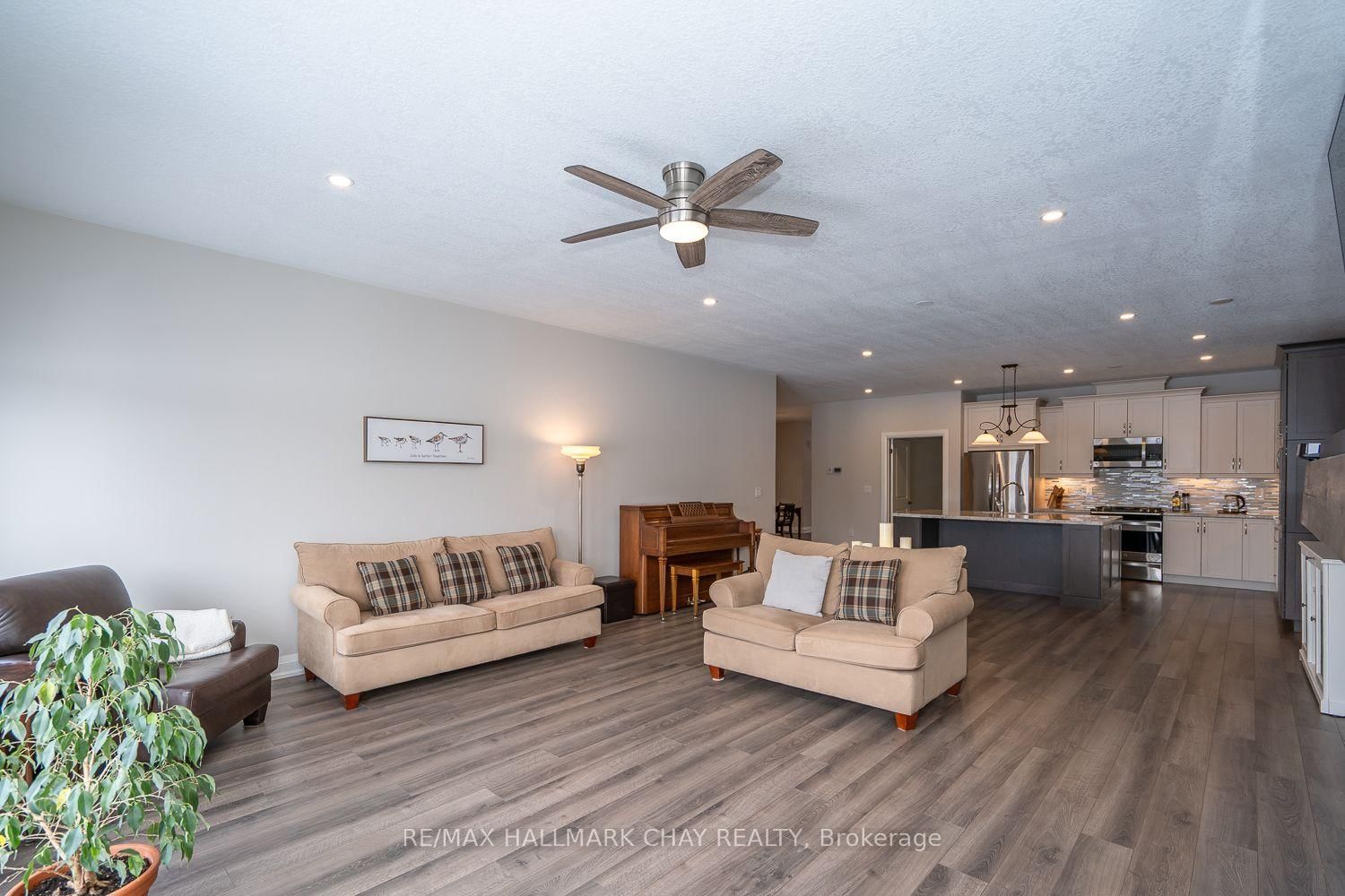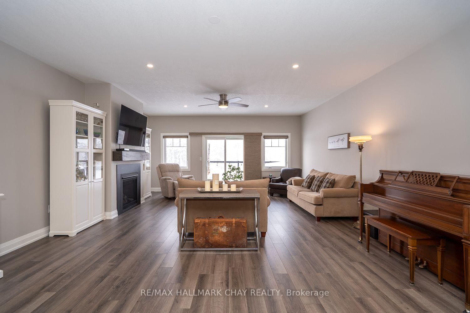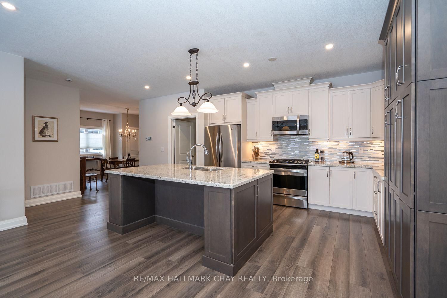 LUXURY FREEHOLD END-UNIT TOWNHOUSE BUNGALOW, BACKING ONTO GREEN SPACE, WITH BEAUTIFULLY FINISHED WALK-OUT BASEMENT, MINUTES FROM HORSESHOE VALLEY RESORT!. The Bungalow on 54 Landscape Drive has 2 bedrooms, 3 bathrooms, and is located on a 117.35 x 40.72 ft lot in the community of Horseshoe Valley ...............Built in 2015, and with over 3,000 sq ft finished, this modern open concept home, featuring 9 ft ceilings, has an incredibly bright and spacious feel...............Main floor is highlighted by massive living room with gas fireplace, & walk-out to deck, and upscale kitchen with granite counters, backsplash and large breakfast island...............Plenty of space for vehicles and toys with 4 car driveway & 2 car garage w/man-door to huge mud/laundry room...............Main bedroom has 4 pc ensuite, w/i closet, and large windows with nice view of green space..............Sensational basement with walk-out to patio is incredibly bright and wide open, featuring gigantic rec room, bedroom, gym area, office nook, wet bar, and 5 piece bath...............Premium location with a number of conveniences, luxuries, and adventures within 5/10 mins including: Highway 400, Horseshoe Valley Resort, Vetta Nordic Spa, New elementary school, & nurse practitioner................Other features/upgrades include: Bell Fibe Hi-speed internet, Roof 2025, 200 amp electrical service, gas stove, pot lights, freshly painted interior with neutral tones, SS kitchen appliances...............This truly is an exceptional home in a prime area.