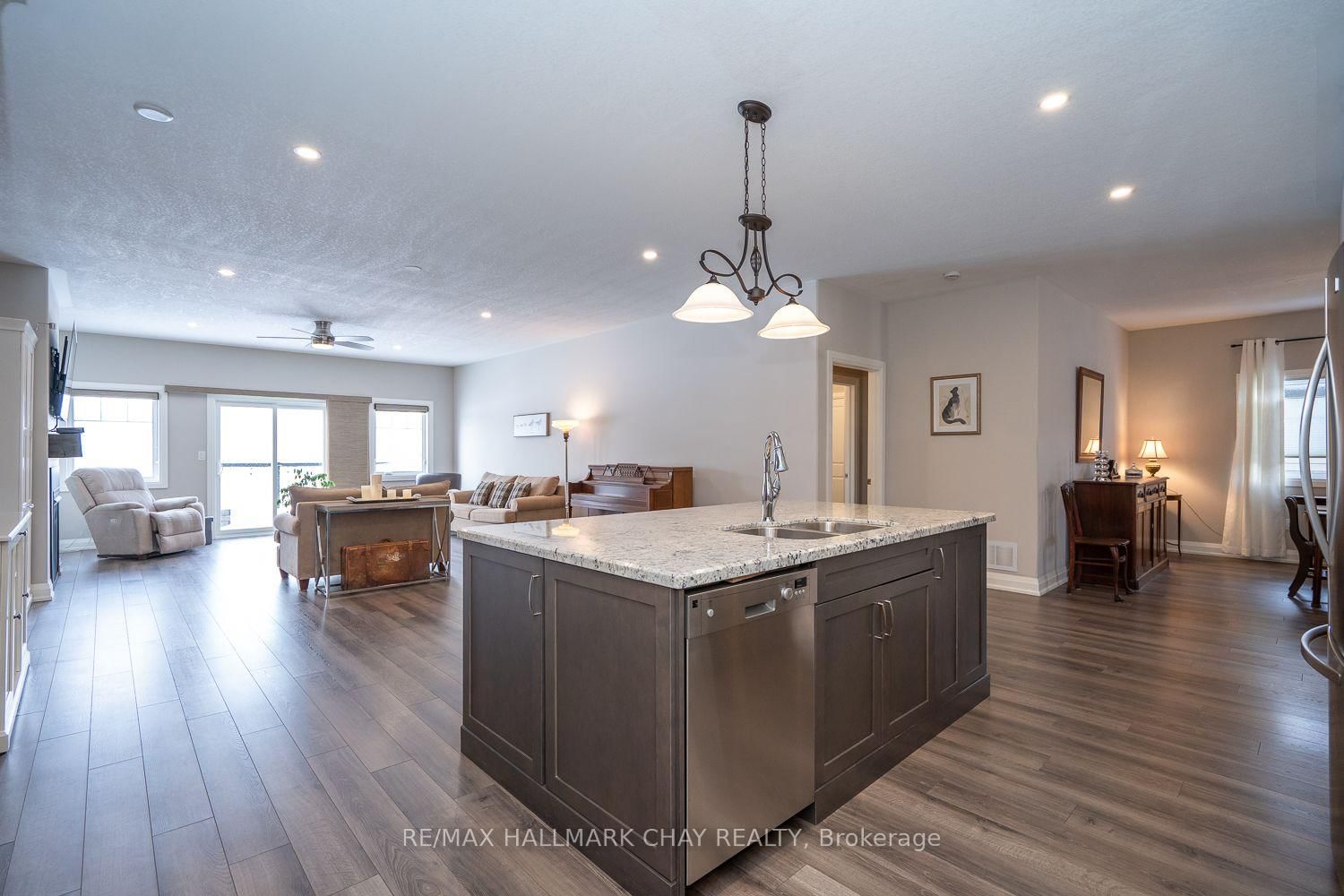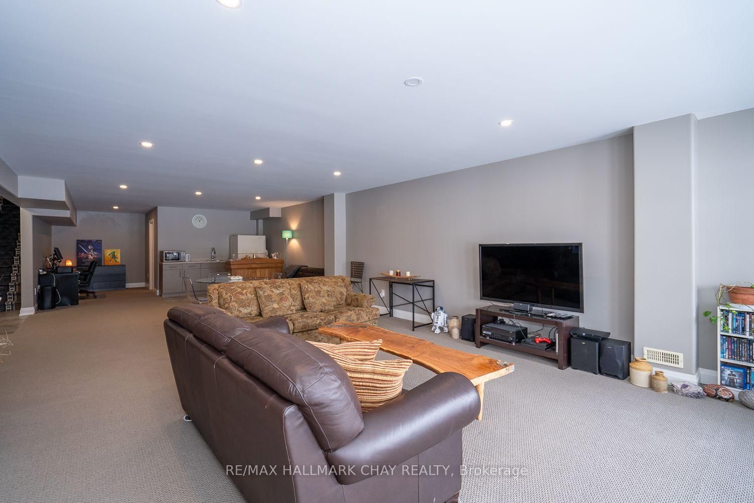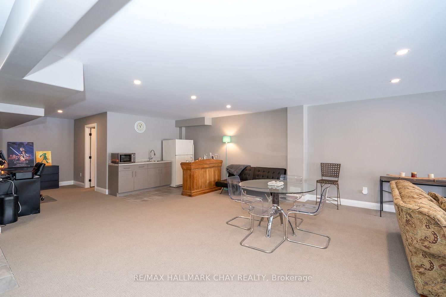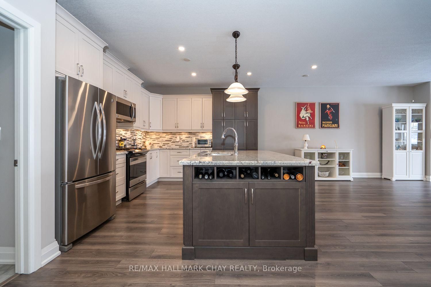 LUXURY FREEHOLD END-UNIT TOWNHOUSE BUNGALOW, BACKING ONTO GREEN SPACE, WITH BEAUTIFULLY FINISHED WALK-OUT BASEMENT, MINUTES FROM HORSESHOE VALLEY RESORT!. The Bungalow on 54 Landscape Drive has 2 bedrooms, 3 bathrooms, and is located on a 117.35 x 40.72 ft lot in the community of Horseshoe Valley ...............Built in 2015, and with over 3,000 sq ft finished, this modern open concept home, featuring 9 ft ceilings, has an incredibly bright and spacious feel...............Main floor is highlighted by massive living room with gas fireplace, & walk-out to deck, and upscale kitchen with granite counters, backsplash and large breakfast island...............Plenty of space for vehicles and toys with 4 car driveway & 2 car garage w/man-door to huge mud/laundry room...............Main bedroom has 4 pc ensuite, w/i closet, and large windows with nice view of green space..............Sensational basement with walk-out to patio is incredibly bright and wide open, featuring gigantic rec room, bedroom, gym area, office nook, wet bar, and 5 piece bath...............Premium location with a number of conveniences, luxuries, and adventures within 5/10 mins including: Highway 400, Horseshoe Valley Resort, Vetta Nordic Spa, New elementary school, & nurse practitioner................Other features/upgrades include: Bell Fibe Hi-speed internet, Roof 2025, 200 amp electrical service, gas stove, pot lights, freshly painted interior with neutral tones, SS kitchen appliances...............This truly is an exceptional home in a prime area.