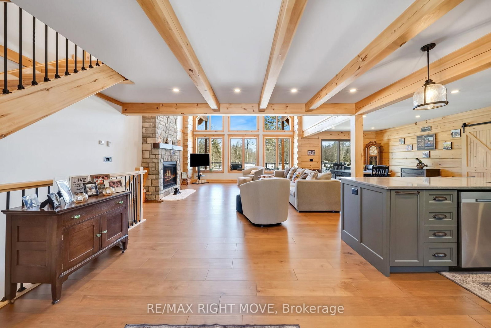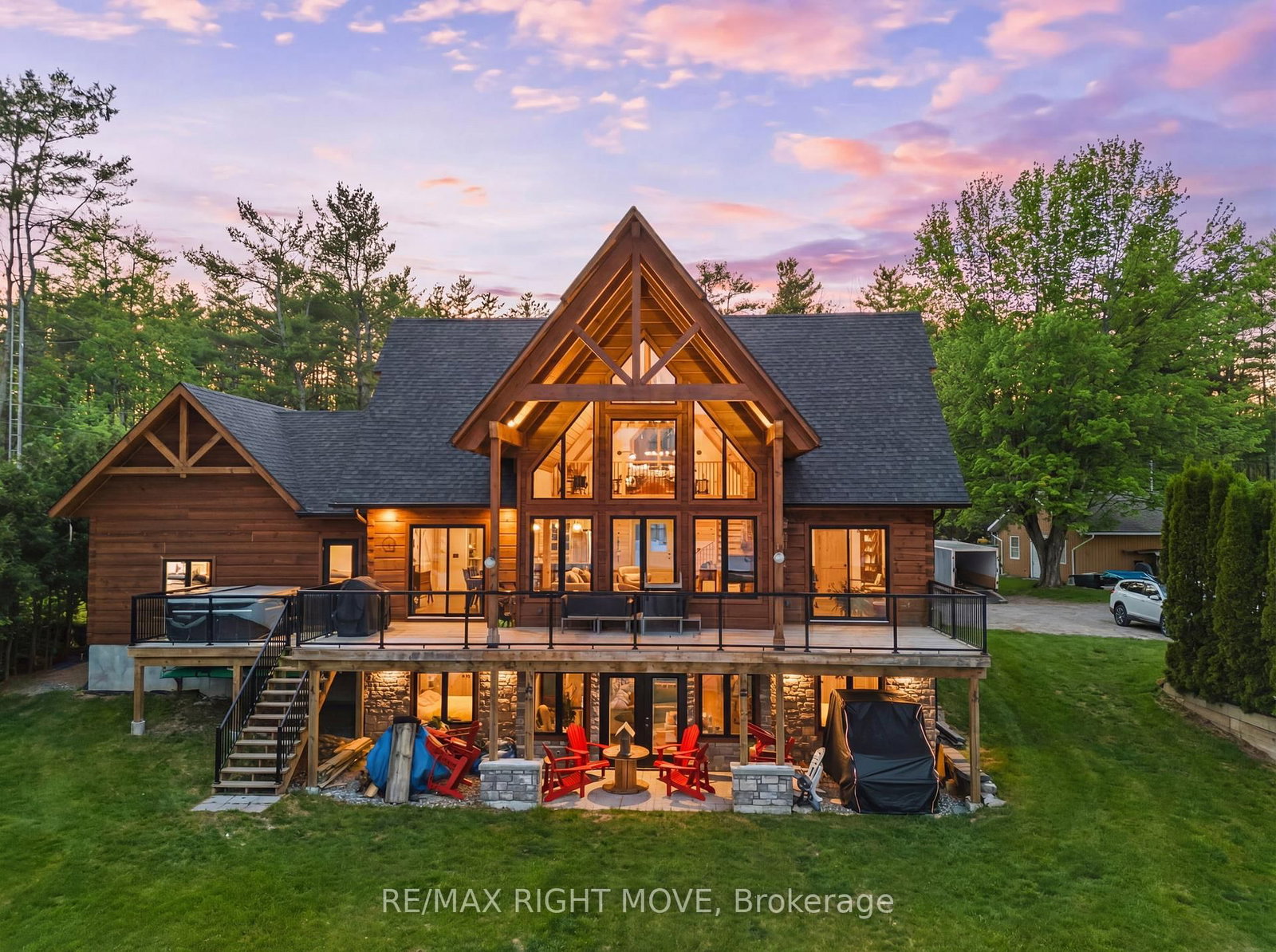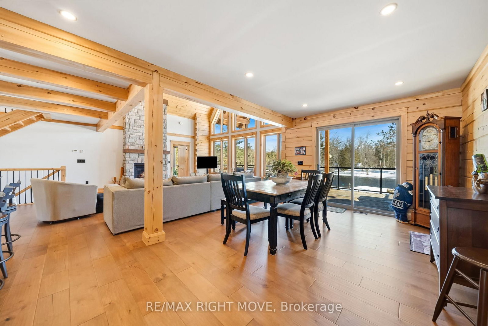Set along 103 feet of open waterfront on McLeod Drive in Severn, this custom built solid log residence offers a rare blend of craftsmanship, scale, and natural setting. The 2-Storey on 1935 Mcleod Drive has 3 bedrooms, 3 bathrooms, and is located on a 230 x 101.18 ft lot in the community of Rural Severn . The moment you step inside, the architecture makes an impression. Soaring ceilings, an open concept living and kitchen area filled with natural light, and expansive windows frame beautiful river views from many of the principal rooms. It is a home designed not just for living, but for enjoying its surroundings. The kitchen and family room connect seamlessly, creating a comfortable space suited to both entertaining and quiet evenings at home. Patio doors open to a riverside porch where the outdoors becomes a natural extension of the living space. A main floor bedroom with a private ensuite offers excellent flexibility for guests or multi generational living. Above, the open loft style primary suite provides a peaceful retreat with large his & her custom walk in closets and a well appointed spa like ensuite. The loft design maintains a connection to the open living space below while still offering privacy. The fully finished walkout lower level adds even more living space with a large recreation room, two additional bedrooms, and a 3 piece bathroom, providing comfortable accommodation for family and guests. Step outside from the walkout and unwind in the hot tub, perfectly positioned to take in the river setting year round. With 103 feet of frontage on the Severn River and a solid log home designed for lasting quality, this property offers an exceptional waterfront lifestyle 15 minutes from Orillia and its amenities while still feeling comfortably removed from the pace of town.