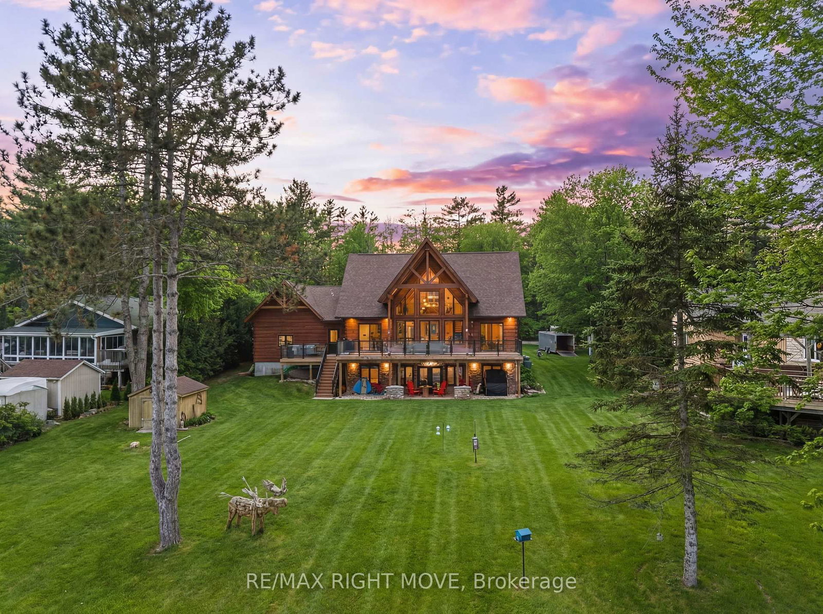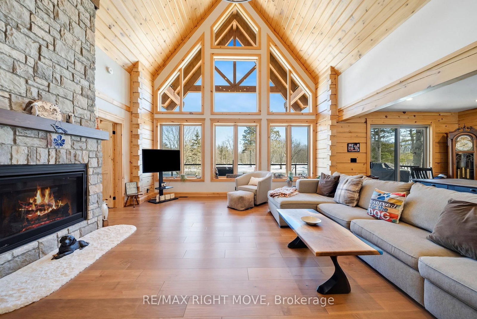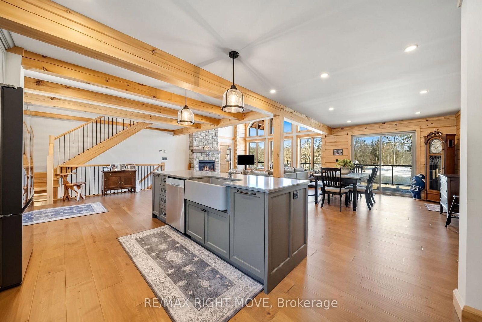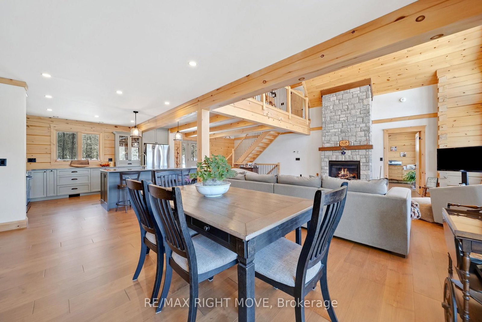 Set along 103 feet of open waterfront on McLeod Drive in Severn, this custom built solid log residence offers a rare blend of craftsmanship, scale, and natural setting. The 2-Storey on 1935 Mcleod Drive has 3 bedrooms, 3 bathrooms, and is located on a 230 x 101.18 ft lot in the community of Rural Severn . The moment you step inside, the architecture makes an impression. Soaring ceilings, an open concept living and kitchen area filled with natural light, and expansive windows frame beautiful river views from many of the principal rooms. It is a home designed not just for living, but for enjoying its surroundings. The kitchen and family room connect seamlessly, creating a comfortable space suited to both entertaining and quiet evenings at home. Patio doors open to a riverside porch where the outdoors becomes a natural extension of the living space. A main floor bedroom with a private ensuite offers excellent flexibility for guests or multi generational living. Above, the open loft style primary suite provides a peaceful retreat with large his & her custom walk in closets and a well appointed spa like ensuite. The loft design maintains a connection to the open living space below while still offering privacy. The fully finished walkout lower level adds even more living space with a large recreation room, two additional bedrooms, and a 3 piece bathroom, providing comfortable accommodation for family and guests. Step outside from the walkout and unwind in the hot tub, perfectly positioned to take in the river setting year round. With 103 feet of frontage on the Severn River and a solid log home designed for lasting quality, this property offers an exceptional waterfront lifestyle 15 minutes from Orillia and its amenities while still feeling comfortably removed from the pace of town.