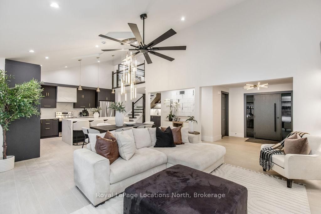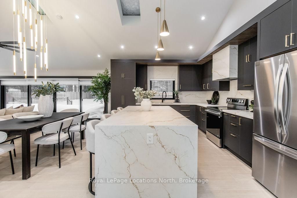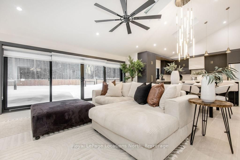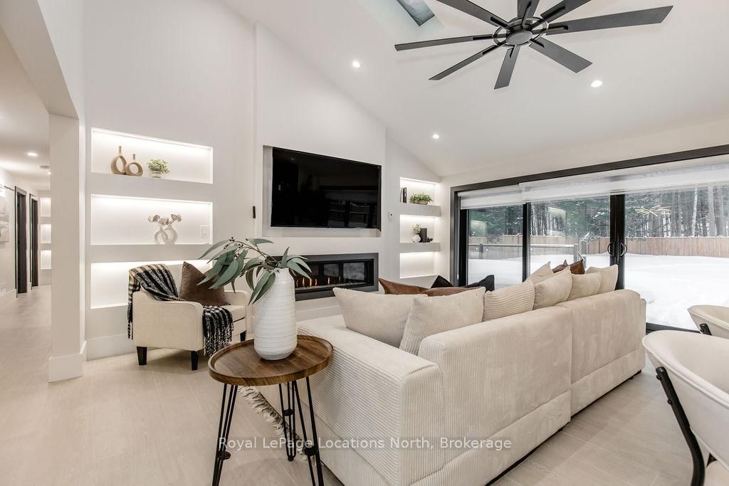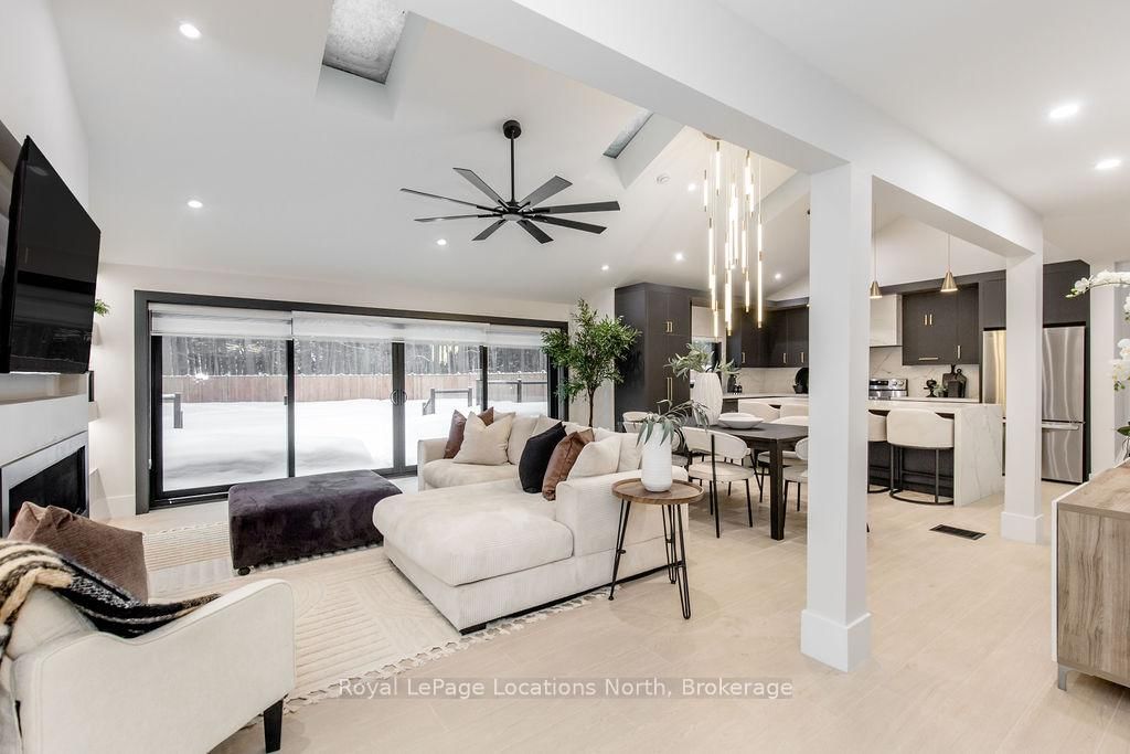 This true ranch-style bungalow offers effortless, stair-free living with oversized sliding glass doors stretching across the family room, framing views of a large, fully fenced backyard that backs directly onto 56 acres of Crown land. The Bungalow on 478 Golf Course Road has 3 bedrooms, 3 bathrooms, and is located on a 200 x 100 ft lot in the community of Wasaga Beach . With no rear neighbours, this is a rare setting where privacy, nature, and everyday convenience meet.The home offers over 2,300 sqft of living space on a generous 100' x 200' lot. An oversized garage with inside entry, paired with an open concept layout, makes this an ideal forever home. Outdoor enthusiasts will love the location- snowmobile trails just down the road, Marlwood Golf Course across the street, nearby hiking/snowshoeing trails and the world's longest freshwater beach only a 7-min drive. The primary bedroom is a true retreat, featuring vaulted ceilings, a cozy fireplace, sliding doors leading directly to the rear deck, and a high-end ensuite complete with a glass shower, floating soaker tub, and walk-in closet.The home has undergone extensive renovations throughout, including a brand new roof, soffits, fascia, exterior siding, windows, garage doors, and a new high-efficiency furnace with in-floor heating. Electrical, lighting, pot lights, and all interior flooring have been fully updated.The renovated kitchen showcases quartz countertops/backsplash, oversized island, custom cabinetry with pull-out organizers, a dedicated coffee bar, a built-in full-size wine fridge, and all new stainless steel appliances. Every bathroom has been fully renovated with modern fixtures and finishes.Upgrades include expansive new rear sliding doors, custom blinds, upgraded main-floor laundry with inside entry to garage, loft with a full bathroom and second family room with new TVs, an updated fireplace with custom built-ins, cathedral ceilings, skylights, and brand new tiered decks spanning the entire back of the home. The property is fully fenced with custom stone walkways, creating a private outdoor retreat you'll enjoy year-round.