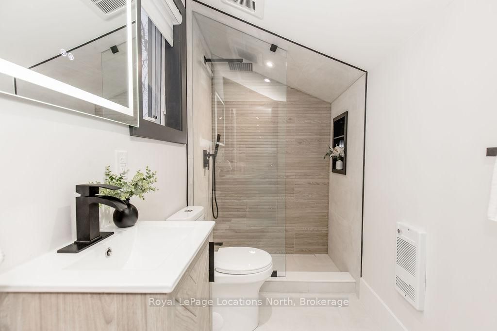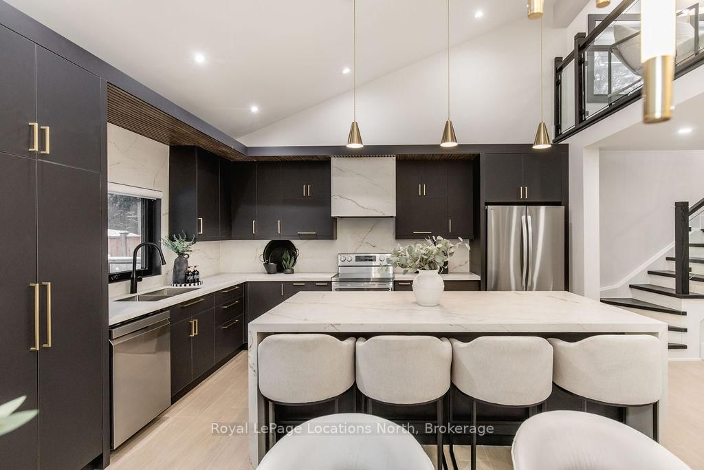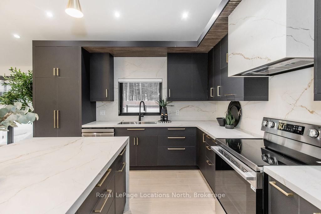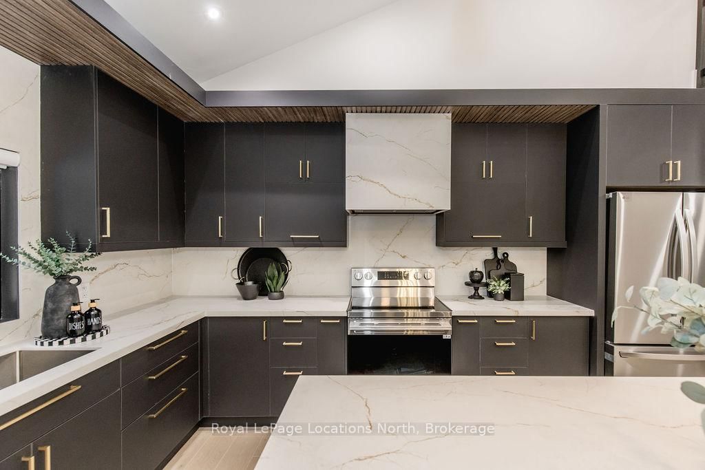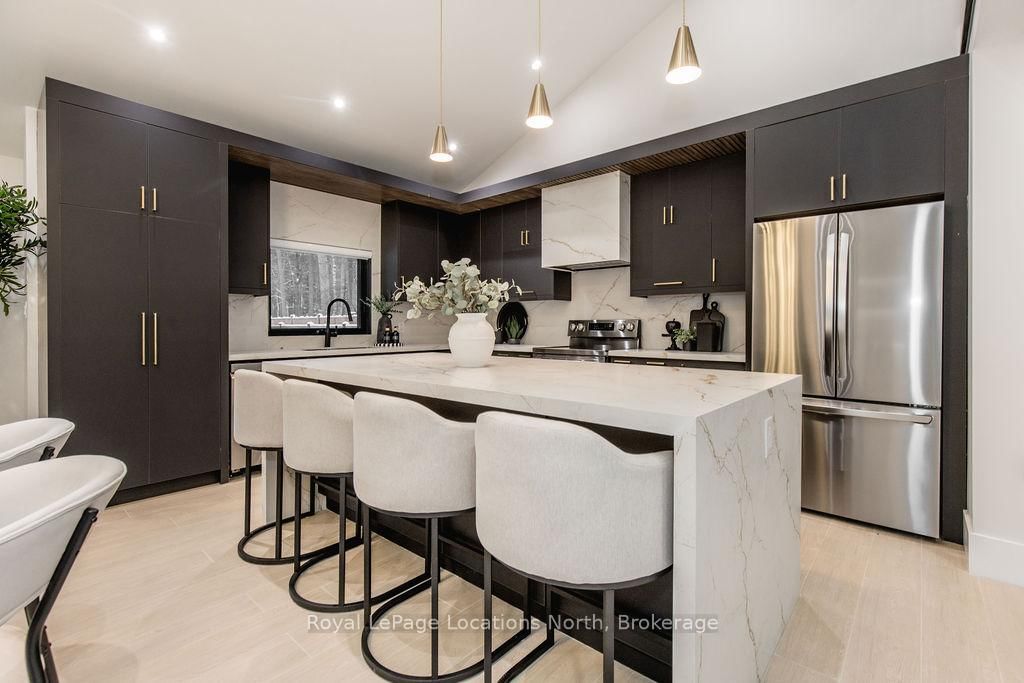 This true ranch-style bungalow offers effortless, stair-free living with oversized sliding glass doors stretching across the family room, framing views of a large, fully fenced backyard that backs directly onto 56 acres of Crown land. The Bungalow on 478 Golf Course Road has 3 bedrooms, 3 bathrooms, and is located on a 200 x 100 ft lot in the community of Wasaga Beach . With no rear neighbours, this is a rare setting where privacy, nature, and everyday convenience meet.The home offers over 2,300 sqft of living space on a generous 100' x 200' lot. An oversized garage with inside entry, paired with an open concept layout, makes this an ideal forever home. Outdoor enthusiasts will love the location- snowmobile trails just down the road, Marlwood Golf Course across the street, nearby hiking/snowshoeing trails and the world's longest freshwater beach only a 7-min drive. The primary bedroom is a true retreat, featuring vaulted ceilings, a cozy fireplace, sliding doors leading directly to the rear deck, and a high-end ensuite complete with a glass shower, floating soaker tub, and walk-in closet.The home has undergone extensive renovations throughout, including a brand new roof, soffits, fascia, exterior siding, windows, garage doors, and a new high-efficiency furnace with in-floor heating. Electrical, lighting, pot lights, and all interior flooring have been fully updated.The renovated kitchen showcases quartz countertops/backsplash, oversized island, custom cabinetry with pull-out organizers, a dedicated coffee bar, a built-in full-size wine fridge, and all new stainless steel appliances. Every bathroom has been fully renovated with modern fixtures and finishes.Upgrades include expansive new rear sliding doors, custom blinds, upgraded main-floor laundry with inside entry to garage, loft with a full bathroom and second family room with new TVs, an updated fireplace with custom built-ins, cathedral ceilings, skylights, and brand new tiered decks spanning the entire back of the home. The property is fully fenced with custom stone walkways, creating a private outdoor retreat you'll enjoy year-round.