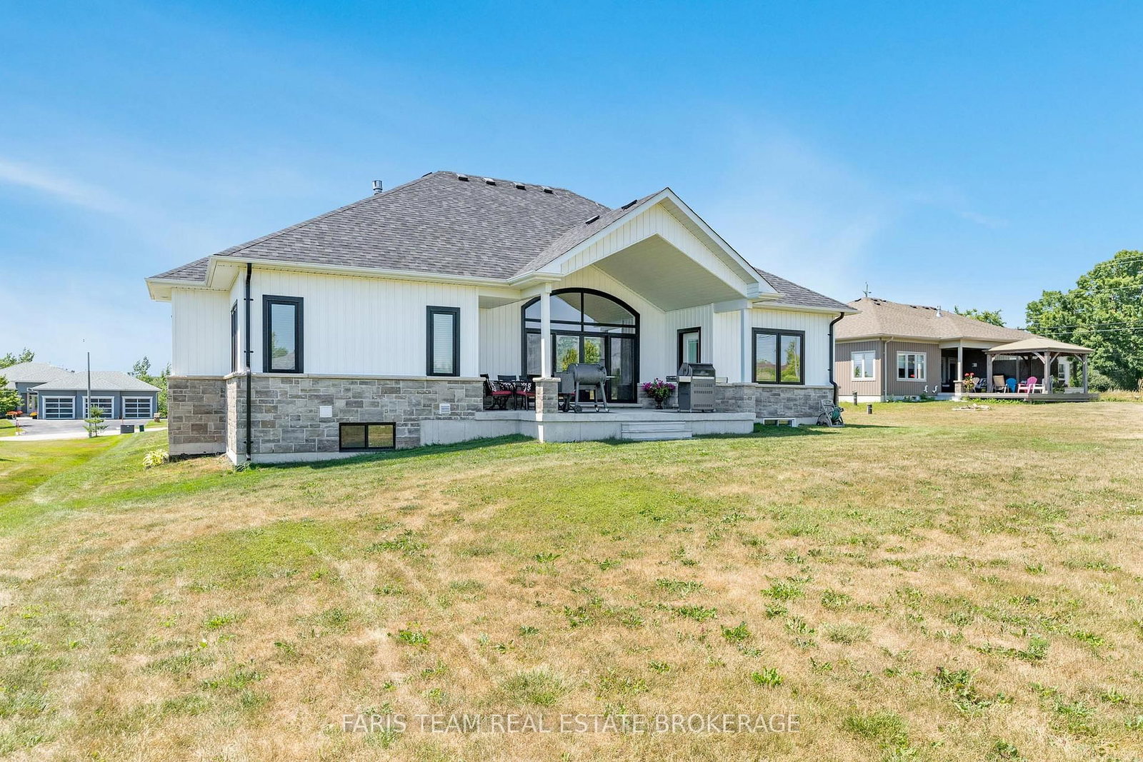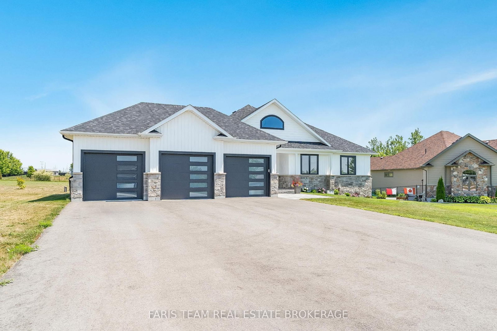 Top 5 Reasons You Will Love This Home: 1) Set on a 0. The Bungalow on 5 Breanna Boulevard has 3 bedrooms, 2 bathrooms, and is located on a 334.02 x 98.59 ft loton .50-1.99 acres in the community of Prices Corners .75-acre lot, this stunning custom-built home offers breathtaking sunrise views from the backyard and unforgettable sunsets from the front, all within a 15 minute walk to Bass Lake, the striking white Board & Batten ranch style bungalow with sleek black accents creates an impressive first impression, with an oversized three-car garage, featuring extra depth in the centre, perfect for a truck or van 2) The twice-paved driveway (2024) provides ample, secure parking for RVs, boats, and multiple vehicles, with the eye-catching Jewel Stone interlock walkway leading to the front entrance, while the rear of the home features a poured concrete covered porch, complete with a gas barbeque hookup and perched atop a scenic hill, framing panoramic countryside views 3) Instantly feel at home in the grand, light-filled entryway showcasing soft white and grey porcelain tile, leading to a stunning wall of windows and doors overlooking the expansive backyard, along with a kitchen featuring an impressive quartz island, vaulted ceilings, a beautiful gas fireplace, and black-trimmed doors topped with transom windows flooding the space with natural light 4) Designed for modern comfort and convenience, the home is equipped with stainless-steel appliances, including a new stainless-steel stove, an owned humidifier, water softener, full water filtration system, and upgraded wood flooring on the main level, with a well-designed laundry room providing direct access to the garage 5) Appreciate the full basement thoughtfully prepared with an installed subfloor, insulated exterior walls, and high-grade vinyl flooring (approximately $1,900), ready for two bedrooms and a bathroom; located just six minutes from Orillia and essential amenities, with a gas station and shops nearby, and access to skiing, biking, and water sports. 1,929 above grade sq.ft. plus an unfinished basement.