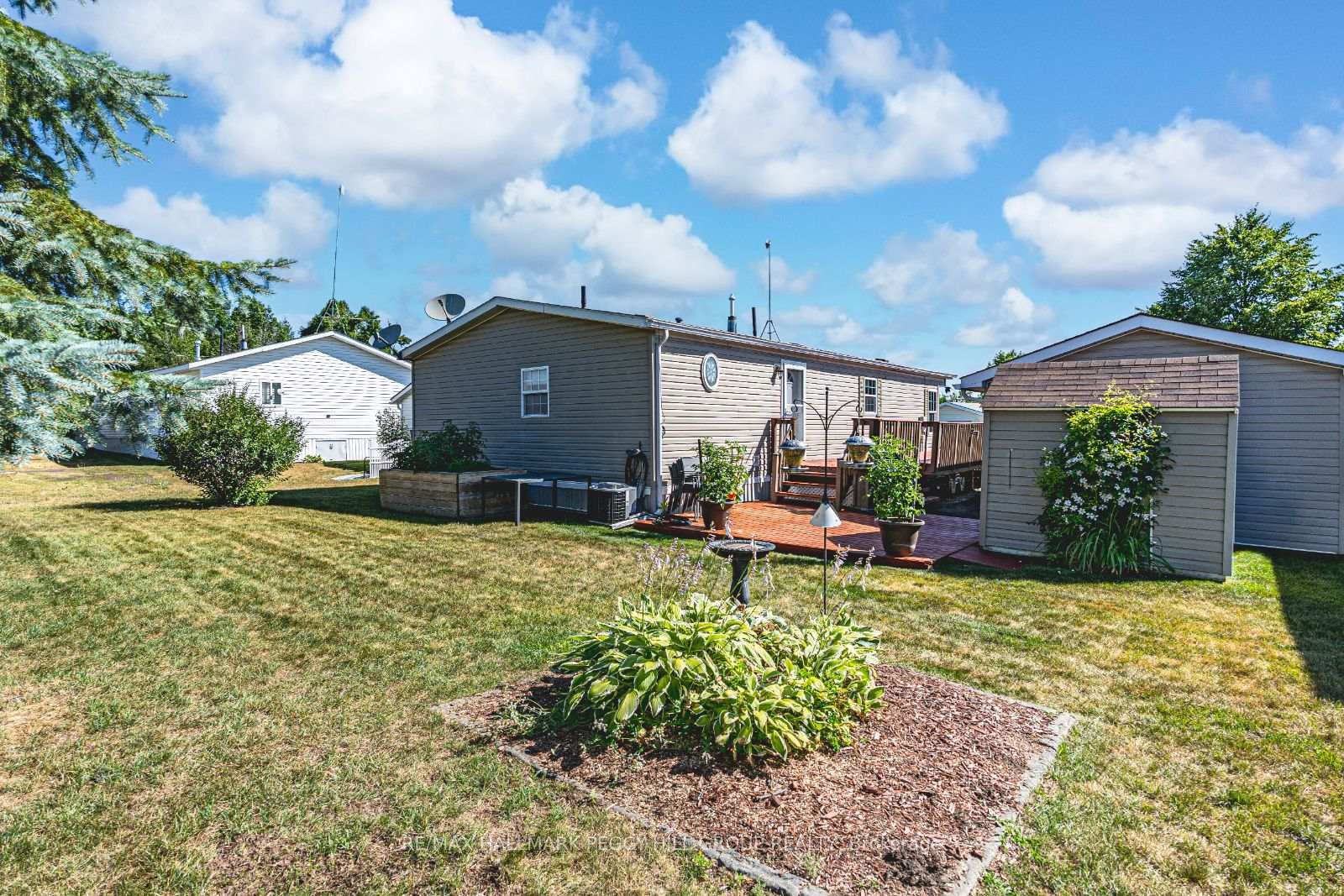 DETACHED GARAGE, INVITING INTERIOR & EASY ONE-LEVEL LIVING IN SILVER CREEK ESTATES! Silver Creek Estates, a land lease community, offers a serene environment with green spaces and walking trails tucked into a quiet, friendly neighbourhood that feels like home from the moment you arrive. The Bungalow on 4100 Wesley Street has 2 bedrooms, 2 bathrooms, and is located in the community of Rural Severn . Just outside Orillia and minutes from Lake Couchiching, this home is ideally located with quick access to Hwy 11, Costco, shopping, dining, healthcare services, Lakehead University, and Casino Rama. Manicured gardens and a newly stained multi-tiered wraparound deck create standout curb appeal, while the oversized detached garage includes a workshop area, garage door opener, and parking for one vehicle, plus two more spots in the driveway. The bright open-concept layout features updated flooring and fresh paint, a cozy gas fireplace, and an updated kitchen with a newer French door fridge, stove, dishwasher, and over-the-range microwave. Both bedrooms offer walk-in closets, with two full baths including a 4-piece ensuite complete with a whirlpool-style tub and a new shower enclosure. A separate side entrance leads into the mudroom and laundry area, finished with a stackable washer and dryer and a barn-style privacy door. Additional features include an upgraded furnace and AC, a 200-amp electrical panel, an owned water heater, and a separate garden shed. Say goodbye to compromise and hello to comfort in a place you'll be proud to call home.
