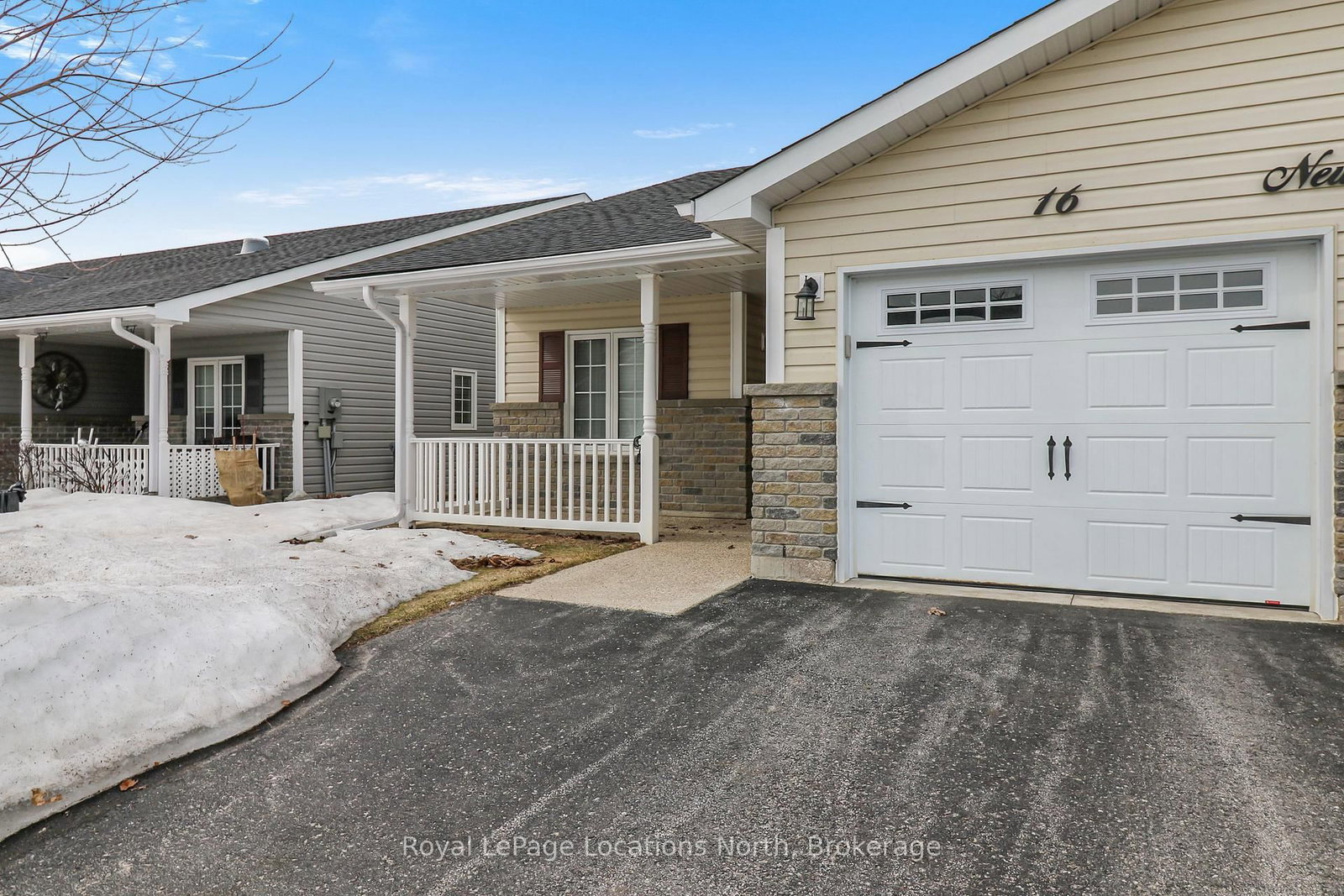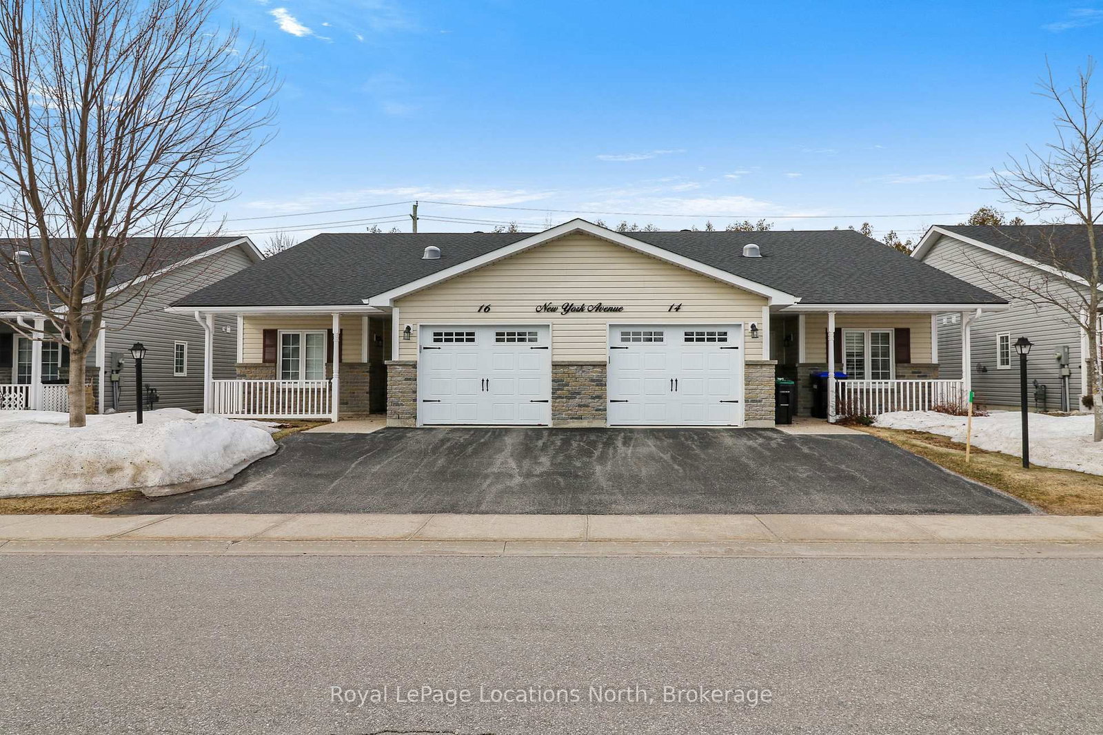 Spotlessly clean, wonderfully laid-out true bungalow (no steps at front door) located in a popular adult (age 55+) land lease community in a very quiet & tranquil area of Wasaga Beach. The Bungalow on 16 New York Avenue has 2 bedrooms, 2 bathrooms, and is located in the community of Wasaga Beach . This 10-year-old, 1,248 sq. ft. semi-detached end-unit home has 2 bedrooms/2 bathrooms & shows like new. Features include open-concept principal living areas (kitchen, dining area & living room); vaulted ceilings with pot lights; elegant crown moulding; an upgraded kitchen (with a center island/breakfast bar & stainless steel appliances); low-maintenance flooring [a nice mixture of engineered laminate (living & dining areas), carpeted bedrooms, & laminate flooring (kitchen, bathrooms, laundry & foyer)]. You'll appreciate a covered front entrance & porch, a 10' x 29' screened-in rear deck (composite) with an open BBQ area, the 12' x 25' (extra deep) garage, & a double-wide, paved driveway with room to park 2 cars. Located nearby is some very convenient visitor's parking too. As for HVAC, the house features an economical forced-air gas furnace, central air-conditioning, & an HRV in the 4'5" crawl space (with a cement floor, great for off-season storage). Located in the 6th & final phase known as Founder's Village within Park Place (one of Wasaga Beach's premier adult land-lease communities). The nearby private pond (with a water fountain feature & gazebo) makes for a very private, peaceful, & tranquil neighbourhood. This gorgeous community (with trails) is part of 115 acres of forest & fields, water & wilderness in Wasaga Beach. Numerous amenities on-site include a 12,000 sq. ft. recreation complex, an indoor saltwater pool, game rooms, a woodworking shop & more. This neighbourhood is private yet still ideally located within minutes from the beach, shopping, Marlwood Golf Course, the trail system & other amenities. Monthly fees to new owners will be $1,014.13 [Land Lease ($800) + Lot Tax ($60.40) + Structure Tax ($153.73)]. Buyers are responsible for snow removal & lawn maintenance.