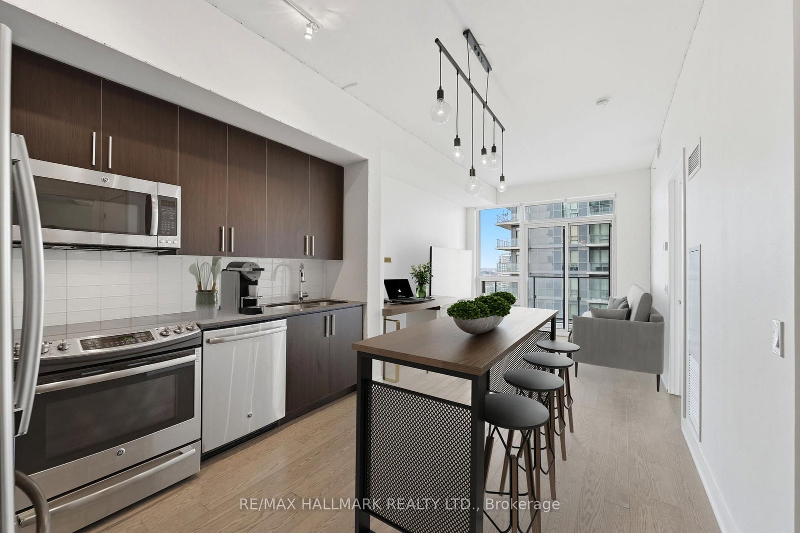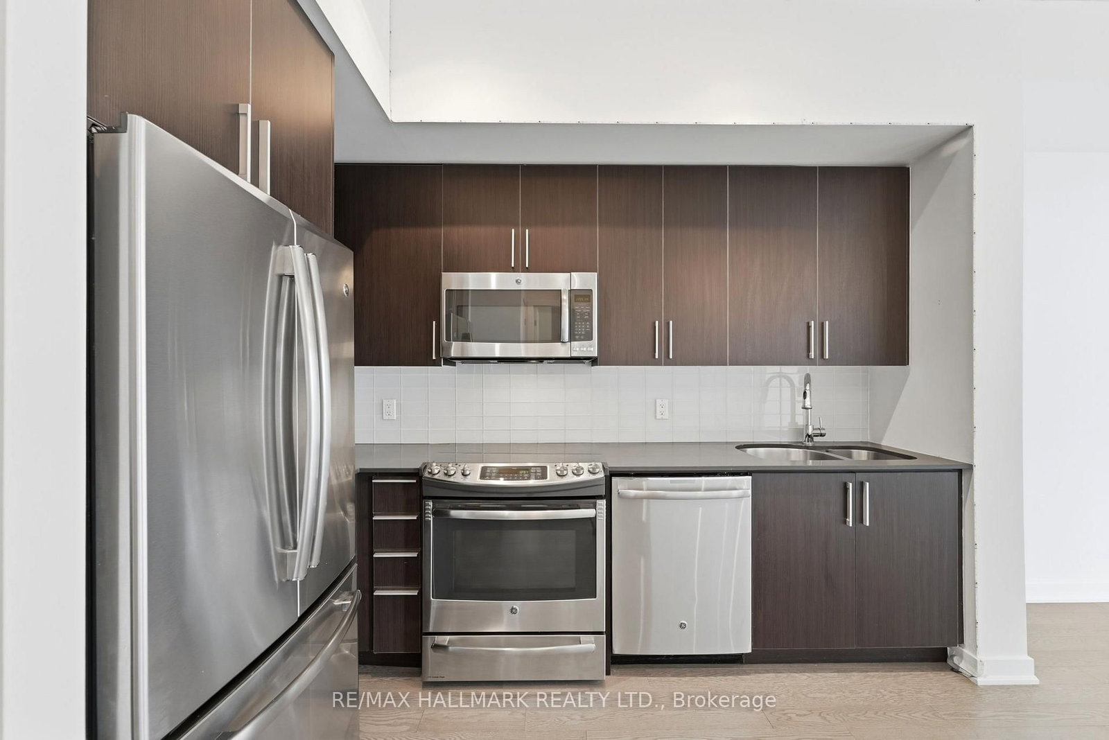 Stainless Steel Appliances: Fridge, Stove, Dishwasher, Over-the-Range Microwave. Front Loading Washer & Dryer, All Electric Light Fixtures including chandelier and LED lights, Roller Blinds, and Wall-Mounted Shoe Organizer in Foyer. Underground Parking and Storage Locker included!