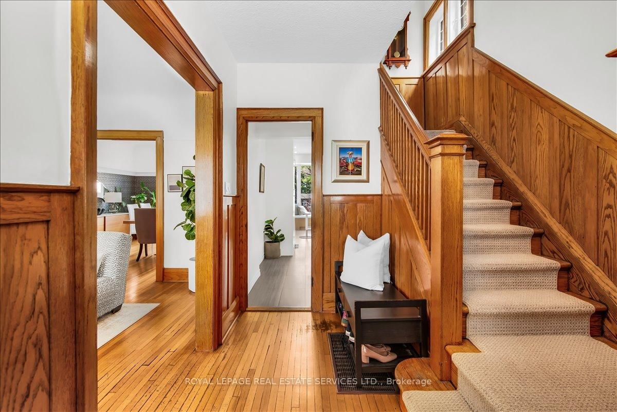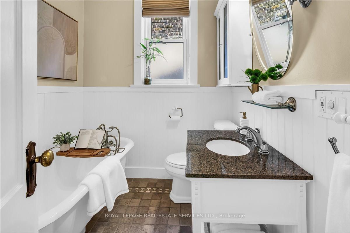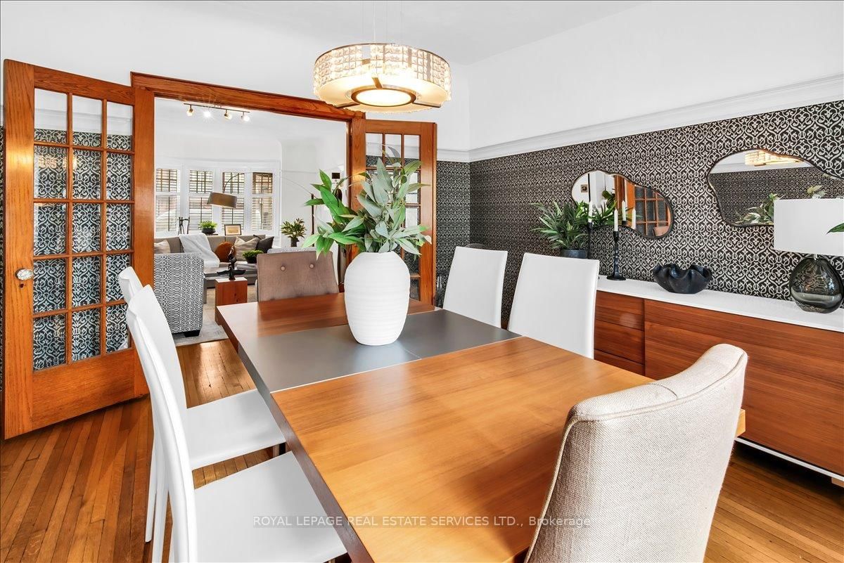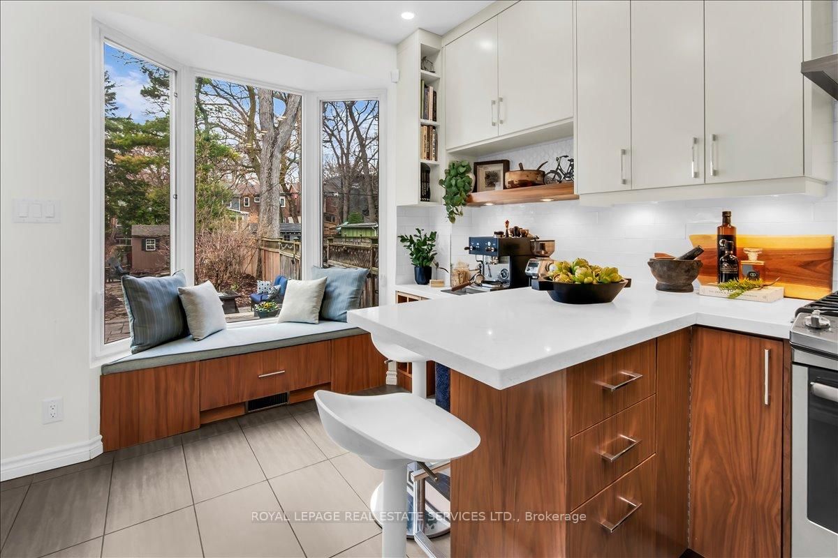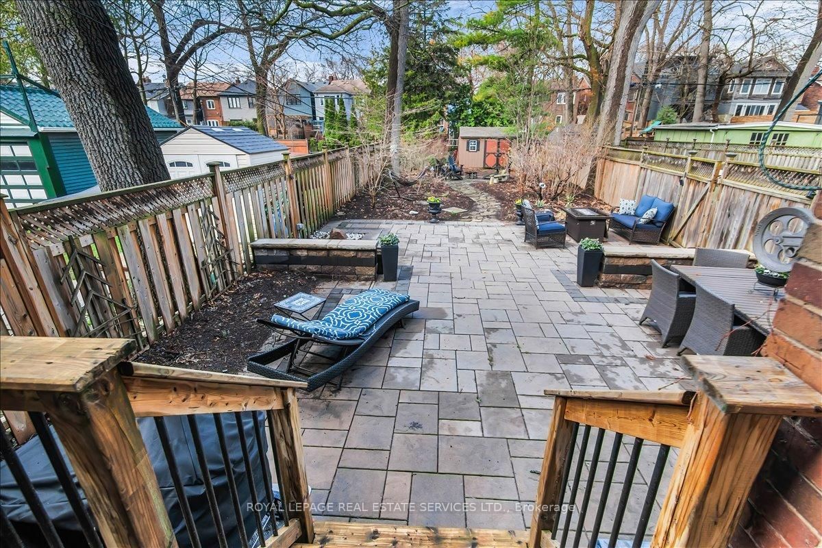 Welcome to one of Bloor West Village's most sought-after streets, where timeless charm meets modern comfort in this exceptional family home. The 2-Storey on 288 Durie Street has 4 bedrooms, 2 bathrooms, and is located on a 145 x 27.67 ft lot in the community of Runnymede-Bloor West Village . A spacious foyer sets the tone, leading into a bright and inviting living room featuring a cozy gas fireplace and a stunning bay window. The formal dining room overlooks the beautifully landscaped backyard-perfect for entertaining. The updated gourmet kitchen boasts stainless steel appliances, quartz countertops, and a sun-filled breakfast area with a bay window and walk-out to the patio and garden. This home is rich in character, offering extra-high ceilings, exquisite wood trim, original stained-glass accents, and designer lighting throughout. Upstairs, the primary bedroom is a serene retreat with hardwood floors, a large picture window, and elegant plantation shutters. Three additional generously sized bedrooms share a stylish, spa-inspired bathroom complete with a vintage clawfoot tub. The finished lower level features a high-ceiling recreation room with an electric fireplace, plus a luxurious 4-piece bathroom with a jacuzzi tub and separate steam shower-ideal for relaxation. Step outside to enjoy a private 145-ft deep fenced yard with a low-maintenance perennial garden, stone patio, deck off the kitchen, and a large storage shed. The charming front porch is perfect for your morning coffee. All of this just steps from the subway, top-rated schools, High Park, and the vibrant shops and cafés along Bloor Street. A rare opportunity to own a 4-bedroom home in this highly coveted neighbourhood.