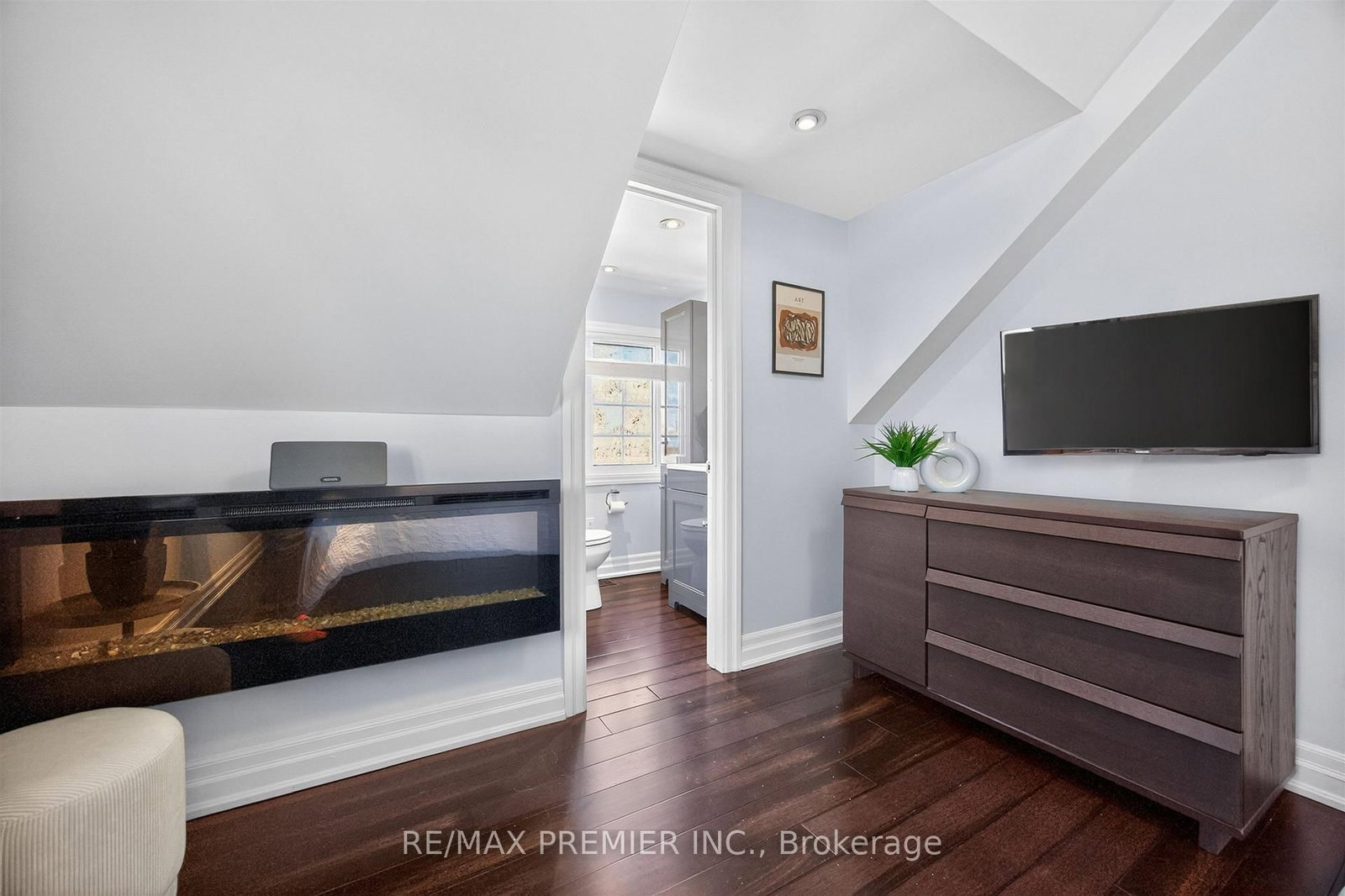 • Living Room: hardwood floor, Open Concept, Electric Fireplace