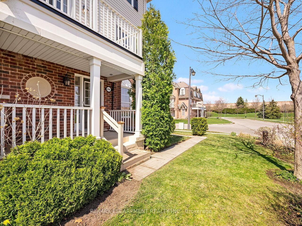 Welcome to this stunning Freehold Townhome, ideally situated in the highly sought-after Hawthorne Village by the Escarpment. The 3-Storey on 656 Frank Place has 2 bedrooms, 3 bathrooms, and is located on < .50 acres in the community of Harrison . This premium end unit fronts directly onto Speyer Park, offering beautiful views and added privacy. Featuring 2 spacious bedrooms, plus a versatile den (ideal as a home office or potential 3rd bedroom) and 3 bathrooms. This home offers a functional and stylish layout for modern living. The upgraded kitchen showcases granite countertops, an undermount sink, mosaic backsplash, and a breakfast bar, seamlessly flowing into the open-concept, large living and dining areas-perfect for entertaining. Walk out to your private balcony with gas BBQ hookup and enjoy serene park views. Upstairs, the generous primary bedroom includes a walk-in closet and an ensuite with glass shower enclosure. Additional highlights include a bright foyer with tile flooring, oak staircase, inside access to the garage, and ample natural light throughout. Recent updates provide peace of mind, including Roof (2024), A/C (2019), Hot Water Heater & Water Softener Both Owned(2025), & Water Filter Owned (2025). Conveniently located within walking distance to parks, schools, shopping, and recreation. This townhome offers the perfect blend of comfort, style, and convenience, ready to welcome you home.