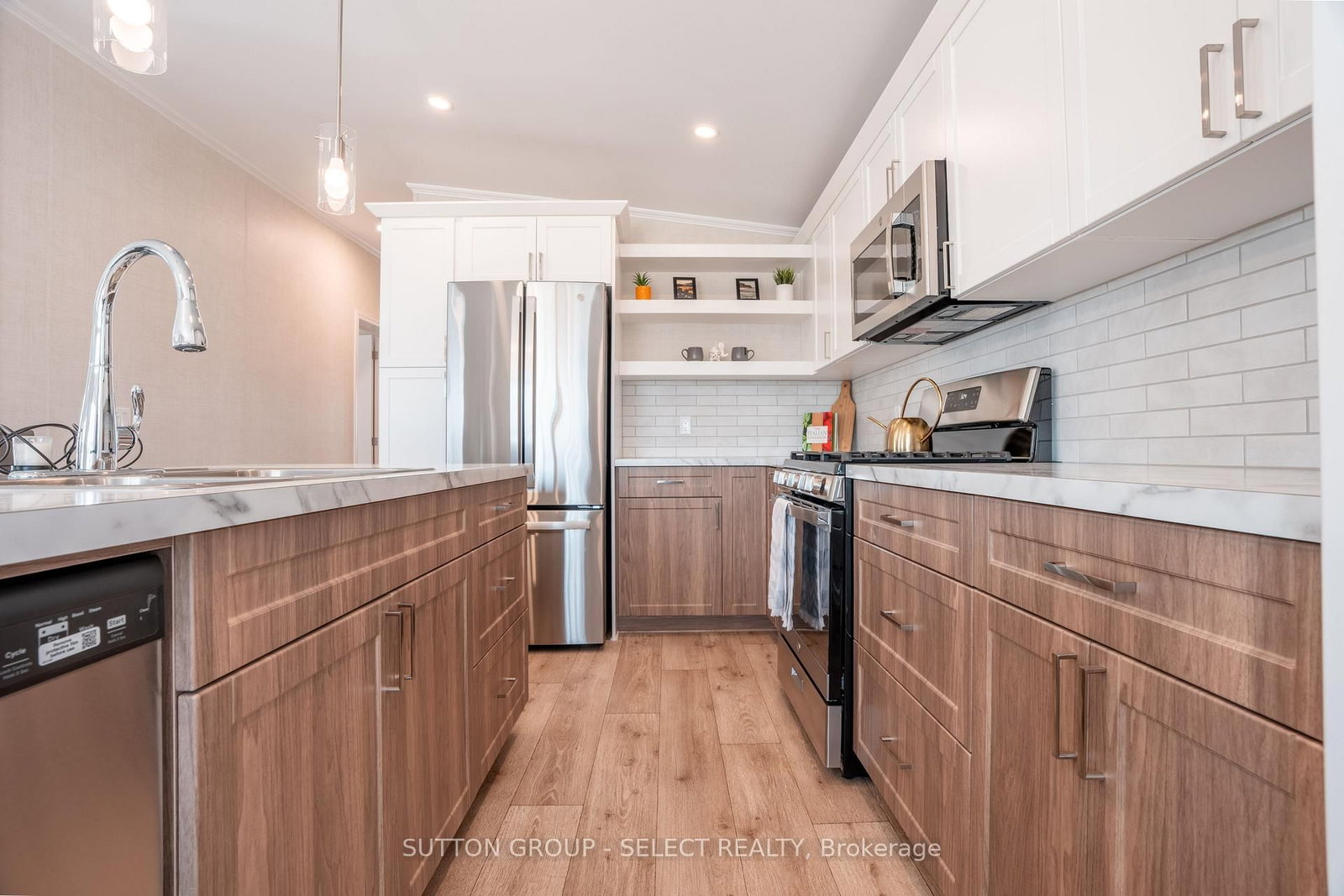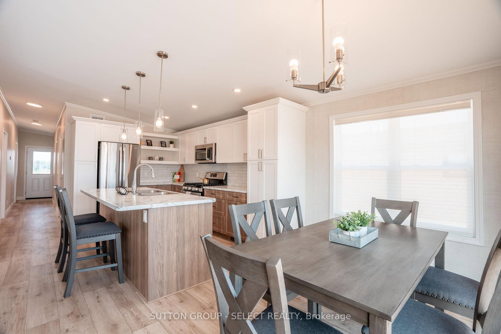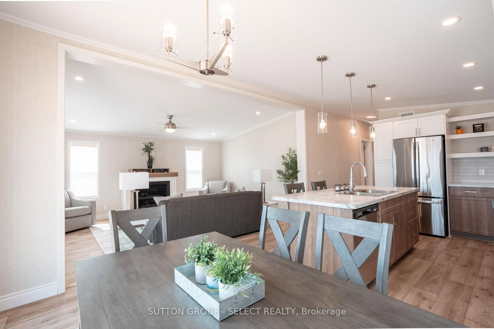 Experience the perfect fusion of style, comfort, and simplicity in this newly constructed Canadian-built Northlander modular home, ideally located in The Village - a peaceful, well-maintained community just east of Listowel. The Bungalow on Lot 8-215 Carolynn Way has 2 bedrooms, 2 bathrooms, and is located on a 100 x 50 ft lot in the community of Elma . This thoughtfully designed 2-bedroom, 2-bathroom home offers a welcoming layout with high-end features and modern convenience. Begin at the inviting 13' x 5' covered front porch, ideal for relaxing and enjoying the community's serene setting. Step inside to a bright, open-concept interior where the kitchen, dining, and living areas flow seamlessly, highlighted by large windows, patio doors, and contemporary lighting. The stylish kitchen is equipped with elegant two-tone white/urban cabinetry, stainless steel GE appliances, a ceramic tile backsplash, and a functional island with seating, perfect for casual dining or entertaining guests.The spacious living room is anchored by a built-in natural gas fireplace, providing warmth and ambiance during cooler months. The primary bedroom retreat features a generous 6' x 5' walk-in closet and a private 3-piece ensuite bath. A second bedroom and additional 3-piece guest bathroom provide plenty of space for visiting family or a home office setup. Paved streets and walking trails along the perimeter of the community promote a healthy lifestyle for residents, who also benefit from a welcoming clubhouse offering social events and a sense of connection.With shopping, dining, curling, golf, and other amenities just minutes away in Listowel, this community provides a lifestyle that is as busy or as easy going as desired, in a friendly and relaxing setting. NOTE: Land is leased ($575/month). Modular home is owned-a mortgage specialist can be available, if needed. Skirting and grass to be completed in the near future in this newly developed area.