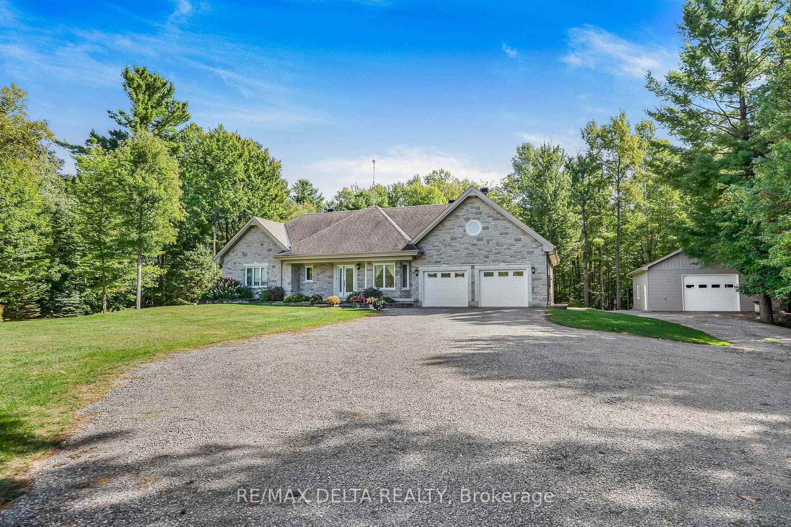 Welcome to this beautifully designed, spacious custom-built all-stone bungalow set on just over 20 scenic wooded acres in Clarence-Rockland. The Bungalow on 740 Vinette Road has 3 bedrooms, 3 bathrooms, and is located on a 1471.82 x 329.52 ft lot in the community of Clarence/Rockland Twp . Built in 2008 and impeccably maintained, this 3-bedroom home blends modern comfort with timeless country charm. Step inside to a spacious foyer leading to a bright kitchen and dining area ideal for everyday living and entertaining. The superb kitchen boasts abundant custom cabinetry and counter space, while the dining area opens into a sun-filled 4-season room, perfect for morning coffee or summer BBQs. The living room, bedrooms, and hallway feature gleaming hardwood floors. The primary bedroom includes a generous walk-in closet and a 3-piece en-suite with a soaker tub, while the main bathroom offers a beautifully finished 4-piece layout with enclosed tub and large vanity. A convenient laundry area completes the main level. Enjoy direct access from the home to the attached double garage. The fully finished lower level provides incredible versatility with a spacious recreation room with wood stove, a playroom, a den, a 2-piece bath, and abundant storage. With stair access to both the garage and backyard, this level offers excellent potential for family living and entertaining. Outdoors, the property features beautiful landscaping, large composite rear decking, a massive heated garage/workshop with plenty of LED lighting, and plenty of trails in the woods offering a peaceful and private retreat. Whether you are dreaming of gardening, outdoor activities, or simply enjoying nature, all of this is just minutes from Rockland's amenities. Bell Fibe internet is available. Don't miss the opportunity to own this exceptional property. Book your private viewing today!