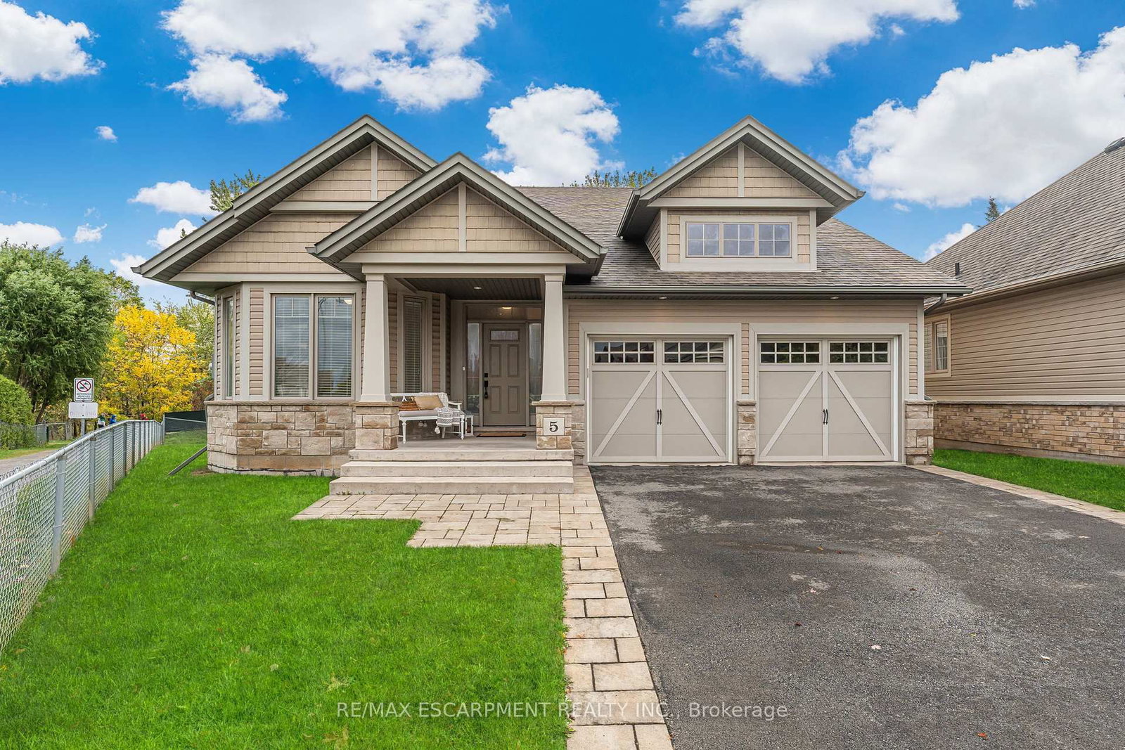 Welcome to this beautiful home in Smithville's sought-after Brookside on the Twenty community. The Bungalow on 5 Oakdale Boulevard has 2 bedrooms, 2 bathrooms, and is located on a 123.45 x 34.74 ft lot in the community of Smithville . Built in 2014 by Phelps Homes, this Craftsman-style bungalow offers 1532 square feet of elegant one-floor living. Inside, 9' ceilings enhance the open-concept layout featuring engineered hardwood in the living and dining areas. The spacious kitchen includes a large island with seating and seamlessly flows into the living space. The primary suite impresses with a massive walk-in closet and a 3-piece ensuite with a walk-in glass shower. A main-floor laundry/mudroom adds convenience. Enjoy year-round comfort with a whole-home Generac generator. The private pie-shaped lot offers a lush backyard with ample grass space. Steps from the scenic South Creek Trail along Twenty Mile Creek, this home offers peaceful, low-maintenance living in a quiet, friendly neighbourhood. Complete with a double garage, this bungalow is ideal for downsizers or retirees seeking comfort, style, and serenity.