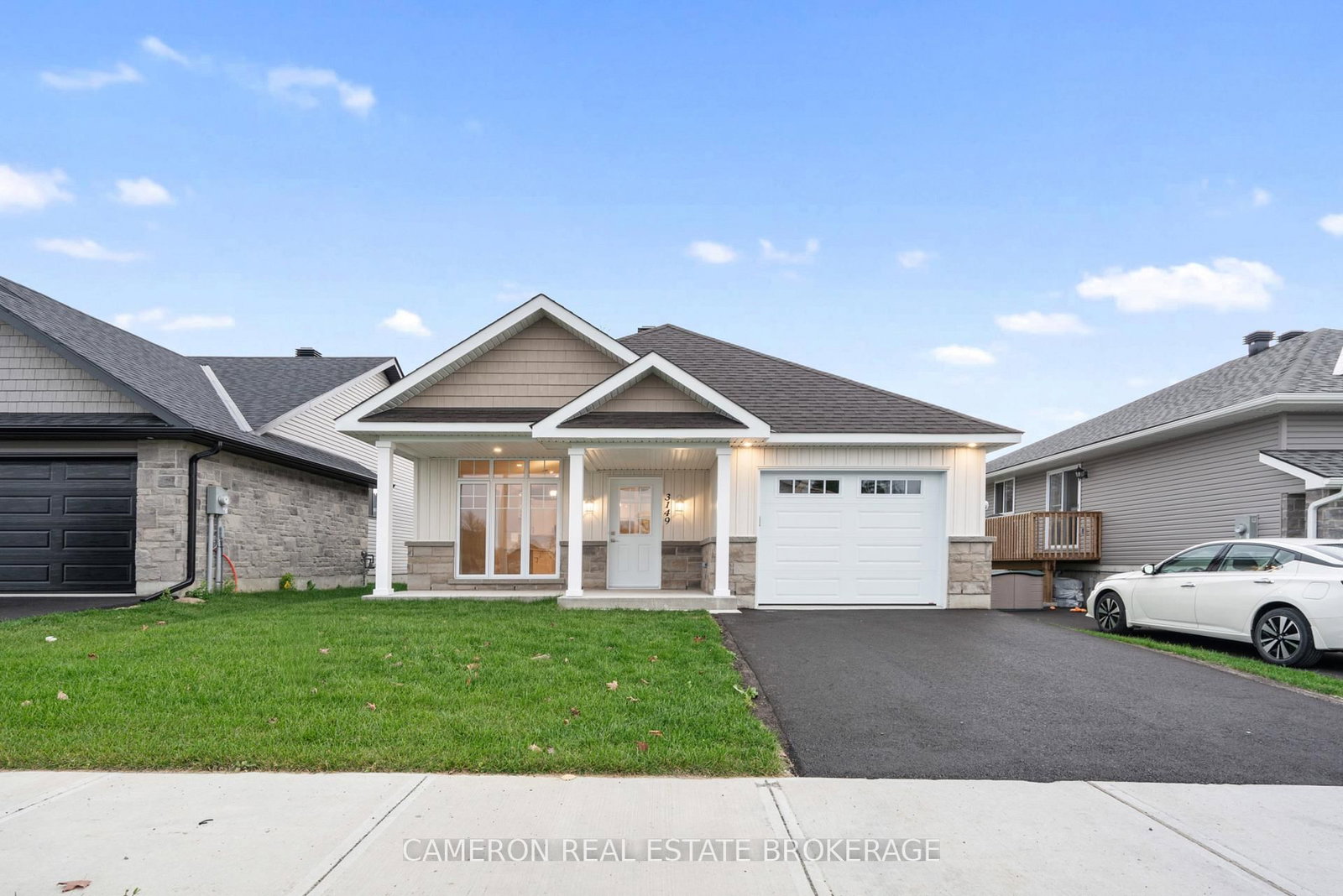 SIMPLIFIED LIVING AT IT'S BEST! Check out this brand new ground level entry bungalow with front + rear covered patio's and an attached garage situated in the Northwoods Forest Subdivision + built by one of the City's Premier Builders, J. The Bungalow on 3149 Mauricy Street has 2 bedrooms, 2 bathrooms, and is located on a 107 x 39 ft lot in the community of Cornwall .F. Markell Homes. This 1125sq.ft. slab on grade home is fully completed and boasts an open concept layout with both 9' + vaulted ceilings, a stunning kitchen with an eat-in island + gorgeous quartz countertops, there's a living room with loads of western exposure, a 2pc guest bathroom + a 3pc ensuite, LED lighting, transitionless luxury plank vinyl flooring throughout, a primary + second bedroom or office providing access to the covered rear yard patio, 2 walk-in closets and of course a separate laundry room in the mud room off the garage. Includes a 7 Year Tarion New Home Warranty for peace of mind and the driveway has been paved + the yard has been fully sodded. Available for immediate possession should a buyer require. Actual usable floor space may vary from stated floor area due to construction. The Seller requires 2 full business days to deal with any/all offer(s)