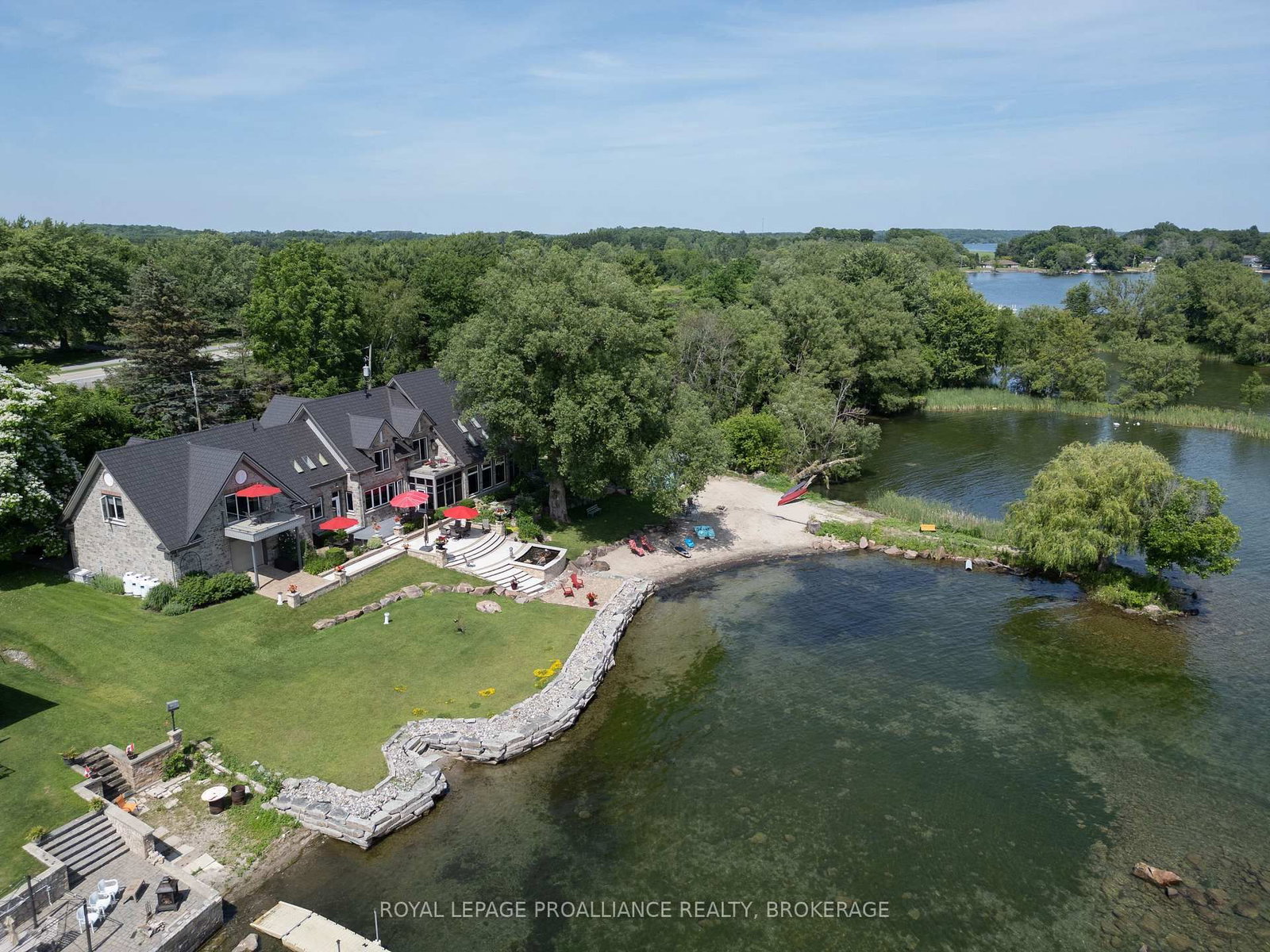 Welcome to 147-1000 Islands Parkway-a rare chance to make riverside living your reality. The 2-Storey on 147 1000 Island Pkwy has 4 bedrooms, 4 bathrooms, and is located on a 151.05 x 253 ft lot in the community of Rear of Leeds - Lansdowne Twp . Just 2 km from town and nestled along 70 km of scenic biking trails, this custom-designed home is your private gateway to the best of nature, convenience, and luxury. Set on the breathtaking St. Lawrence River with over 400 feet of pristine waterfront and your very own private beach, this property is the perfect setting for tranquil living or unforgettable gatherings. Inside, more than 6,000 sq ft of thoughtfully crafted space await, featuring 4 spacious bedrooms and 4 bathrooms-designed with both relaxation and entertaining in mind. Wake up in your expansive primary suite and step into a charming screened-in porch to start the day with a dose of peace and river breeze. At the heart of the home, the bright open-concept kitchen is a dream for any chef, complete with a walk-in pantry and direct access to a generous deck-perfect for summer meals with a view. The home's exceptional indoor-outdoor flow continues with three inviting outdoor patios, offering serene spaces to unwind, entertain, or simply soak in the landscape. A 3-car garage and ample storage round out this one-of-a-kind offering. Whether you're hosting friends, raising a family, or escaping the hustle, this riverside haven on one of the most sought-after stretches of the 1000 Islands Parkway is ready to welcome you home.