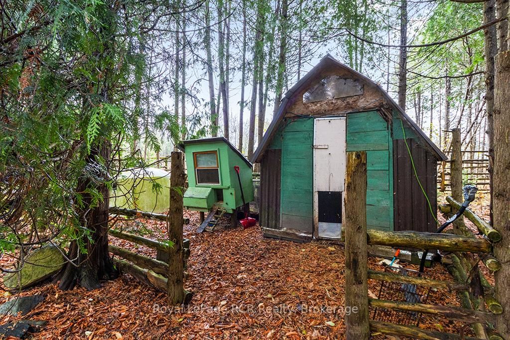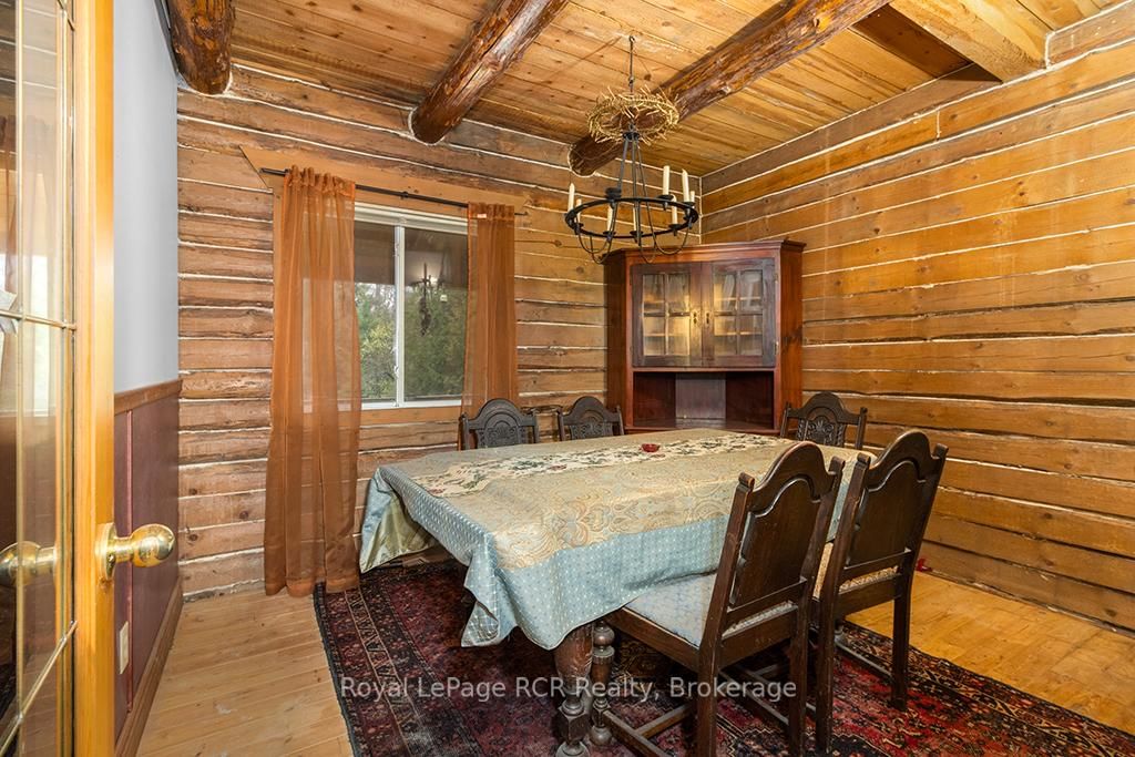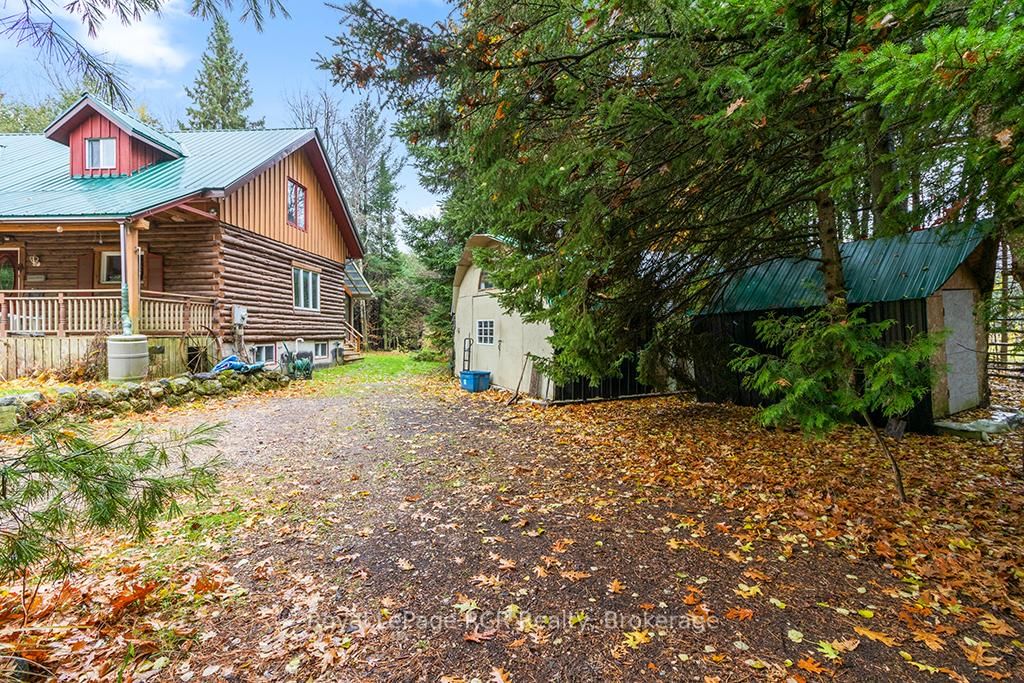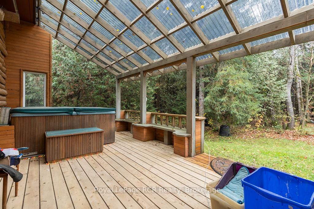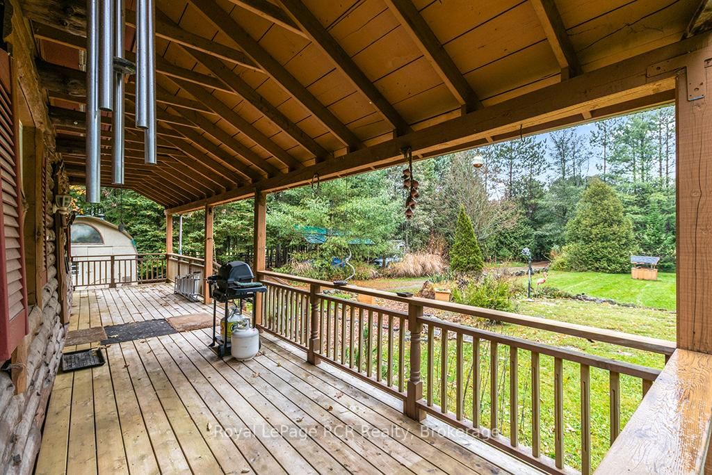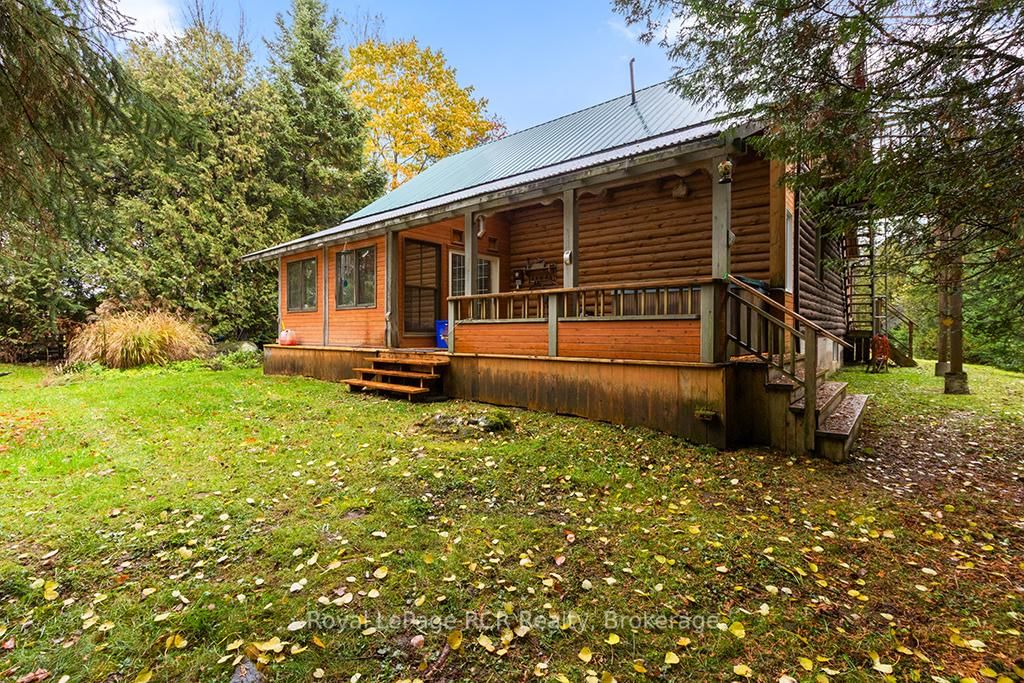 Charming Log Home on Over an Acre - Comfort, Functionality & Country Charm. The 1 1/2 Storey on 132 Crawford Road has 3 bedrooms, 1 bathrooms, and is located on a 413.5 x 125 ft lot in the community of Chatsworth . Whether you're searching for a weekend escape or a year-round retreat, this inviting log home could be the one. Nestled on just over an acre, the property offers privacy, warmth, and easy maintenance. Custom built in 2004, the home features an open-concept design with a rich wood interior and a mix of ash and pine flooring. The kitchen includes oak cabinetry, an island, and a breakfast bar that flows into the dining and living areas-perfect for gathering and entertaining. Two bedrooms and a 4-piece bath complete the main floor, while the upper loft provides a cozy third bedroom with its own private balcony. At the back of the home, you'll find a bright three-season sunroom (10' x 14') with a new UV-protected roof installed in September 2025, as well as a covered porch (11' x 19') equipped with a relaxing hot tub. The lower level is nearly finished, featuring a family room, games area with infrared sauna, laundry space, generous storage, and a rough-in for a future full bath. Recent updates include a metal roof (2023), high-efficiency water softener, propane furnace (2017). There is a 200-amp electrical service with generator backup panel. Outdoors, enjoy cedar decks, three storage sheds, and a detached 16' x 28' insulated workshop with hydro and woodstove heat-ideal for hobbies or projects. The fully fenced yard is perfect for pets and sustainability-minded buyers, offering space for raising some chickens, vegetable gardens, and established edible perennials. Located on a quiet road just off Highway 10, this property offers easy access north to Owen Sound and south to Markdale, with convenient proximity to schools, shopping, and the hospital. The nearby rail trail provides endless opportunities for walking, cycling, and ATVing or snowmobiling. A beautifully maintained log home offering comfort, character, and quiet country living.