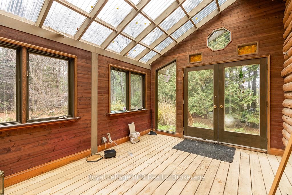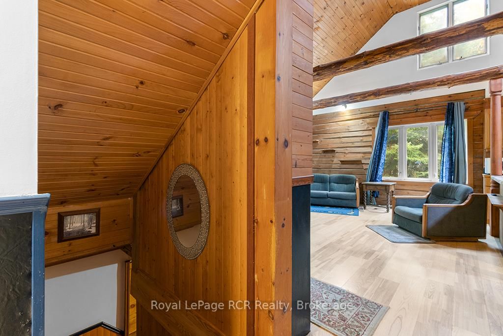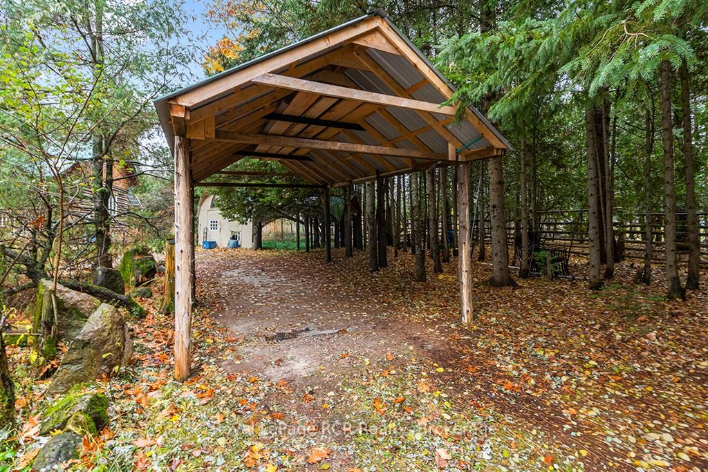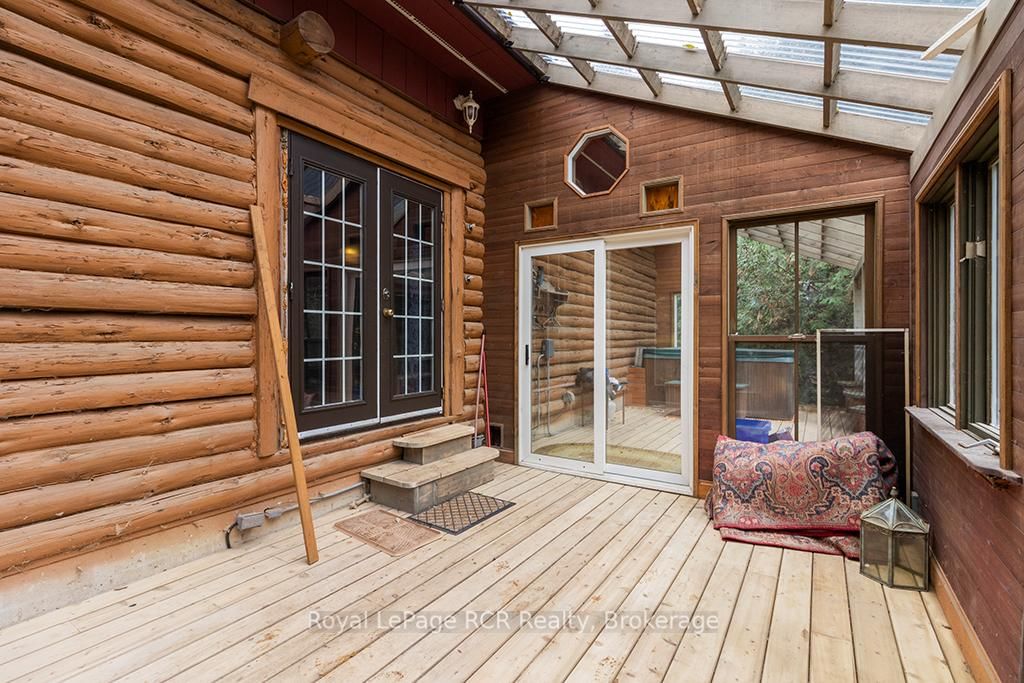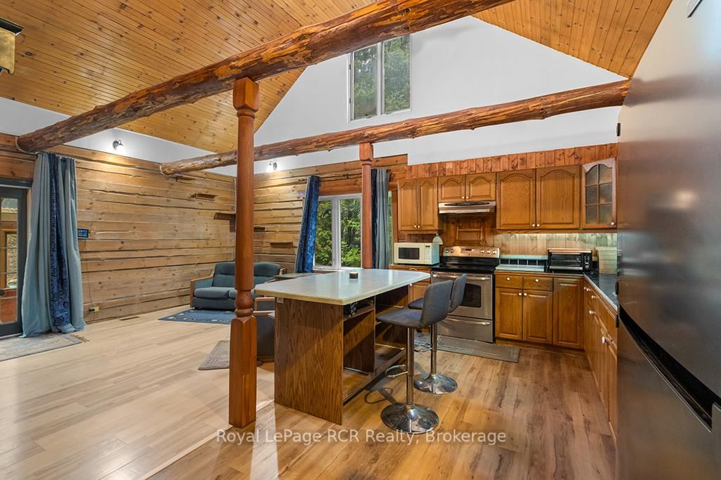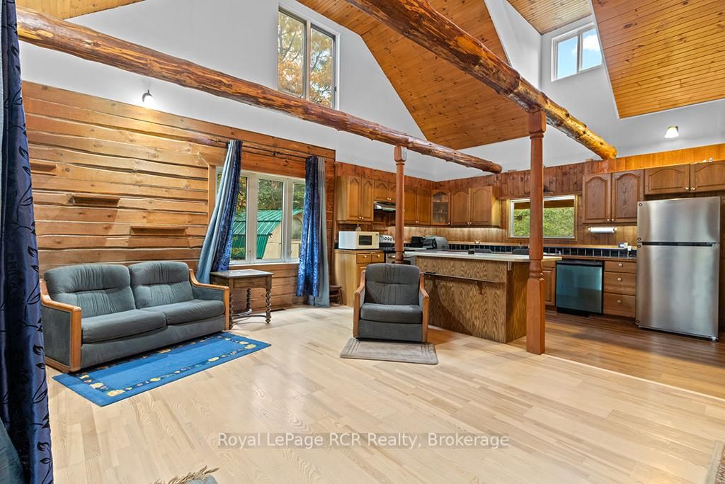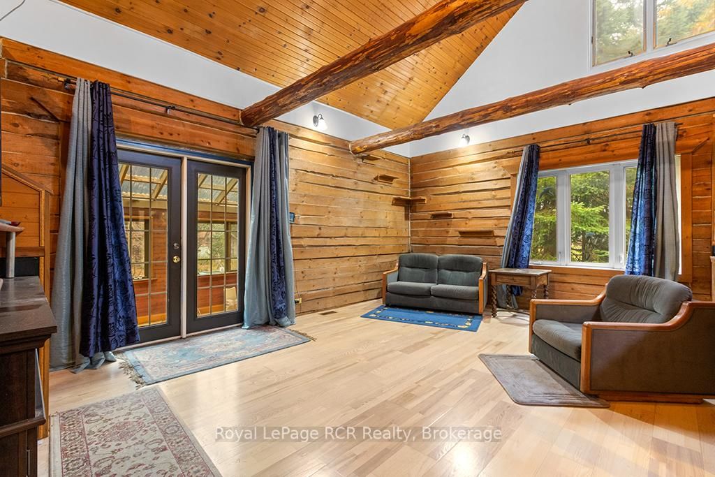 Charming Log Home on Over an Acre - Comfort, Functionality & Country Charm. The 1 1/2 Storey on 132 Crawford Road has 3 bedrooms, 1 bathrooms, and is located on a 413.5 x 125 ft lot in the community of Chatsworth . Whether you're searching for a weekend escape or a year-round retreat, this inviting log home could be the one. Nestled on just over an acre, the property offers privacy, warmth, and easy maintenance. Custom built in 2004, the home features an open-concept design with a rich wood interior and a mix of ash and pine flooring. The kitchen includes oak cabinetry, an island, and a breakfast bar that flows into the dining and living areas-perfect for gathering and entertaining. Two bedrooms and a 4-piece bath complete the main floor, while the upper loft provides a cozy third bedroom with its own private balcony. At the back of the home, you'll find a bright three-season sunroom (10' x 14') with a new UV-protected roof installed in September 2025, as well as a covered porch (11' x 19') equipped with a relaxing hot tub. The lower level is nearly finished, featuring a family room, games area with infrared sauna, laundry space, generous storage, and a rough-in for a future full bath. Recent updates include a metal roof (2023), high-efficiency water softener, propane furnace (2017). There is a 200-amp electrical service with generator backup panel. Outdoors, enjoy cedar decks, three storage sheds, and a detached 16' x 28' insulated workshop with hydro and woodstove heat-ideal for hobbies or projects. The fully fenced yard is perfect for pets and sustainability-minded buyers, offering space for raising some chickens, vegetable gardens, and established edible perennials. Located on a quiet road just off Highway 10, this property offers easy access north to Owen Sound and south to Markdale, with convenient proximity to schools, shopping, and the hospital. The nearby rail trail provides endless opportunities for walking, cycling, and ATVing or snowmobiling. A beautifully maintained log home offering comfort, character, and quiet country living.