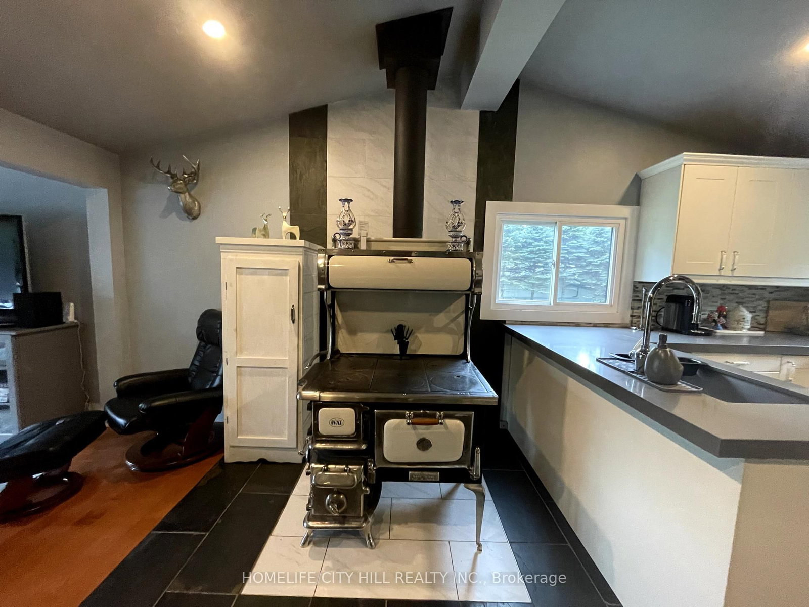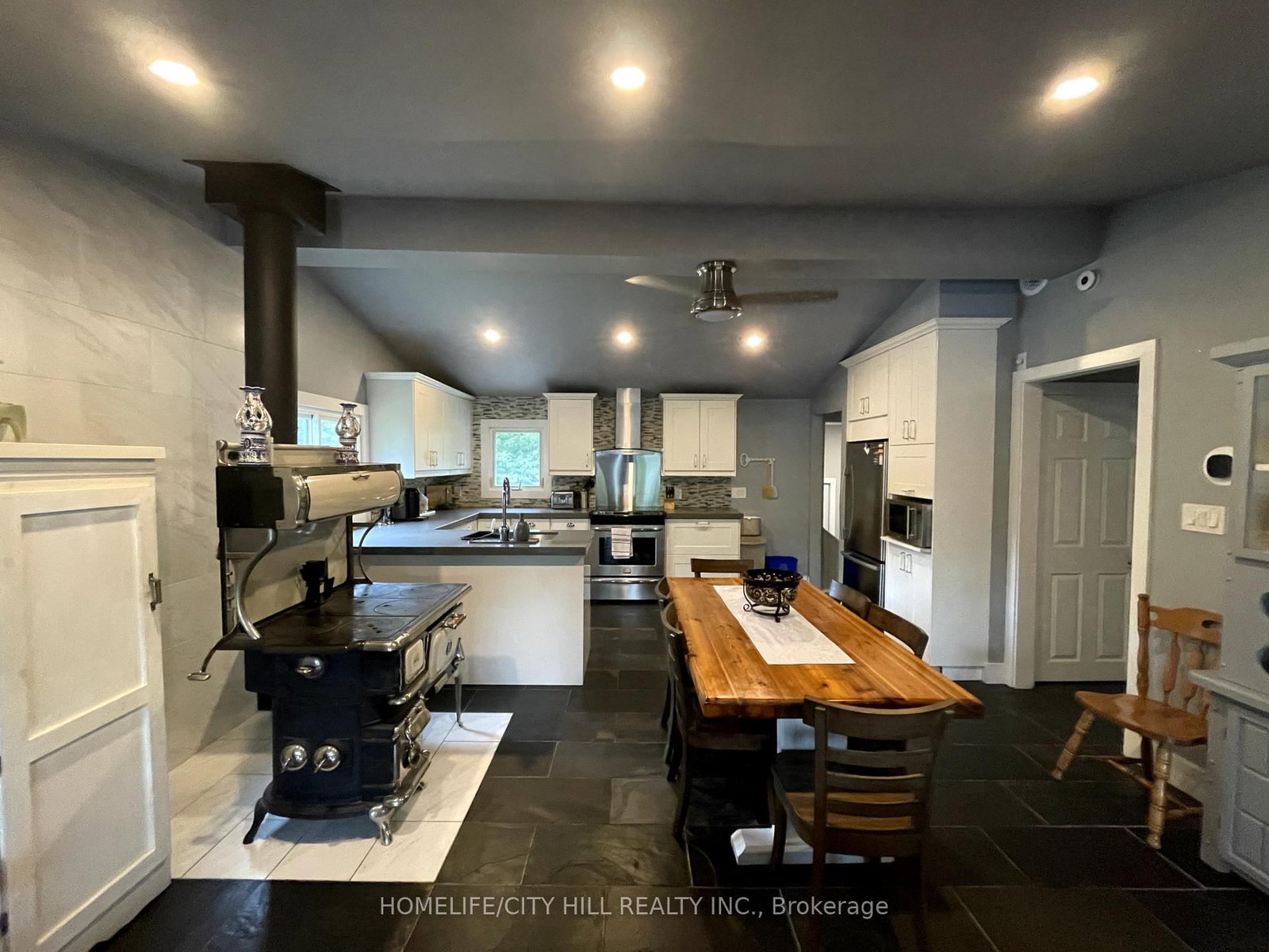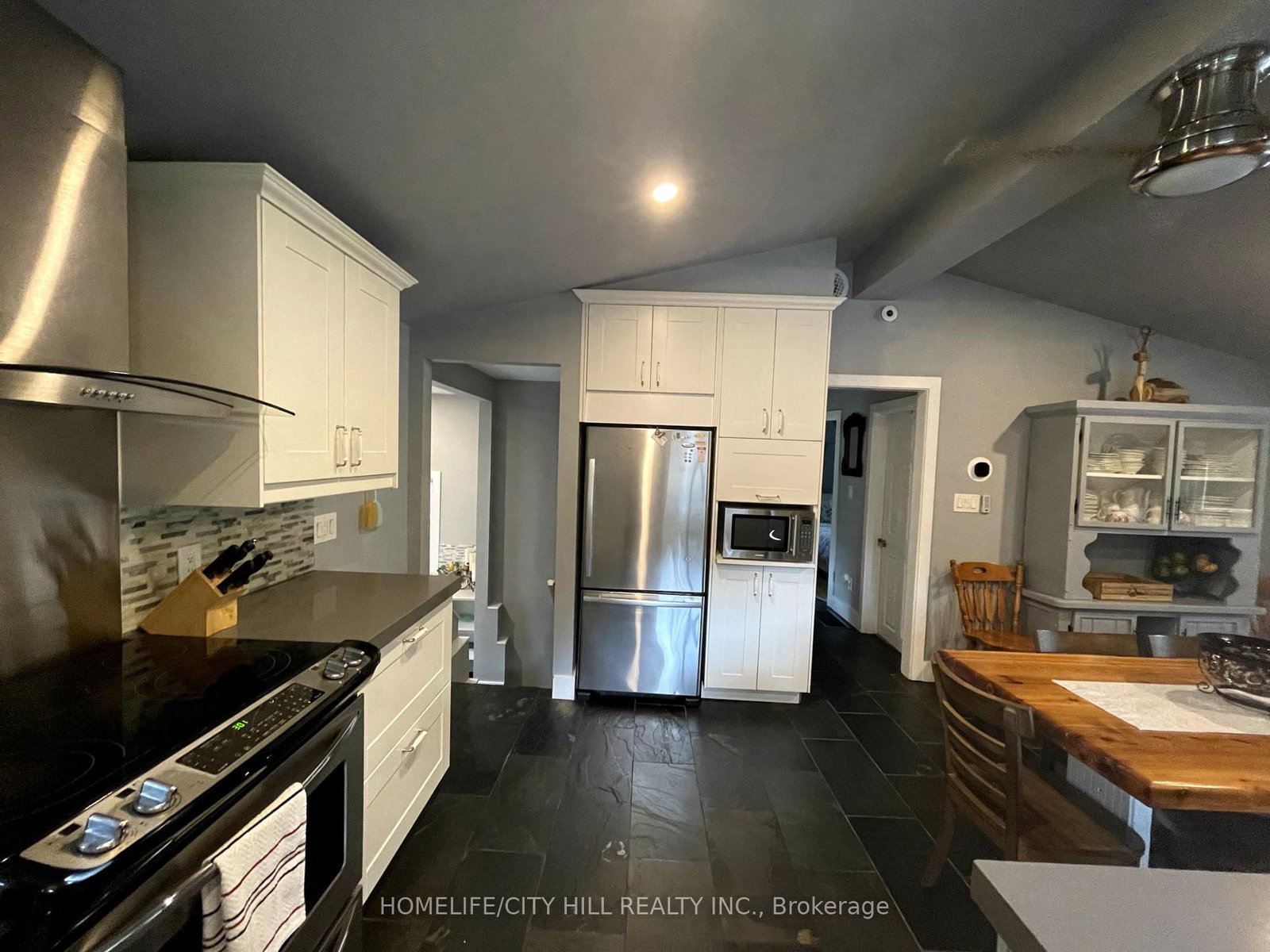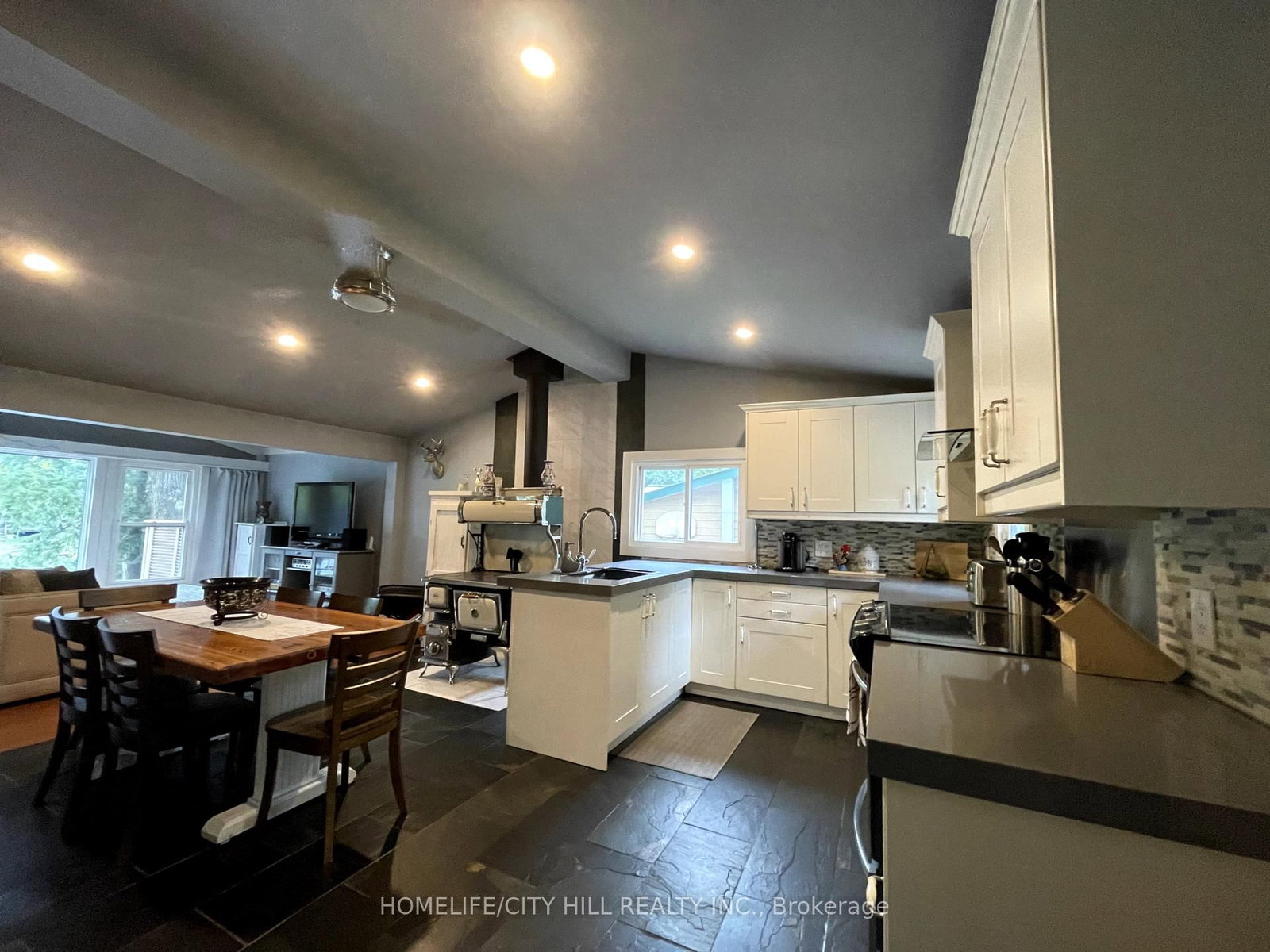 • Kitchen: Slate Flooring, Quartz Counter, Open Concept