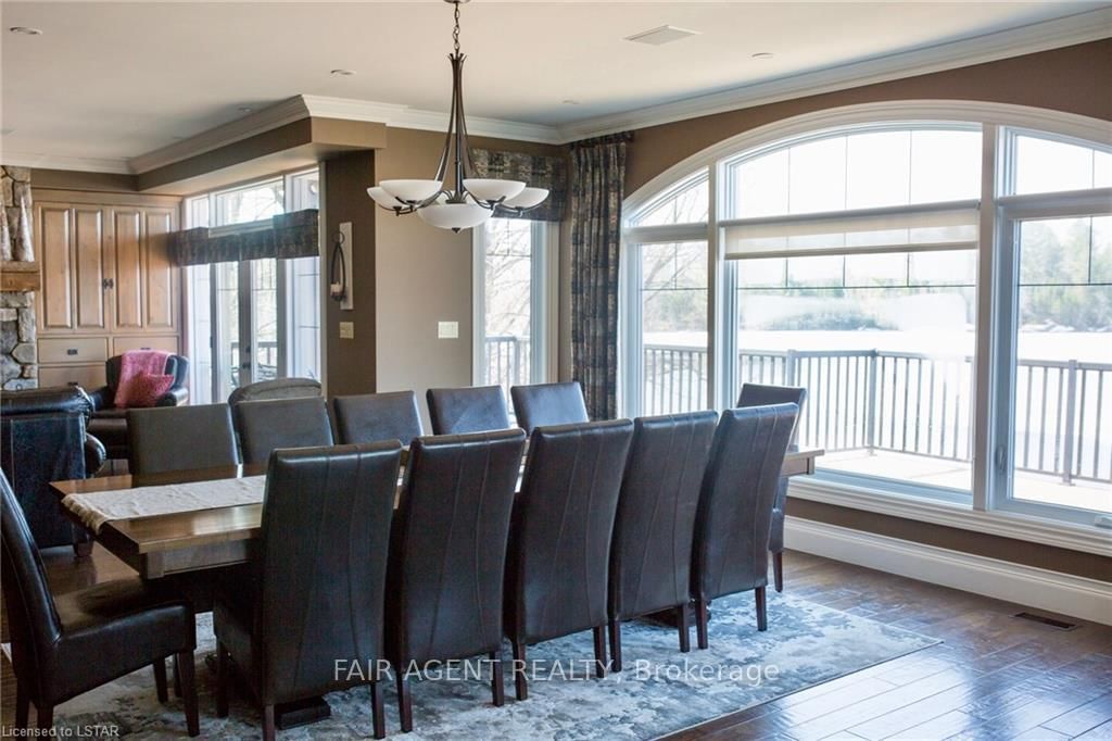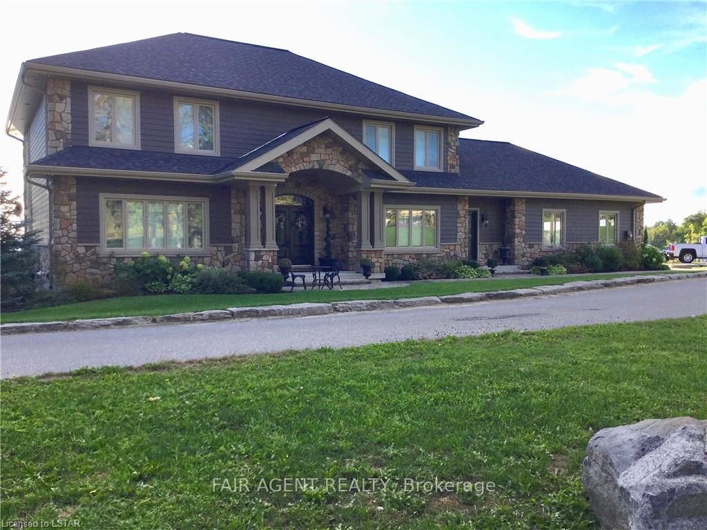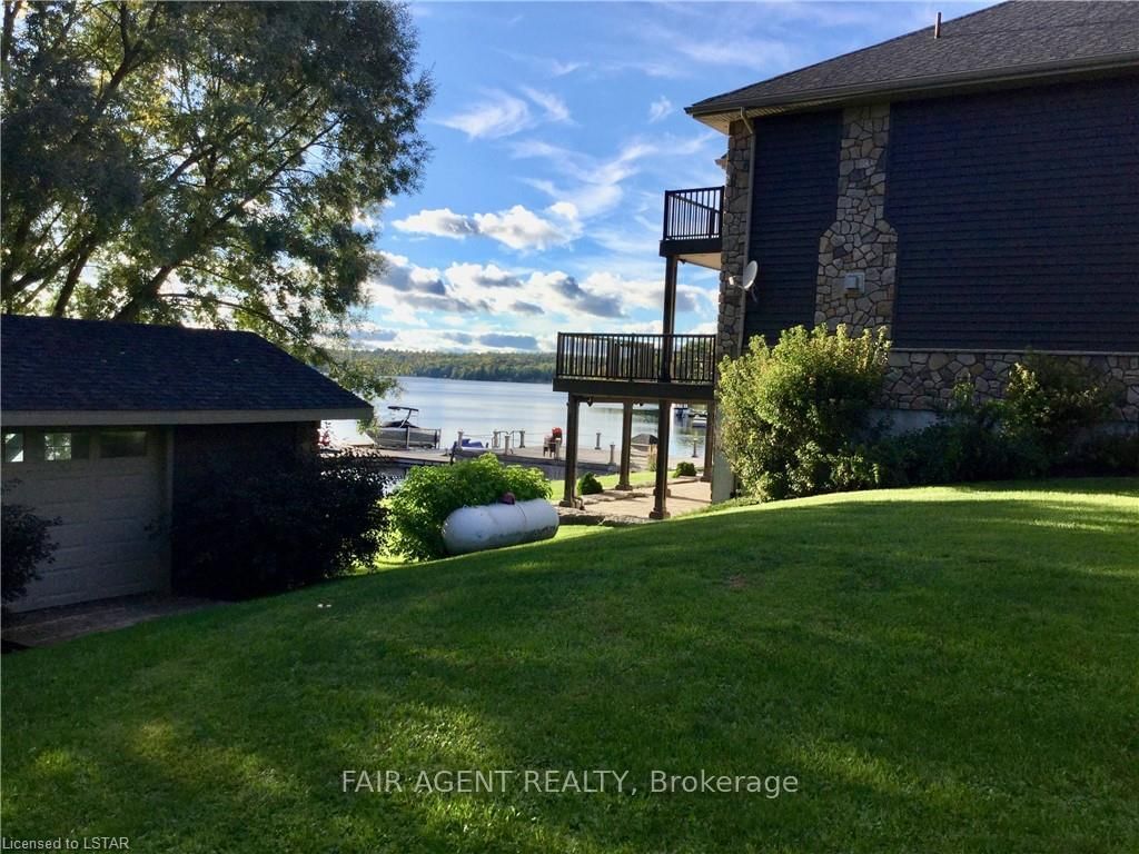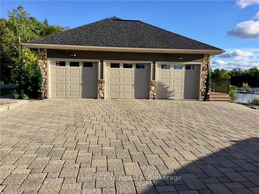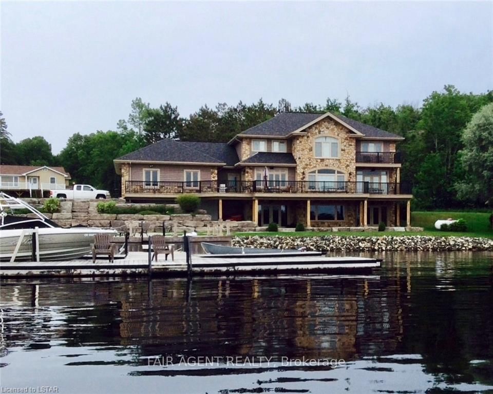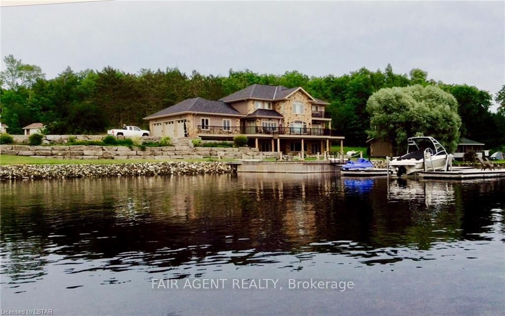 Located in the tranquil northern reaches of Ontario, this waterfront masterpiece in Port Loring offers approx 4,000 square feet of thoughtfully designed living space on 1. The 2-Storey on 10 MILL Road has 4 bedrooms, 5 bathrooms, and is located on a 145 x 381.99 ft loton .50-1.99 acres in the community of Port Loring .41 acres, featuring an impressive 400 feet of shoreline along Wilson Lake. Fully furnished and crafted with precision, this custom-built home presents a kitchen that will inspire any chef, complete with expansive granite countertops, a central island, and premium stainless steel appliances. The home includes four generously sized bedrooms, highlighted by a luxurious primary suite with a spa-like ensuite, featuring a walk-in shower, a jacuzzi tub, and a custom walk-in closet by Toronto's Organized Interiors. A private office with bespoke wood cabinetry caters to remote work needs, while a full walk-out basement with heated floors remains a blank canvas for your vision. Outdoors, the property truly shines with a large pier and dock system that accommodates up to six boats, a three-bay garage with heated tile flooring, and an interlocking brick driveway. Additional features, such as a full irrigation system and an automatic power backup generator, provide unparalleled convenience. Whether you're enjoying the stunning sunsets, immaculate landscaping, or the area's peaceful environment, this property delivers a seamless blend of luxury, comfort, and natural beauty. Ideal for creating memories with family and friends, its a retreat like no other.