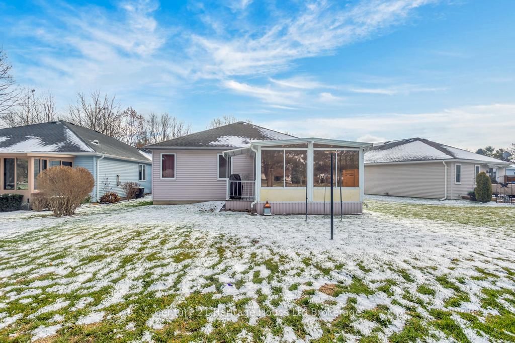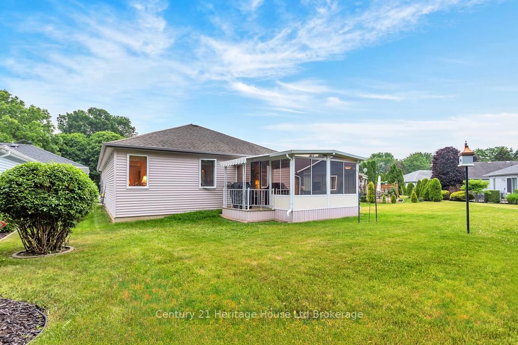 This one-of-a-kind, one owner home on an exceptional pie shaped lot is located on a quiet cul-de-sac in the adult active community of Hickory Hills. The Bungalow on 14 McDonald Court has 2 bedrooms, 3 bathrooms, and is located on a 90 x 32.74 ft lot in the community of Tillsonburg . The home boasts a large 3 seasons sun room that looks out onto the large lot with an inground sprinkler system and a beautifully manicured parkette. Newer appliances include a 2 year old washer and dryer on pedestals conveniently located in the large main floor laundry room. The oversized single car garage, covered BBQ area with gas hook up, gas fireplace, full basement, brand new flooring (June 2025) and some fresh paint and updates are all added bonuses that bring value to the home. The basement is partially finished with a room currently used as a bedroom as well as a two piece bathroom and there's still loads of room for storage, a work shop/craft area or whatever your heart desires. Walk into the bright and spacious entry way and find a large bedroom at the front of the house. Down the hall you walk into the bright open concept kitchen, dining room and living room. Through the sliding doors off the living room is where you will find the peaceful and private sun room. The sun room is complete with Northstar windows which have a privacy coating as well as two sets of sliding doors. One set of doors takes you to your covered BBQ grilling area while the others lead you outside to the peaceful surrounding of the large lot and treed parkette/greenspace. Unique properties like this one are a rare find so don't miss your chance to make it yours! Current annual Hickory Hills Residents Association fee is $655/yr and buyers must acknowledge one-time transfer fee of $2,000. Membership provides you with access to the Hickory Hills Recreation Centre including outdoor pool, and other amenities. Please note that this community is low density permitting only two occupants per home.