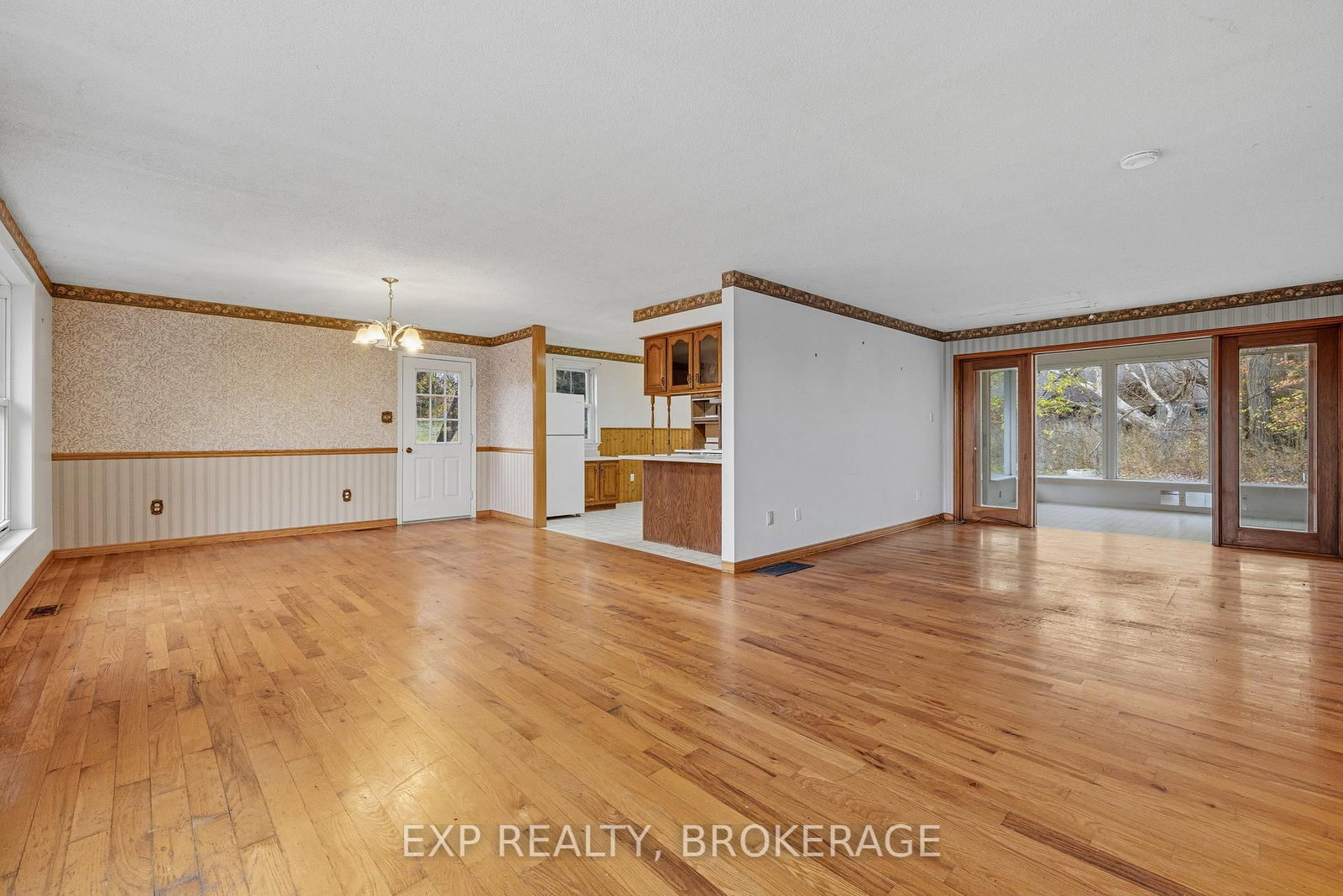Here's a chance to own an affordable property with a million dollar view! Situated on a nicely-treed 1 acre lot just outside Perth Road Village and built into a gentle slope, this home is perfect for someone who sees its potential. The Bungalow on 6392 Perth Road has 2 bedrooms, 1 bathrooms, and is located on a 237.2 x 185.47 ft lot in the community of Frontenac South . The main level is spacious with a large kitchen and open dining/living room combination. The hardwood flooring adds warmth to the main level and the windows provide lots of natural light as well as a view of Little Franklin Lake. In addition, there's a cozy sunroom for relaxing, 2 bedrooms, and a 4-piece bath. The lower level is partially finished and could be transformed into a rec room or additional bedroom(s). The basement also houses the laundry area and utility room and provides plenty of storage space.There is an entrance to the garage from the lower level. The location is convenient, just 20 minutes south to Kingston and 20 minutes north to Westport. This is an estate sale and it is being sold in "as is" condition.