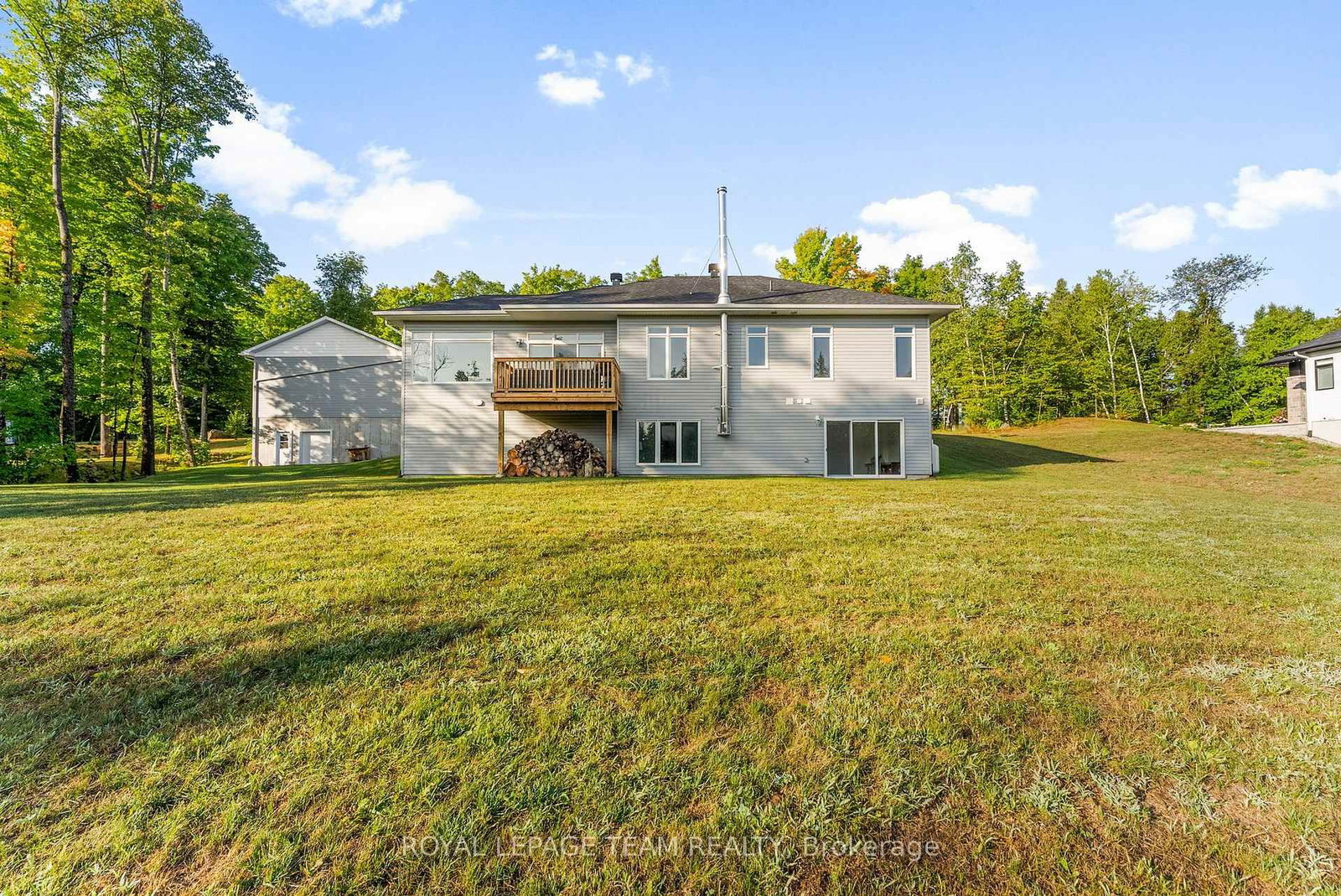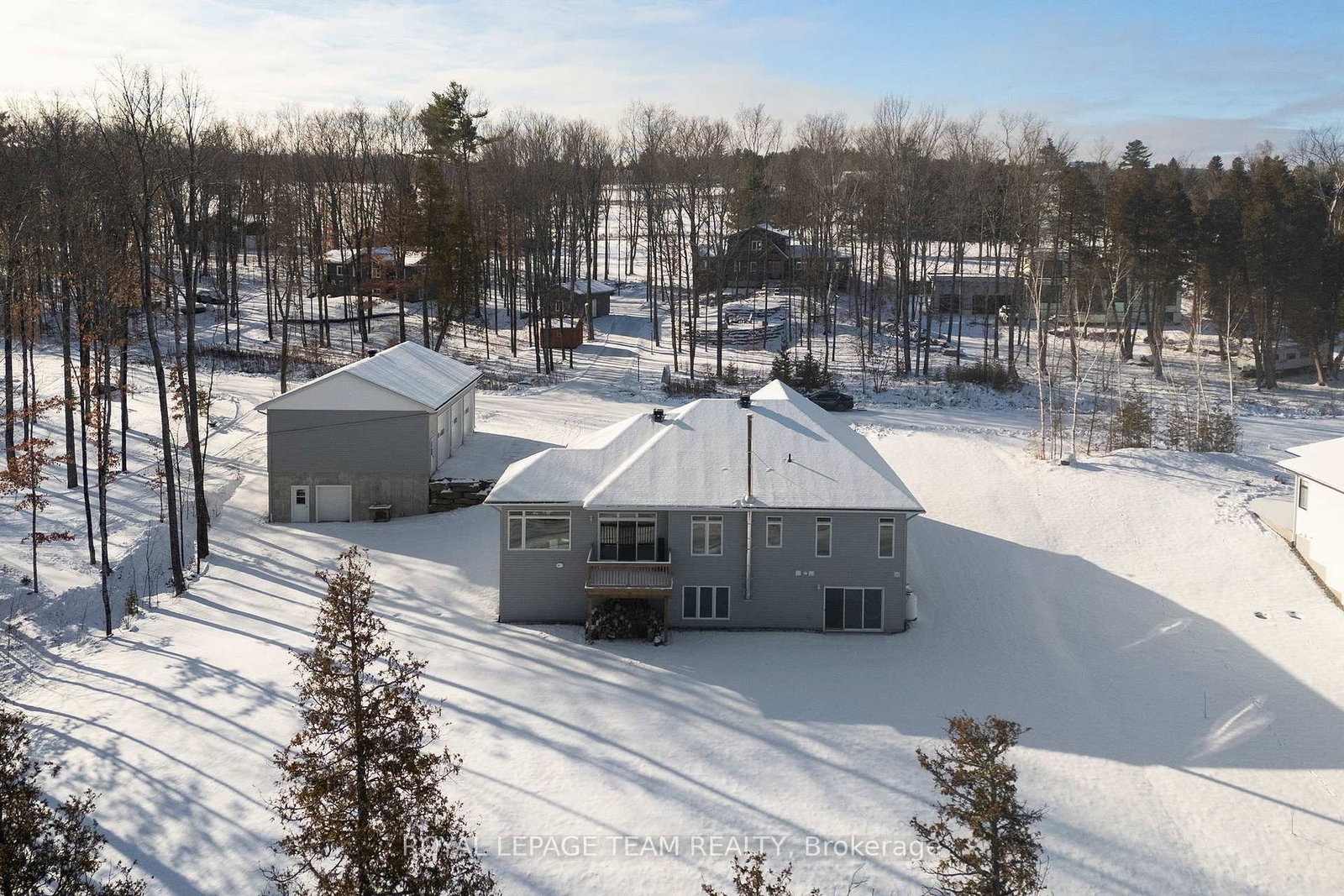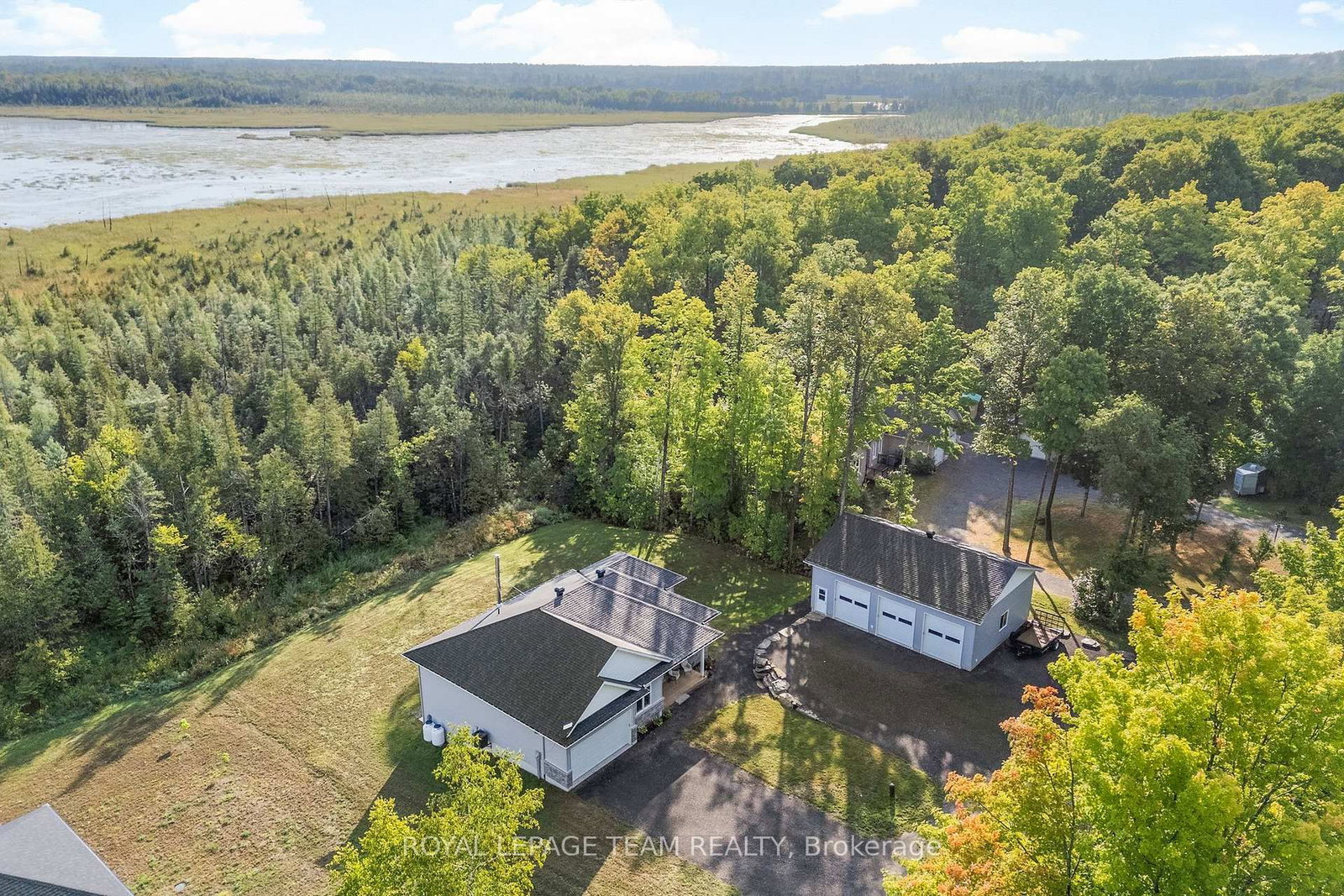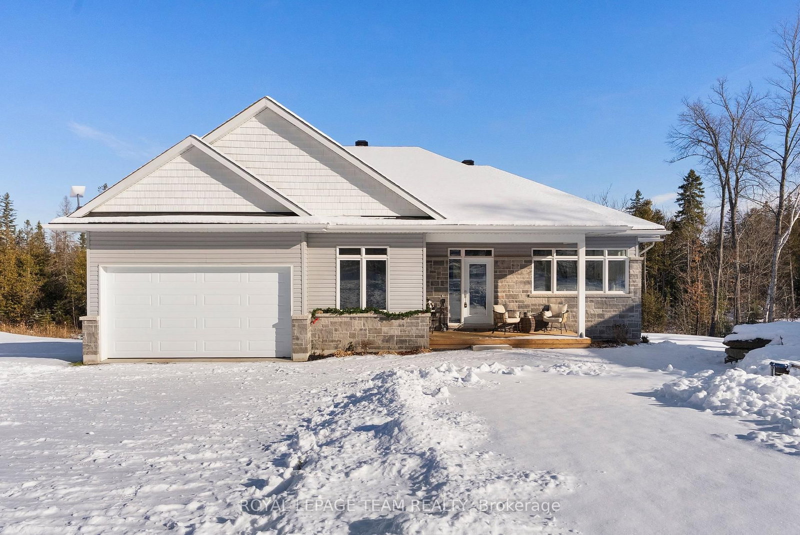 Located in the desirable community of Calabogie, just steps from the Calabogie Highlands Golf Course and a short drive to the Calabogie Motorsports Park, this home is a car enthusiast's dream! This immaculate 3 bed, 2 bath bungalow was built in 2023 by Mackie Homes and features high-end finishes throughout. The Bungalow on 44 Morning Flight Court has 3 bedrooms, 2 bathrooms, and is located on a 246.22 x 131.23 ft lot in the community of Greater Madawaska . The open-concept kitchen and dining area are highlighted by stunning quartz countertops and a floor-to-ceiling stone gas fireplace, creating a warm and inviting space to gather. The primary bedroom offers a luxurious ensuite and a walk in closet. 2 additional large bedrooms are offered on the main floor as well as main floor laundry station located centrally to the bedrooms. The fully finished basement offers additional living space complete with a wood-burning fireplace and a walk-out with access to the backyard( no rear neighbours) . In addition to the attached garage, this property boasts a newly built 3-car detached garage featuring 10 ft high doors and a 9000 lb hoist (included in the sale)perfect for working on vehicles or storing large equipment. Below the 3 car garage is access to a lower-level garage bay, ideal for storing recreational toys, tools, or lawn equipment. Enjoy the perfect balance of comfort, functionality, and lifestyle in one of Calabogie's most sought-after locations. Whether you are looking to spend more of your days at the golf course, the race track, the beaches, hiking the incredible trails, ATVing or skiing- Calabogie's 4 seasons of recreational fun provides opportunities for everyone!