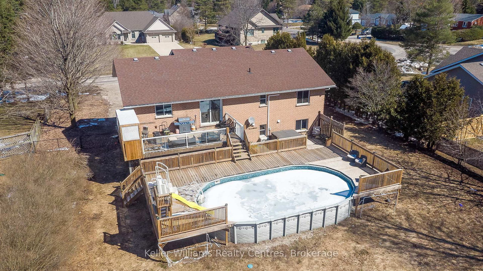 Imagine living on the desirable Pine Tree Drive in Hepworth, in a space offering the perfect blend of comfort, privacy, and versatility for families and entertainers alike. The 2-Storey on 27 Pine Tree Drive has 3 bedrooms, 3 bathrooms, and is located on a 225 x 100 ft loton .50-1.99 acres in the community of South Bruce Peninsula . Since 2019, this brick home has undergone significant updates, featuring a custom kitchen, replaced windows and doors, refreshed soffit and fascia, and a redesigned pool area with expansive decking and a fully fenced yard. This home features five bedrooms, with an additional room for an office or hobby room. Three bathrooms provide convenience for busy households, and a custom kitchen serves as the heart of the home with its thoughtful design and ample workspace with quartz countertops and a large island. Downstairs, the rec room with a built-in bar creates an ideal setting for gatherings, game nights, or hosting friends and family with a gas fireplace. Step outside to a fenced backyard, perfect for kids, pets, and outdoor living. Enjoy summers in the above-ground pool, BBQs on a large multi-level deck, or quiet evenings in your outdoor space. Located on a quiet dead-end road, the home offers added peace and privacy while still being within walking distance to the local Hepworth public school, which also offers a French immersion program. You'll have plenty of storage or workspace with two garage options: a detached garage in the backyard plus an attached 1-car garage at the front of the home. Perfectly situated for convenience, the home is 12 minutes to Sauble Beach, 15 minutes to Owen Sound, and 10 minutes to Wiarton, giving you quick access to beaches, shopping, healthcare, dining, and year-round recreation across the Bruce Peninsula. Whether you're upsizing, investing, or seeking a versatile family home, 27 Pine Tree Drive delivers space, lifestyle, and exceptional location. Schedule your private showing today and experience everything this Hepworth property has to offer.