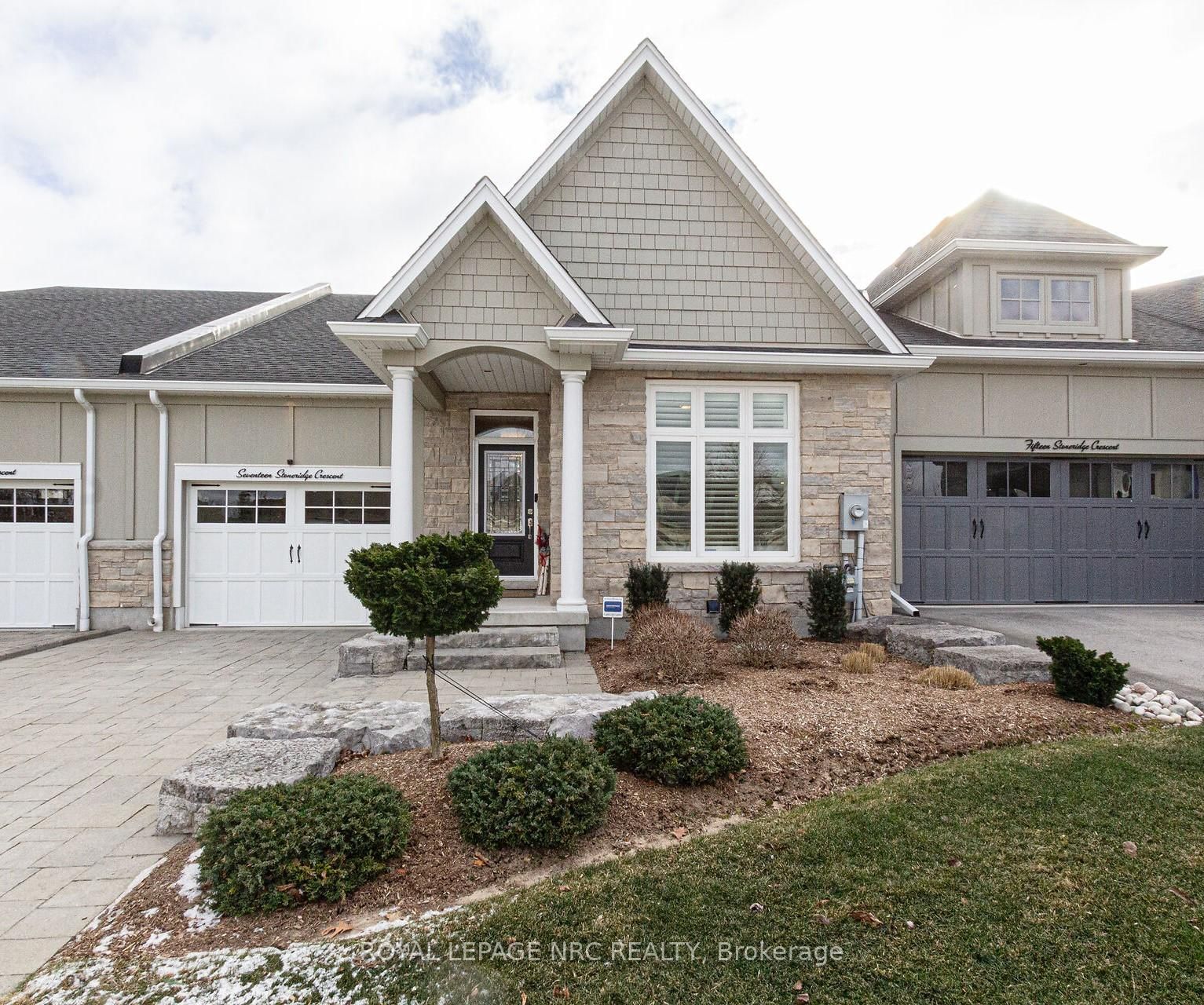 A LUXURIOUS RETREAT! Pride of ownership definitely shows as you tour this previous "model home" owned by only one owner! Upon entering this exquisite freehold townhouse, you are struck by the high ceilings which help to create an airy & spacious atmosphere! Natural light is maximized by the 2 Velux skylights and solar tube. The Bungalow on 17 Stoneridge Crescent has 2 bedrooms, 3 bathrooms, and is located on a 189.5 x 35.28 ft lot in the community of St. Davids . The open-concept floorplan encourages entertaining your guests or enjoying quiet evenings in front of the gas fireplace. High-end finishes reflect quality & craftsmanship throughout! The gourmet kitchen area is equipped with lots of storage in the upgraded cabinets with glass doors. The solar tube highlights the quartz counters & custom hood fan. The functional island incl a Bristol undermount sink & new dishwasher. The multi-functional kitchen overlooks the formal dining area & great rm which leads to a private deck to enjoy the island with fountain & clusters of beautiful decorative trees! The lot extends beyond the fenced area & backs onto the ravine & conservation area. Size of the yard allows owners to plant herbs or a vegetable garden! This oasis allows a total escape from everyday hustle! The primary bdrm suite offers a large bedroom with attractive shutters, walk-in closet & ensuite featuring double sinks & a linen closet. The den or 2nd bedroom features an upgrade to Geneva black leather plank flooring! The spacious lower level with lots of lighting could easily accommodate a family member in the potential "in-law suite". A uniquely designed contemporary unit is mounted below the TV. The 3rd large bedroom includes a walk in closet & is next to the 4pc bathroom. This stunning elegant townhouse is a lifestyle choice & offers luxury & FREEDOM! This home is ready to move into, close to resturants, shopping, hospitals, wine routes, trails, NOTL, Shaw Festival, St. Catharines, airports, and QEW. Make it your choice -------SOON !!!!