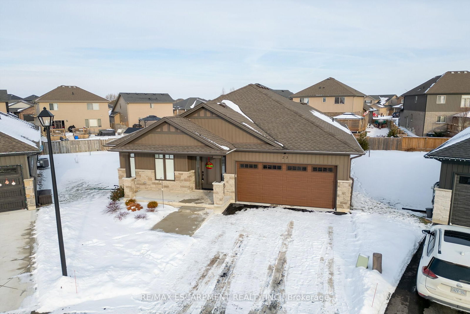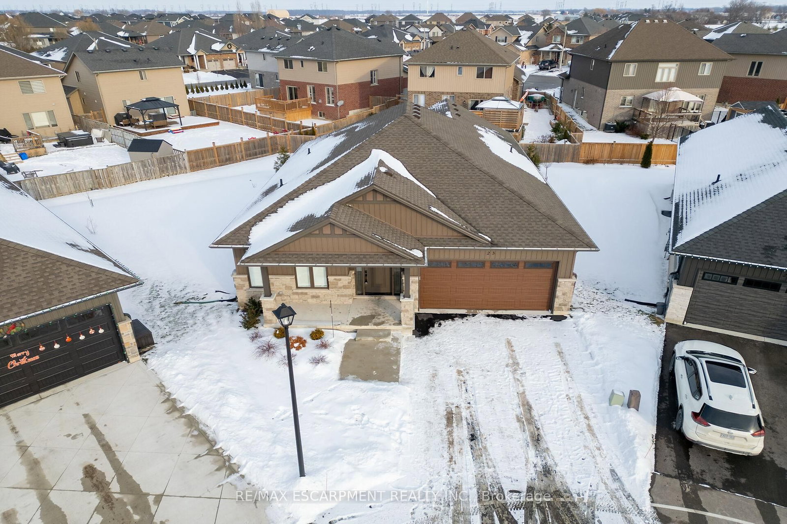 Envision small town Ontario living in lavish luxury - look no further than this gorgeous 2022 custom built bungalow situated at end of private court surrounded by similar maintained properties in Jarvis - Canada's officially recognized "Friendliest Town" located btw Hagersville, Port Dover/Lake Erie, Simcoe & Waterford - 45/50 min commute to Hamilton, Brantford & 403. The Bungalow on 23-24 CRADDOCK Boulevard has 3 bedrooms, 2 bathrooms, and is located on a 153.54 x 30.61 ft loton < .50 acres in the community of Haldimand . Positioned handsomely on 0.18 ac pie-shaped lot introducing 1623sf of flawless main level living space plus 190sf professionally designed sunroom, 1623sf basement & 405sf 2-car garage. Oversized paved driveway leads to inviting covered verandah where front door enters to grand 10ft high foyer offering walk-in coat closet - continues past 4pc main bath flanked by 2 spacious bedrooms - on to stunning, open concept Great room showcasing 10ft coiffured beamed ceilings, n/g fireplace set in stone hearth & shiplap accent walls - segues to Chef's "Dream" kitchen sporting chic in-vogue white cabinetry, designer island, quartz countertops, tile back-splash & convenient side laundry room housing walk-in pantry & direct garage access. Adjacent dinette enjoys patio door walk-out to gorgeous sunroom incs wall to wall windows with access to 100sf covered outdoor entertainment porch. Beautiful north wing primary bedroom boasts beautiful 3pc en-suite & walk-in closet completing main floor plan. Stylish matte finished engineered hardwood flooring, 9ft ceilings, custom milled trim/baseboards & LED lighting compliment neutral décor with sophisticated flair. Spacious, unblemished lower level provides the ideal blank canvas to create your personally designed floor plan & finishes. Notable extras - motorized hi-end blinds, outdoor irrigation system, quality appliances, n/g furnace, A/C, HRV air exchange & landscaping. Reasonable $280 p/month road maintenance fee incs street lights, water/sewer charges & lawn cutting - snow clearing is Owner's responsibility. Lock Box for viewing ease. "Perfection Personified"