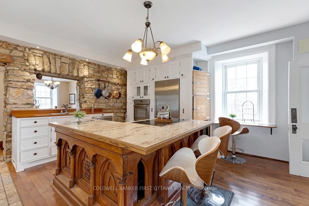 Set on 1. The 2-Storey on 28 South Street has 3 bedrooms, 3 bathrooms, and is located on a 412.66 x 197.7 ft loton .50-1.99 acres in the community of Drummond/North Elmsley (North Elmsley) Twp .88 acres at the edge of historic Perth, this beautifully preserved 1875 stone home blends enduring character with thoughtful modern updates and space to grow. Lovingly maintained, it captures the soul of a true century home while offering today's comforts - most notably a showstopping chef's kitchen anchored by a one-of-a-kind island crafted from a reclaimed church altar. The interior offers three bedrooms and 2.5 bathrooms, including a stunning primary suite with a spa-inspired ensuite and a bright, tranquil bedroom that feels like a private retreat. Original hardwood floors, soaring ceilings, and intricate details reflect the craftsmanship of another era. A formal living room with a wood-burning fireplace insert and a separate dining room create inviting spaces for entertaining, while the cozy family room, warmed by another wood fireplace, is perfect for relaxed evenings at home. The dining room also features a natural gas fireplace and a convenient pass-through to the kitchen, ideal for gatherings large and small. Outdoors, enjoy a spacious screened-in solarium, a hot tub on the back deck, and a large barn brimming with potential, whether for a workshop, studio, or even a small flock of chickens. The home is serviced by its own well, providing excellent-quality water. Set well back from the road, the property offers rare privacy and a peaceful, country feel just minutes from downtown Perth's shops, restaurants, and charm. A truly special home with a rich history and plenty of room to imagine what comes next.