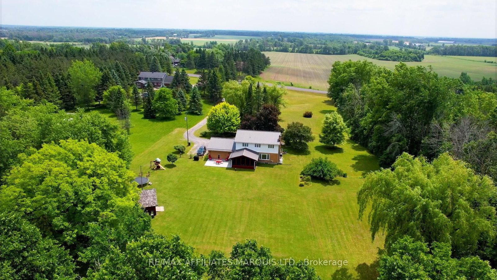 Welcome to this charming country retreat set on 2. The 2-Storey on 18201 County Rd 19 Road has 4 bedrooms, 3 bathrooms, and is located on a 628.49 x 200 ft lot in the community of South Glengarry (Charlottenburgh) Twp .98 acres of natural beauty, just a short drive from Cornwall. A long, private laneway leads you to a tranquil setting complete with a scenic pond home to turkeys, fish, and frogs surrounded by mature trees, including apple trees, that provide both privacy and beauty.Inside, this well-maintained home offers comfort and convenience at every turn. The main level features a cozy propane fireplace in the living room, a spacious dining area, a bright kitchen that overlooks the screened-in porch and expansive backyard, and a convenient 2-piece bathroom. Main-floor laundry, central vacuum, and interior access to the attached garage add extra ease to daily life.Upstairs, youll find four generous bedrooms and a full bathroom. The primary suite is a standout with his-and-hers closets, a cedar closet, and a private 3-piece ensuite.The fully finished basement includes a utility room, ample storage space, and direct access to the garage ideal for practicality and organization. Additional features include a durable metal roof and a new heat pump (2024) for efficient year-round comfort. A backyard shed adds even more outdoor storage.This is a rare opportunity to enjoy peaceful, scenic country living with all the modern features just minutes from town. Come see it for yourself! 24 Hour Irrevocable on all offers.