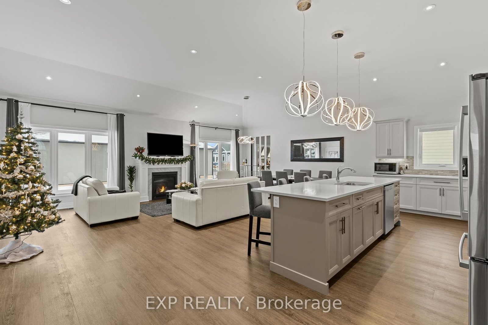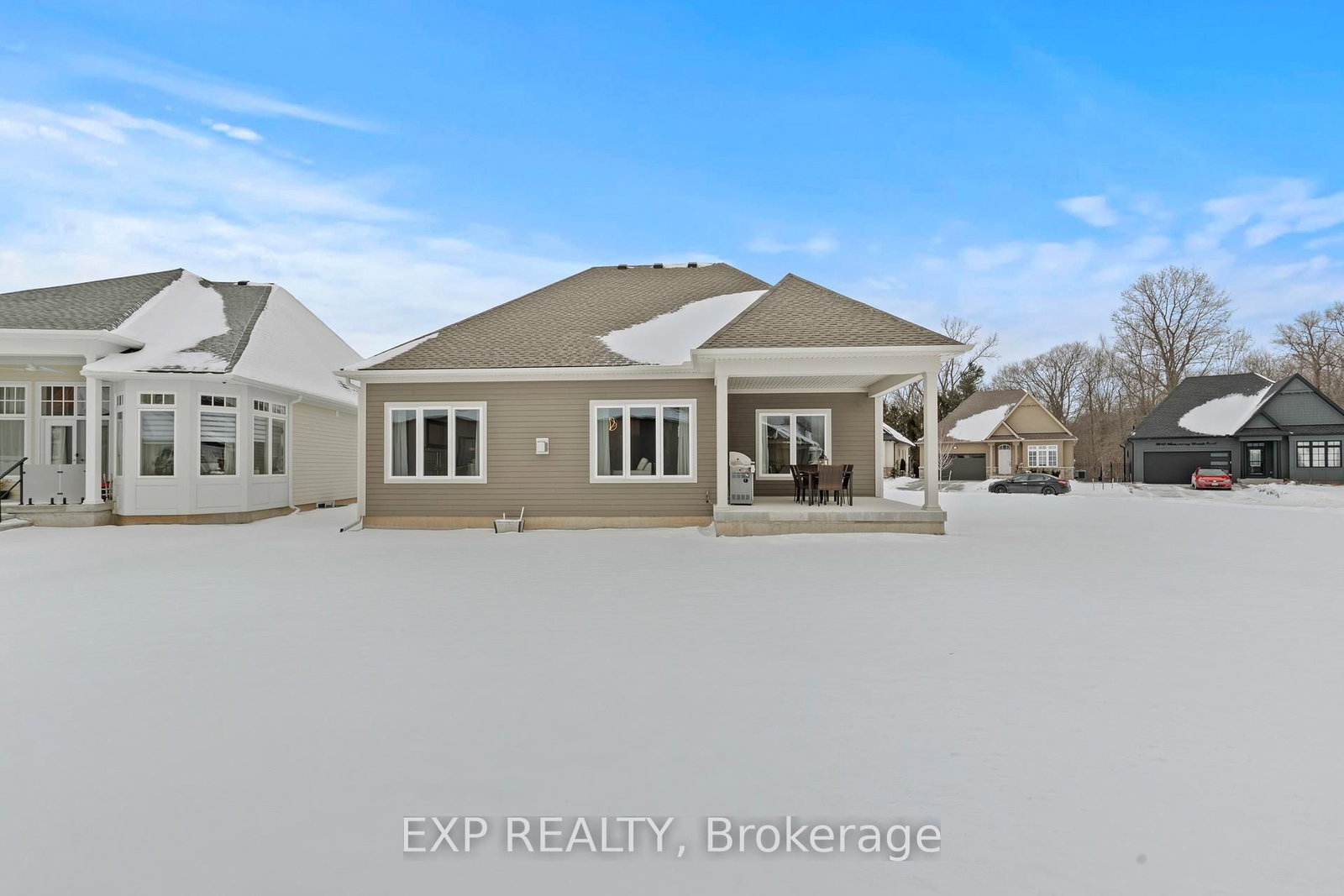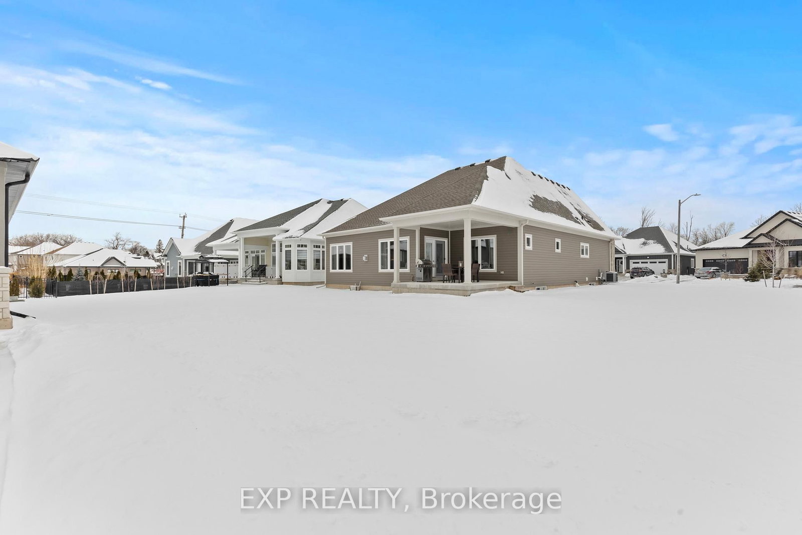 Prepare to fall in love with this exceptional luxury bungalow in one of Ridgeway's most prestigious neighbourhoods. The Bungalow on 3571 Whispering Woods Trail has 2 bedrooms, 3 bathrooms, and is located on a 129.15 x 98.83 ft lot in the community of Ridgeway . Featuring a 98-foot-wide frontage, two-car garage with double-wide driveway, and over 3,000 sqft of finished living space, this home offers outstanding curb appeal, privacy, and presence rarely found in today's market. Step inside to soaring 11-foot ceilings, an extra-wide hallway, refined craftsmanship, and elegant natural tones, creating a bright, sophisticated, and welcoming atmosphere. The sun-filled open-concept living room, centered around a stylish gas fireplace, opens into a refined dining area and flows seamlessly to the covered porch, perfect for entertaining, relaxing evenings, or enjoying your morning coffee. The gorgeous kitchen truly impressive, featuring high-end stainless-steel appliances, quartz countertops, spacious island, built-in double oven, generous cabinetry, and a walk-in pantry. The primary suite is a serene retreat with 9-foot ceilings, plush carpeting, a walk-in closet, and spa-like ensuite with soaker tub, custom design walk-in shower, and double vanity with quartz finishes.The second bedroom with an adjoining bathroom, completes this thoughtfully designed main level. The main-floor laundry provides direct access to the attached double-car garage. The fully finished lower level is designed as a complete in-law suite with a separate entrance and could easily generate income. It features a spacious open-concept family room, modern kitchen with quartz countertops and island, ample storage, two generous bedrooms, dining area, and a stylish 4-piece bathroom. Large egress windows bring in abundant natural light, making the space bright, welcoming, and ideal for extended family, guests, or income potential. Set in a safe, upscale community within walking distance to shops and Ridgeway's charming downtown, and just minutes from beaches, trails, and parks. This home offers elegance, space, and effortless luxury living at its finest.