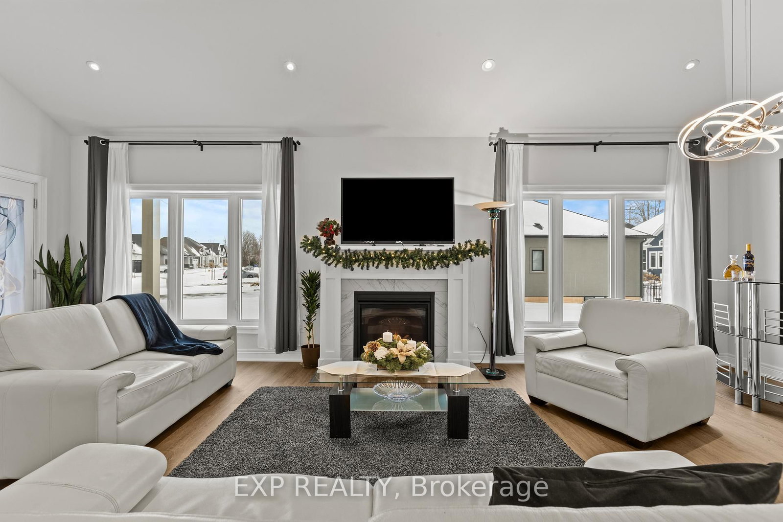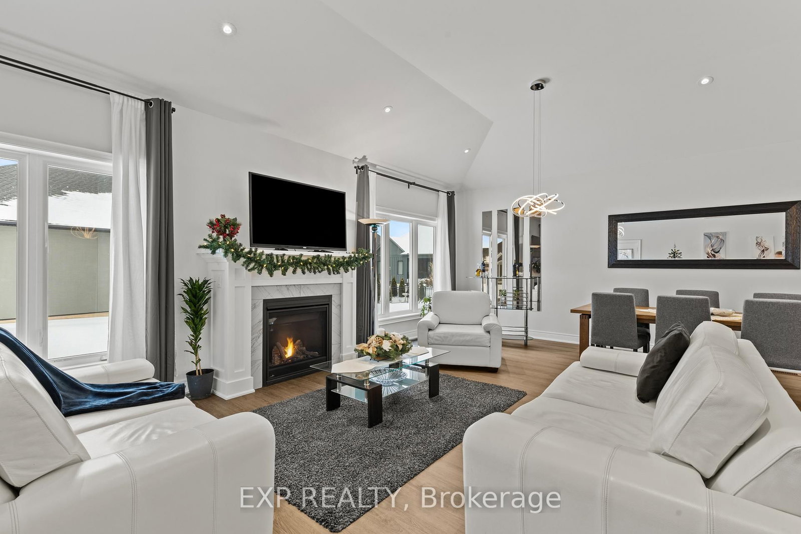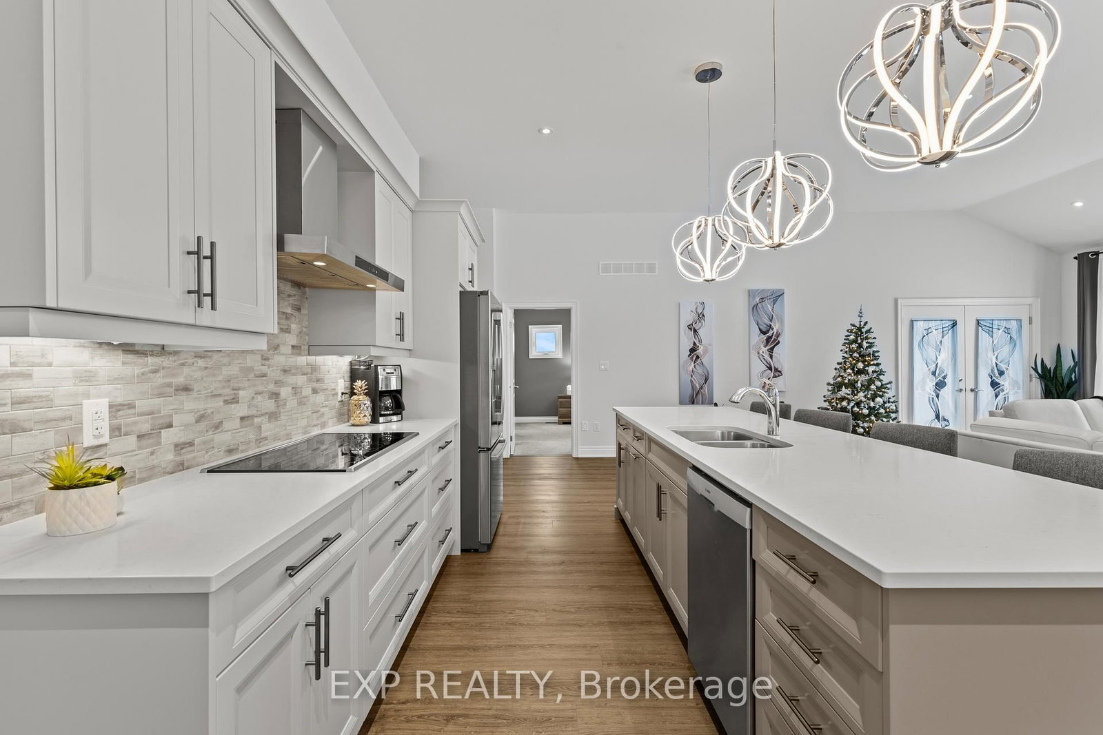 Prepare to fall in love with this exceptional luxury bungalow in one of Ridgeway's most prestigious neighbourhoods. The Bungalow on 3571 Whispering Woods Trail has 2 bedrooms, 3 bathrooms, and is located on a 129.15 x 98.83 ft lot in the community of Ridgeway . Featuring a 98-foot-wide frontage, two-car garage with double-wide driveway, and over 3,000 sqft of finished living space, this home offers outstanding curb appeal, privacy, and presence rarely found in today's market. Step inside to soaring 11-foot ceilings, an extra-wide hallway, refined craftsmanship, and elegant natural tones, creating a bright, sophisticated, and welcoming atmosphere. The sun-filled open-concept living room, centered around a stylish gas fireplace, opens into a refined dining area and flows seamlessly to the covered porch, perfect for entertaining, relaxing evenings, or enjoying your morning coffee. The gorgeous kitchen truly impressive, featuring high-end stainless-steel appliances, quartz countertops, spacious island, built-in double oven, generous cabinetry, and a walk-in pantry. The primary suite is a serene retreat with 9-foot ceilings, plush carpeting, a walk-in closet, and spa-like ensuite with soaker tub, custom design walk-in shower, and double vanity with quartz finishes.The second bedroom with an adjoining bathroom, completes this thoughtfully designed main level. The main-floor laundry provides direct access to the attached double-car garage. The fully finished lower level is designed as a complete in-law suite with a separate entrance and could easily generate income. It features a spacious open-concept family room, modern kitchen with quartz countertops and island, ample storage, two generous bedrooms, dining area, and a stylish 4-piece bathroom. Large egress windows bring in abundant natural light, making the space bright, welcoming, and ideal for extended family, guests, or income potential. Set in a safe, upscale community within walking distance to shops and Ridgeway's charming downtown, and just minutes from beaches, trails, and parks. This home offers elegance, space, and effortless luxury living at its finest.