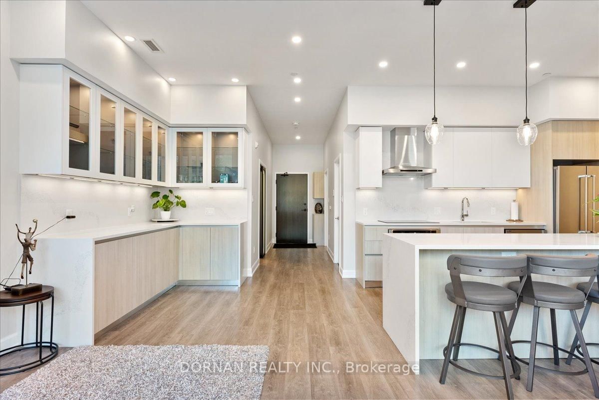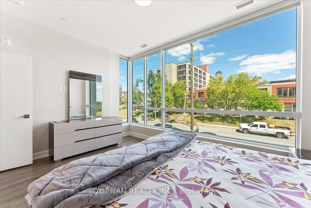 Presenting this one-of-a-kind opportunity to experience luxury living at its finest in the exceptional fully-furnished TH-04 in the coveted East City Condos. The 2-Storey on TH-04-195 Hunter Street E has 3 bedrooms, 3 bathrooms, and is located in the community of Ashburnham Ward 4 . Thoughtfully designed for modern lifestyles, this 3+1-bedroom, 3-bathroom, two-storey executive residence features a private gated terrace entry and convenient interior building access. Inside, soaring ceilings, hardwood floors, and an abundance of natural light creating a warm, sophisticated ambiance. The chef-inspired kitchen is a true centrepiece, showcasing quartz countertops and backsplash, soft close cabinetry and premium stainless steel appliances. Residents enjoy a suite of upscale amenities, including a fully equipped fitness centre, co-working lounge, secure parcel delivery, and an impressive 8th floor rooftop terrace offering breathtaking panoramic views. All just steps from scenic trails, green spaces and the charming heart of East City. Suited for the astute busy professional. 1 parking space & locker included.