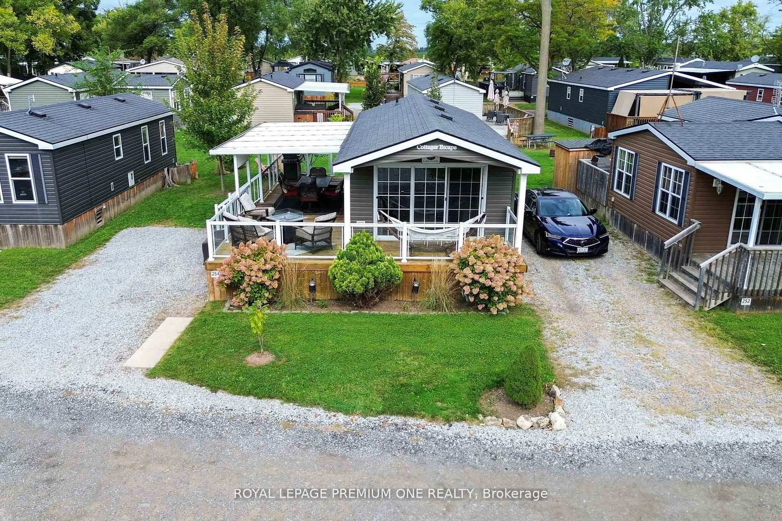 Welcome to Vine Ridge Resort in beautiful, historic Niagara-on-the-Lake. The Bungalow on 254-1501 LINE 8 Road has 2 bedrooms, 1 bathrooms, and is located in the community of Queenston . The ultimate playground just south of the GTA. Resort cottage living with easy access to Niagara Falls, Lake Ontario, Casinos, Shopping, Golf Courses, Wineries, top restaurants, US Border, theme/water parks, beaches, and endless nature trails. This park model cottage has only had 1 owner, never been rented, and been fully maintained and updated since day 1. Mature trees and landscaping have been added to this site for additional aesthetics privacy. This 2-bedroom model include a beautiful wrap around deck with 2 overhang roofs to protect from the elements and maximize enjoyment on summer nights. The interior is breath taking with the master bedroom having a walk-in closet and the second bedroom having bunk beds. Upgraded counter tops, prewired for surround sound in living room, oversized lot/backyard, and quiet resort location are ideal features to add to your enjoyment. Maintenance and Taxes Are $8490.00 Plus HST Yearly.