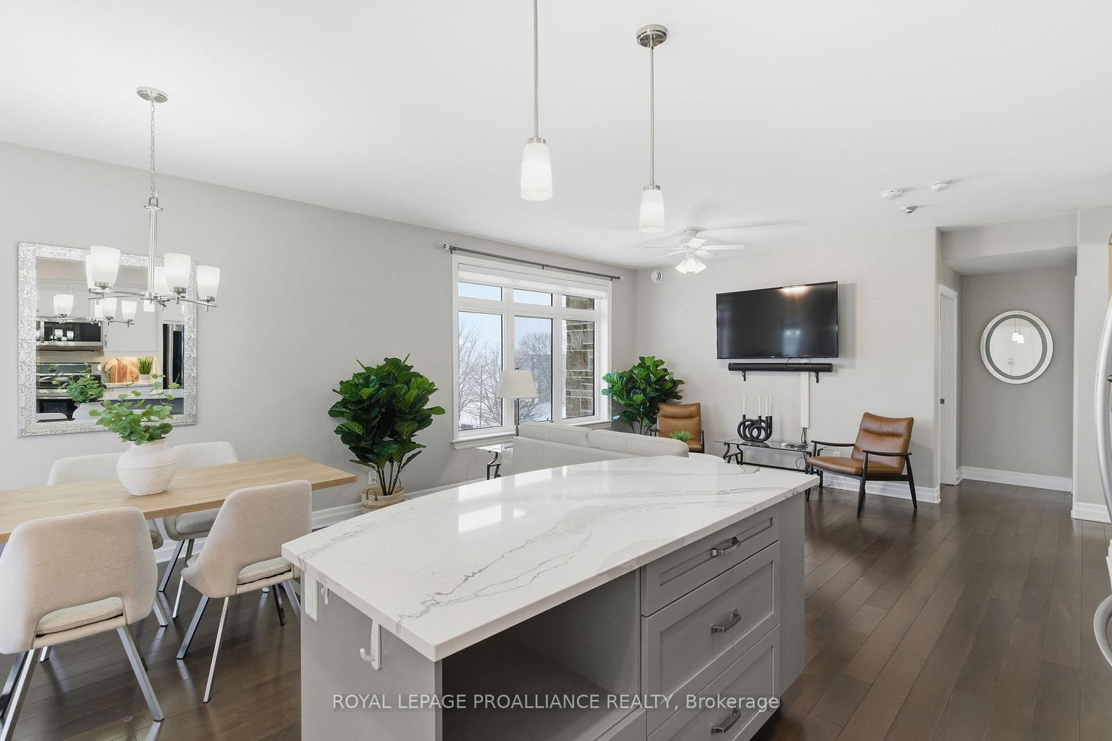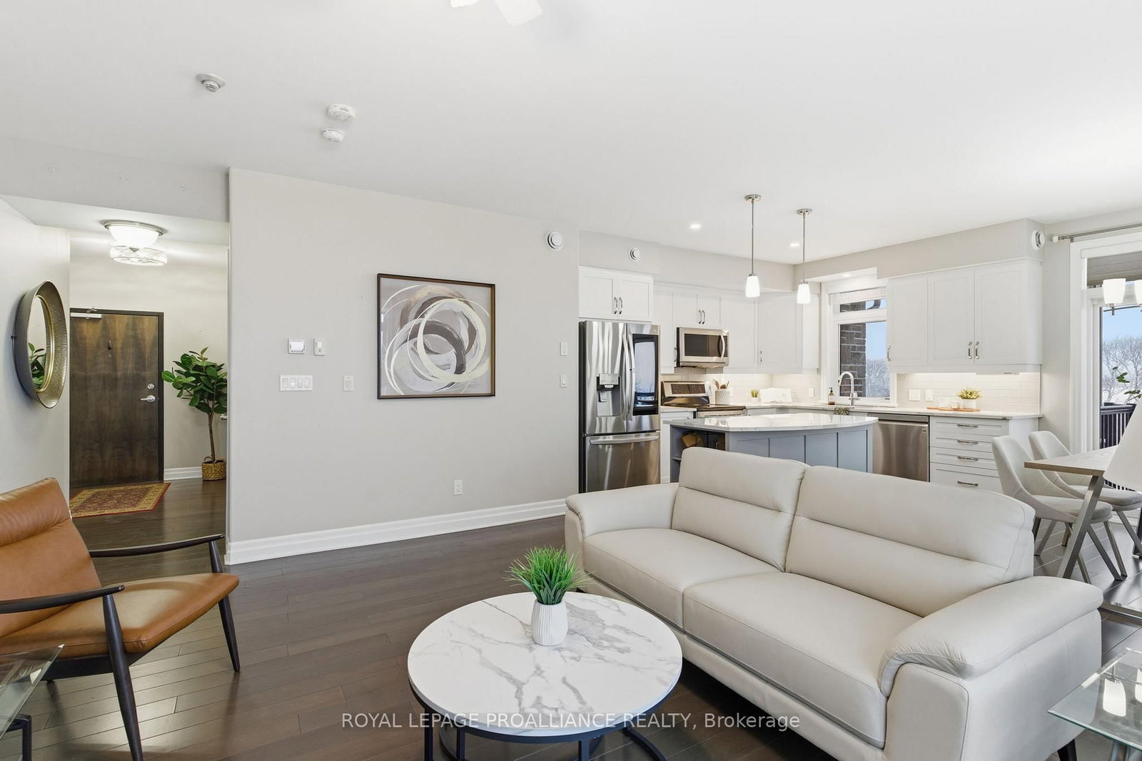Elevate your lifestyle in one of Brockville's most walkable neighbourhoods. The Apartment on 304-304-1109 Millwood Avenue has 2 bedrooms, 2 bathrooms, and is located in the community of Brockville . This refined top-floor 2-bedroom condo offers a thoughtful blend of upscale finishes, smart design, and everyday ease. At the centre of the home is a sleek white kitchen with quartz countertops and an oversized island-ideal for entertaining or relaxed day-to-day living. Soaring 9-foot ceilings and expansive glass doors open to a private balcony, creating a bright, open atmosphere filled with natural light. The primary suite is a true retreat, featuring a walk-in closet and a stylish 3-piece ensuite with a walk-in shower, while a full second 4-piece bath comfortably accommodates guests. Hardwood flooring flows throughout, paired with in-floor radiant heating for exceptional year-round comfort. A well-planned laundry and utility room adds valuable storage and functionality. This secure, fully accessible building includes elevator access, underground parking, and a large storage locker-details that enhance daily living. With walking trails, shops, and the Memorial Centre just moments away, you'll enjoy easy access to local amenities while benefiting from the privacy of top-floor living. Move-in ready, beautifully finished, and perfectly positioned, this is condo living at its best. Click "Virtual Tour" for tour, floor plans and pictures