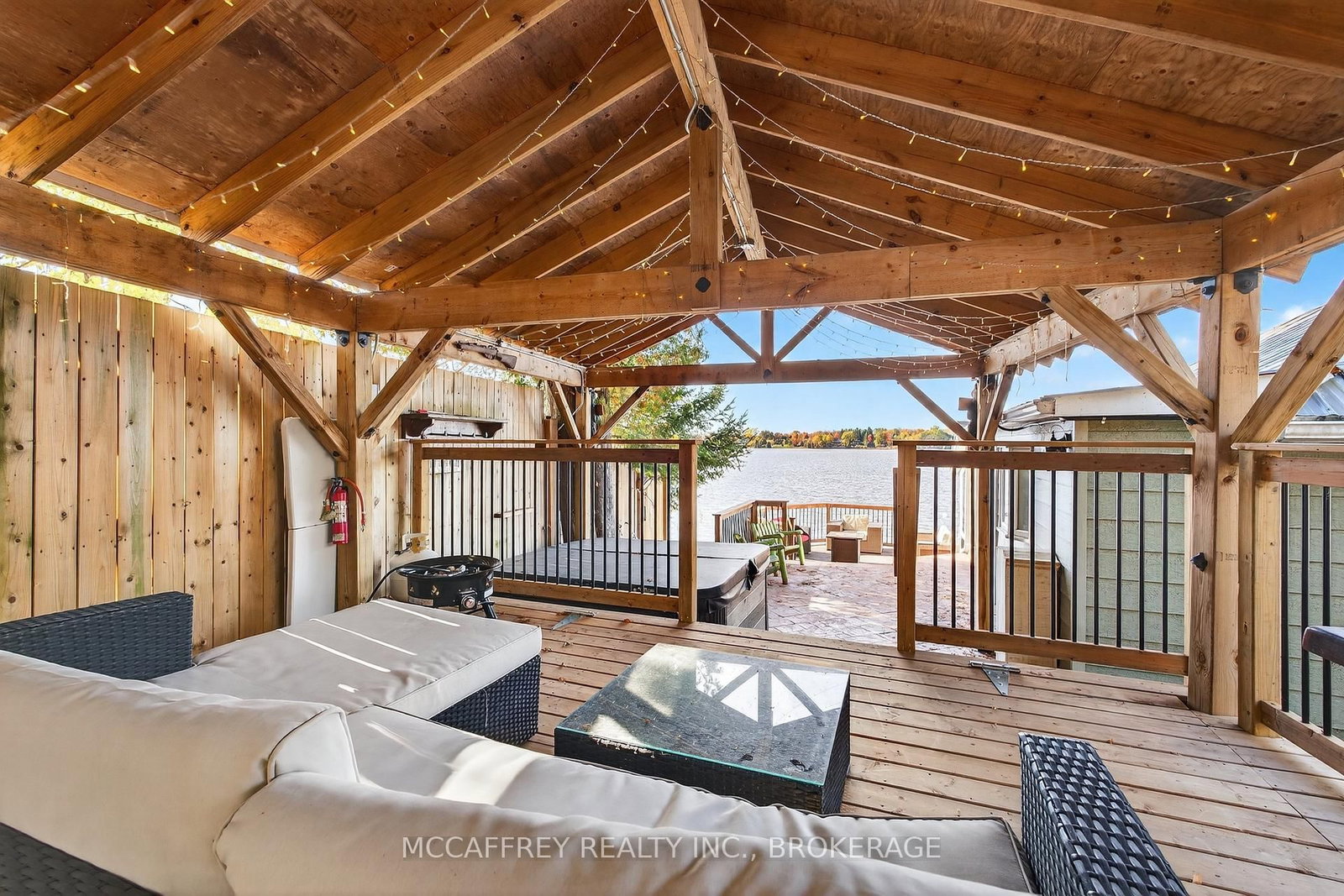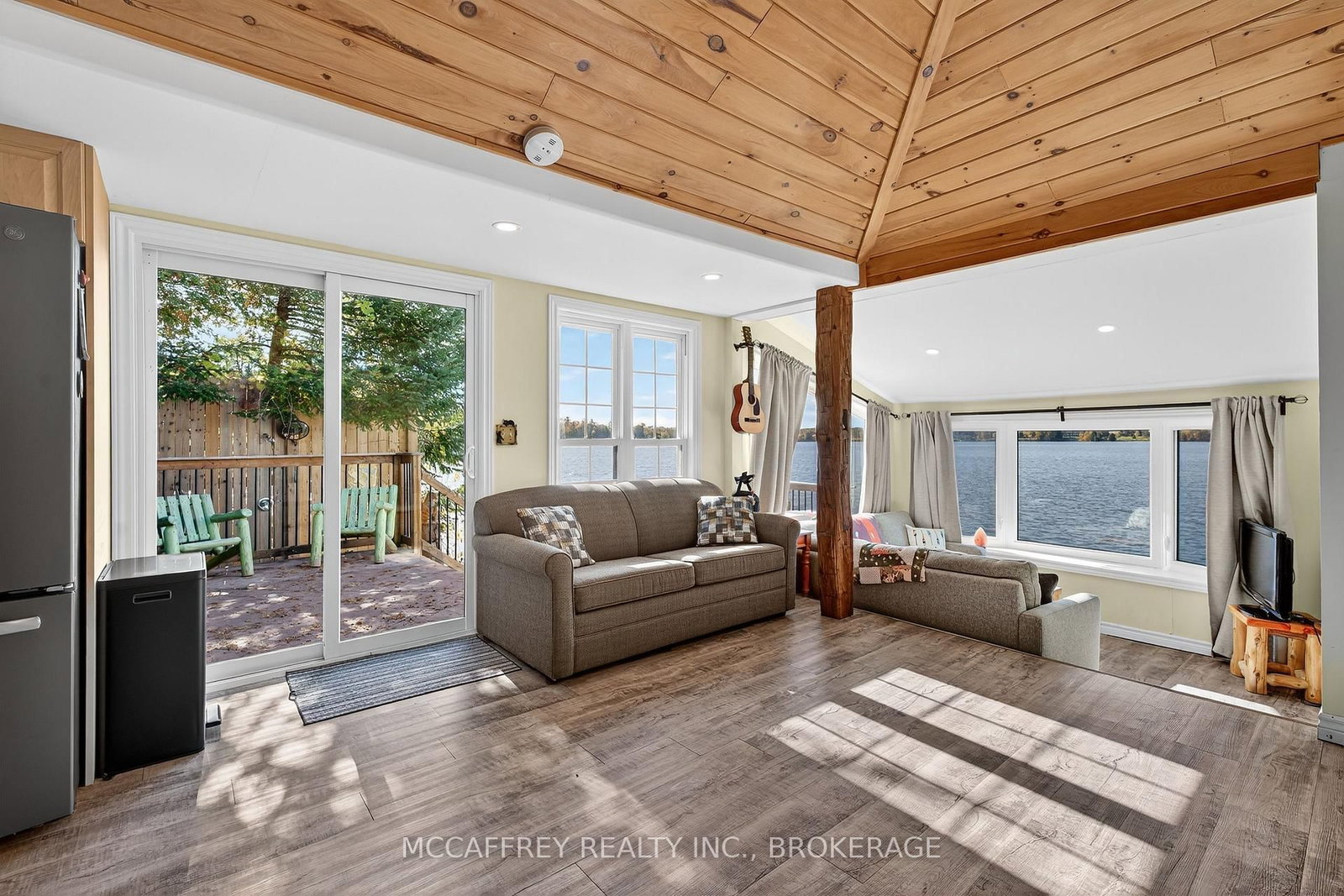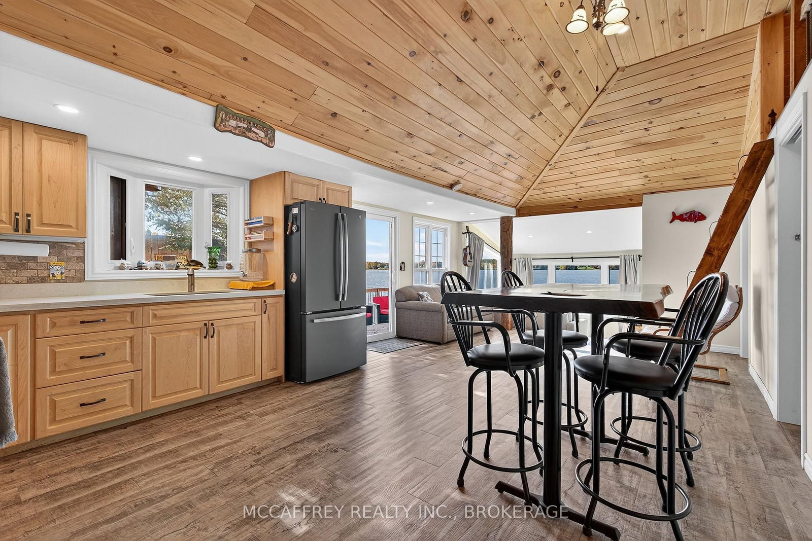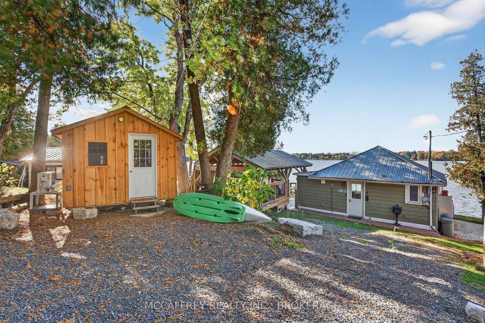 Welcome to 19 Cherry Lane, a beautifully appointed, three-bedroom, two-bath property that fuses rustic charm with refined comforts-all set on a coveted waterfront lot on Beaver Lake. The Bungalow on 19 Cherry Lane has 3 bedrooms, 2 bathrooms, and is located on a 44.12 x 44.93 ft lot in the community of Stone Mills . Currently used as a cottage but has a heated water line from the lake that can be used in the winter and the property is insulated and has heat pumps for heat and air conditioning. This is an incredible opportunity to own a private lakeside retreat, just steps from the water's edge. From the moment you arrive, this home expresses thoughtful design. The open-concept main living area is anchored by vaulted wood-plank ceilings, natural light, and panoramic water views. The kitchen, with its stylish finishes and efficient layout, flows seamlessly into the dining and living spaces-perfect for entertaining or quiet evenings by the lake. You'll find three comfortable bedrooms offering restful privacy and two baths. An insulated bunkie with heating and A/C is perfect for extra guests. Step outside onto the multi-level deck system, where decks, patios, and a pavilion beckon you to unwind while soaking in breathtaking water views. Whether you're sipping morning coffee as ripples form on the lake, reading under the summer sun, or hosting sunset cocktails on the waterside deck, this home elevates every moment outdoors. A private, accessible shoreline gives you direct entry to the lake-swim, paddle, or fish just steps from your door. A lovely beach is nearby, perfect for leisurely strolls. You're also a short drive from dining options, grocery stores, the LCBO, boutique shops, and local charm. The property has been recently sided with Maibec CanExel Engineered Siding for lasting quality and appeal. Outdoor lovers will appreciate the surrounding natural trails and the refreshing serenity that only waterfront landscapes can provide. Located just 30 minutes north of the 401 and Napanee. Bunkie was added in 2025, home was fully updated in 2018. In-floor heating is plumbed in but not hooked up.