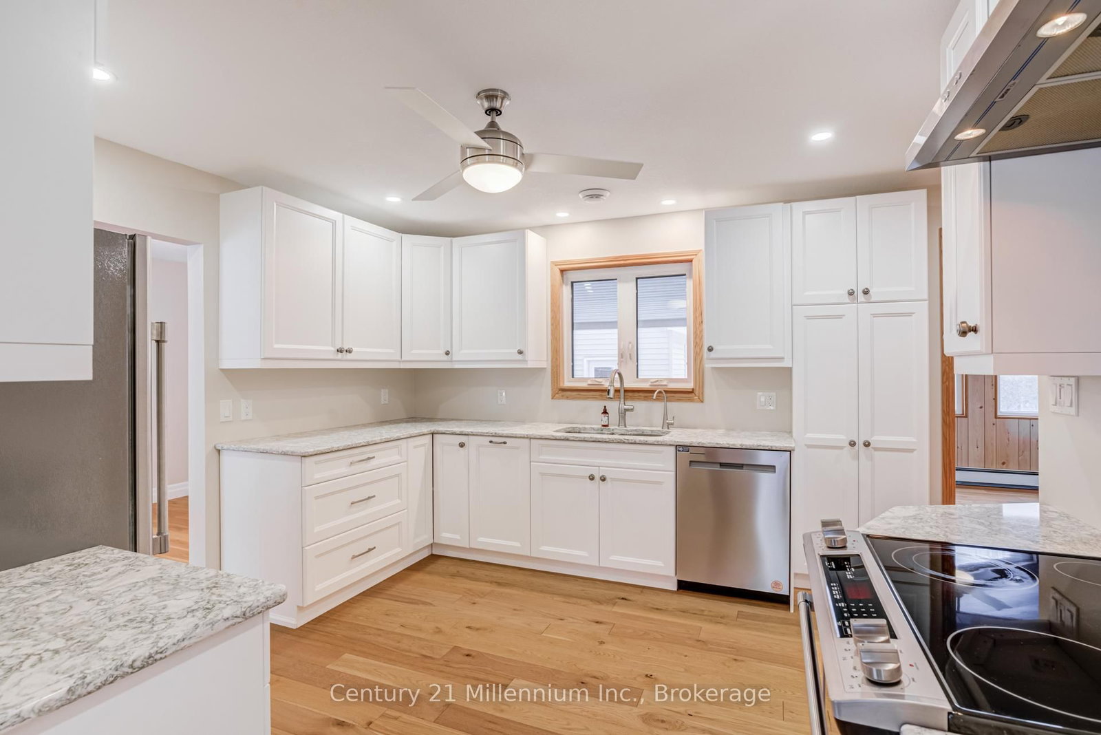Welcome to this thoughtfully updated bungalow, perfectly situated just steps from the hospital and within easy walking distance of all that downtown Wiarton has to offer. The Bungalow on 371 Hunter Street has 3 bedrooms, 2 bathrooms, and is located on a 185 x 75 ft loton < .50 acres in the community of South Bruce Peninsula . Combining modern finishes with everyday convenience, this move-in-ready home is ideal for a wide range of buyers. The fully renovated main floor features a bright, open-concept living space accented by engineered hardwood flooring and a stunning custom kitchen that seamlessly blends style and functionality. Three generously sized bedrooms and a full bathroom complete the main level, making this an excellent option for families, retirees, or anyone seeking comfortable one-level living. Enjoy affordable, efficient comfort year-round with a natural gas boiler heating system. Car enthusiasts, hobbyists, and those in need of exceptional storage will appreciate the rare garage setup which is an attached garage, bonus workshop, and a second garage, all connected and offering over 1,200 sq ft of versatile space. Step outside to a spacious, private backyard featuring a new deck with privacy louvers making it perfect for entertaining, relaxing, or enjoying quiet evenings outdoors. The finished walk-up basement adds even more value, offering additional living space complete with a bar and a second full bathroom, ideal for hosting guests or creating a cozy rec room. With its prime location, modern renovations, impressive garage space, and private outdoor setting, this Wiarton bungalow truly checks all the boxes.